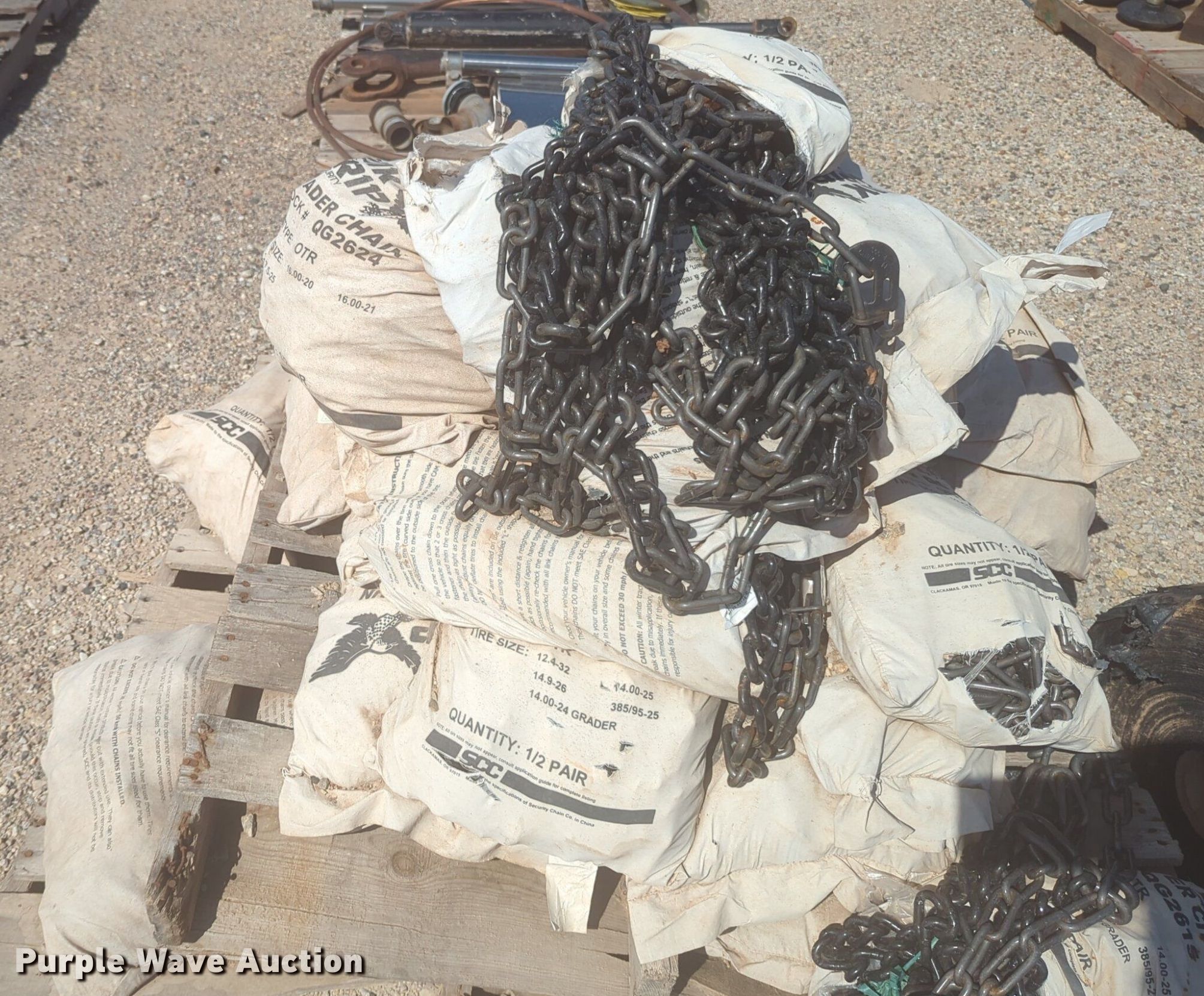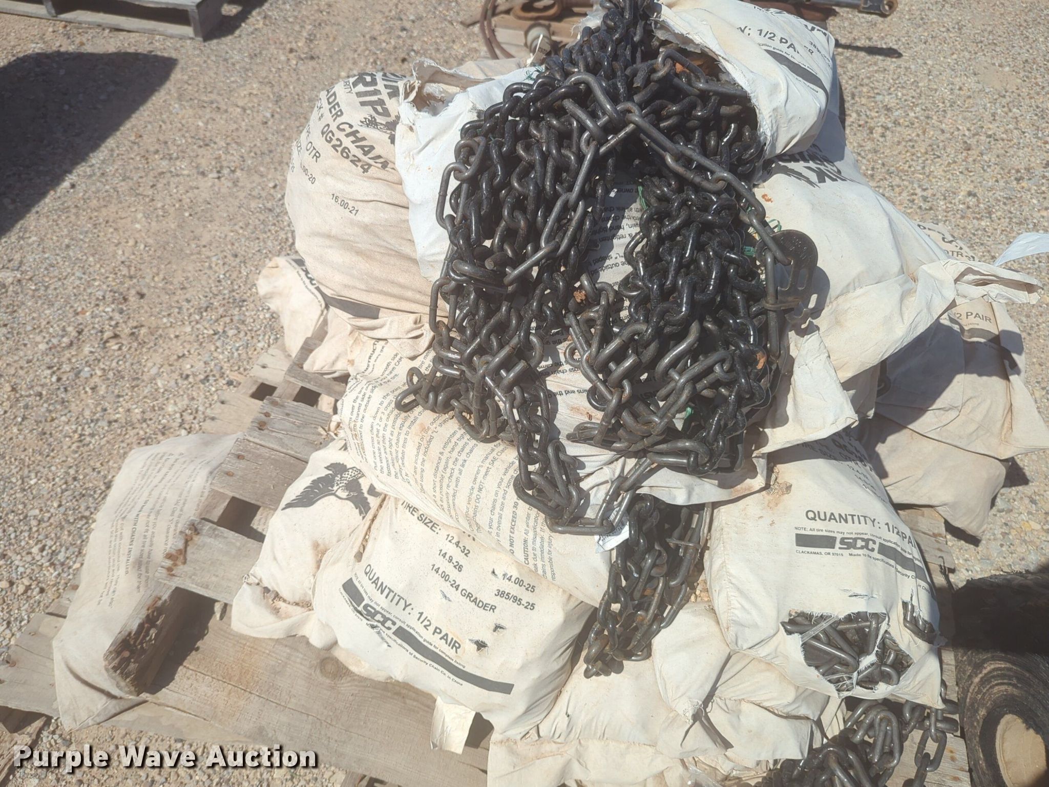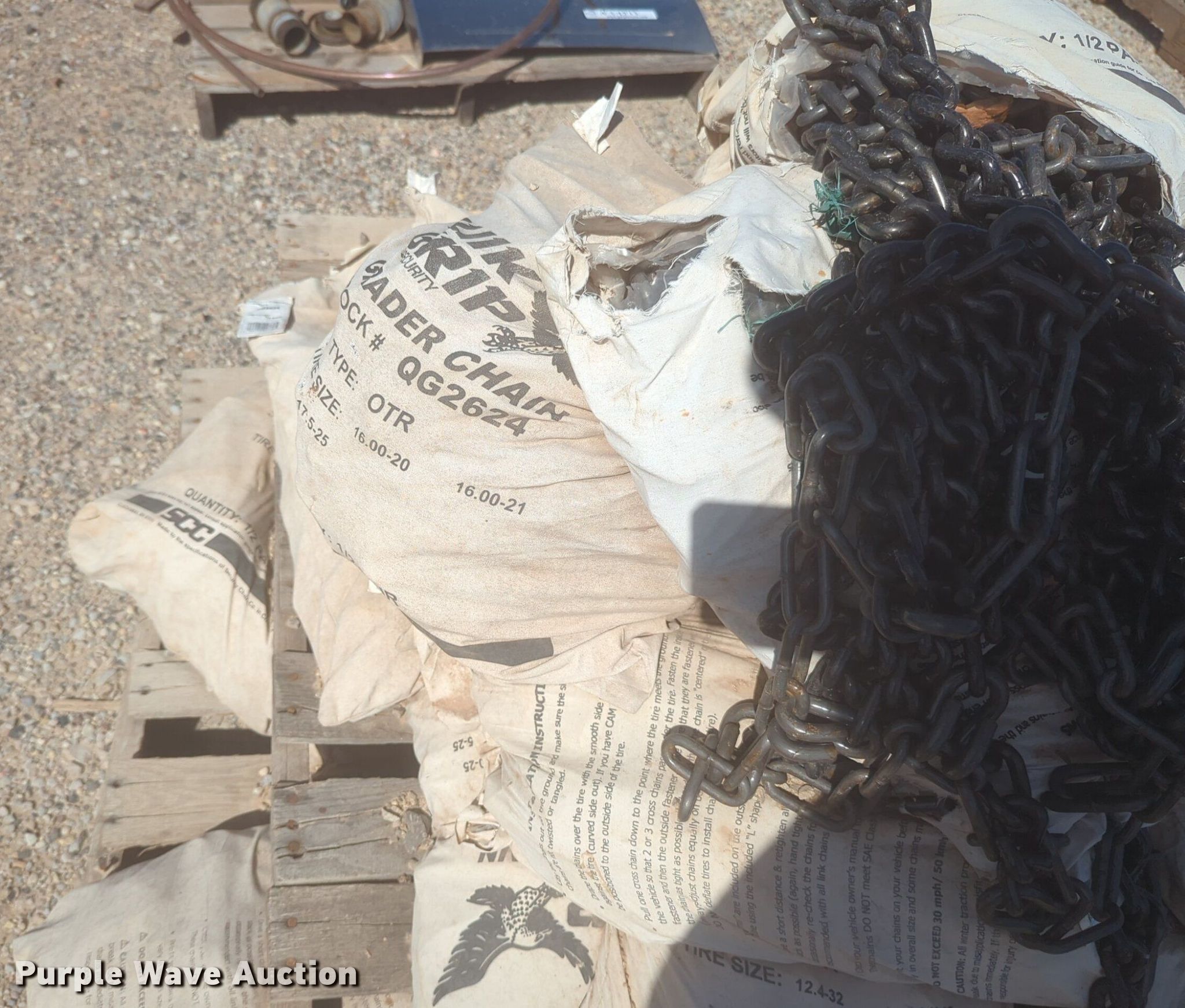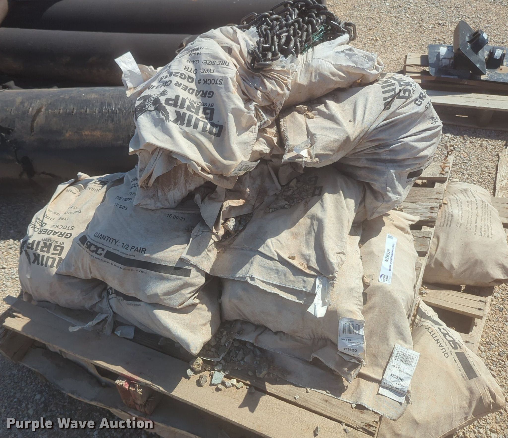 Purple Wave is selling a used Motor Grader Attach. in Oklahoma. This item is a Quick Grip grader chains with the following: Fits 17.5-25 tires, Unused