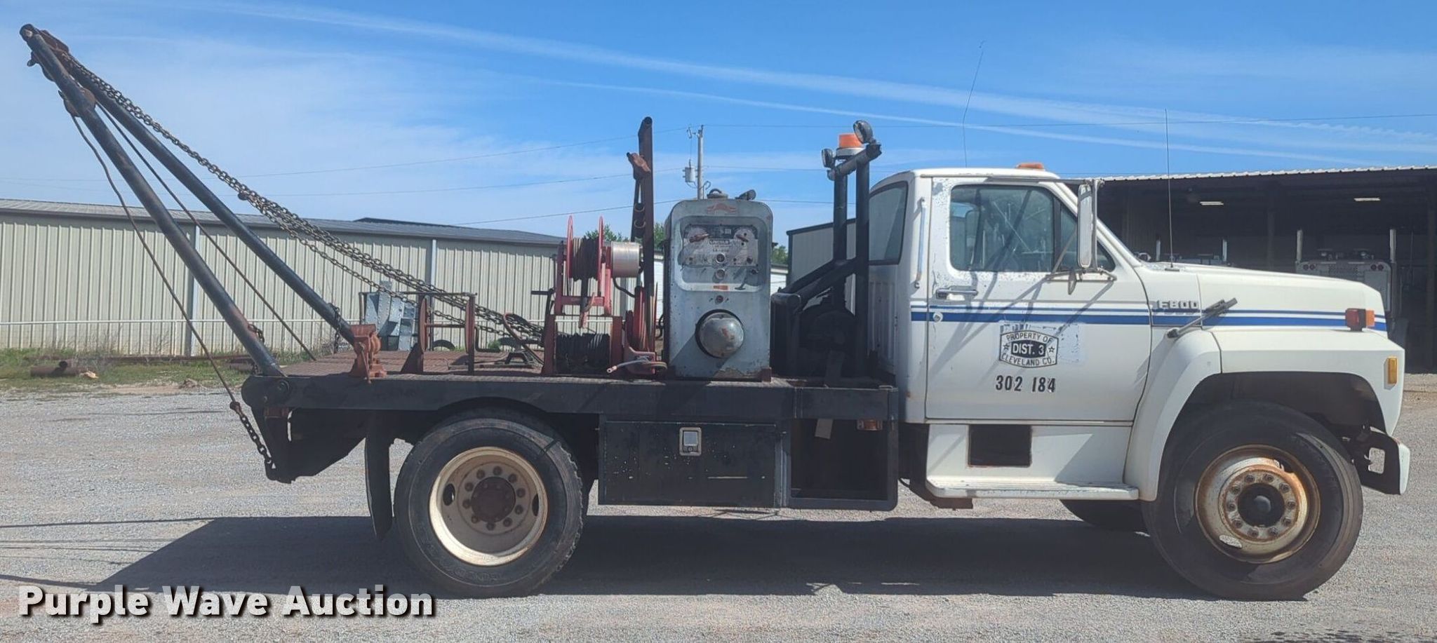 Purple Wave is selling a used Oilfield Truck in Oklahoma. This item is a 1991 Ford F700 winch truck with the following: Miles: 80,128 on odometer, VIN: 1FDPF82JXMVA36266