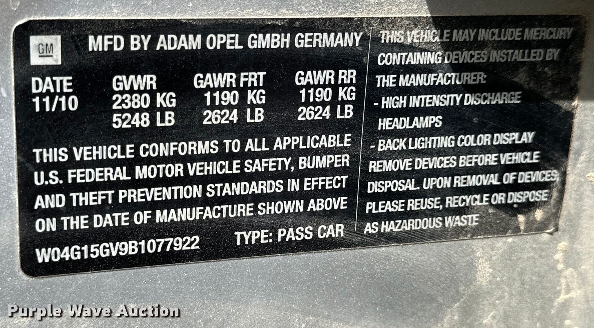 Purple Wave is selling a used Passenger Vehicle in Kansas. This item is a 2011 Buick Regal with the following: Miles: 132,242 on odometer, VIN: W04G15GV9B1077922