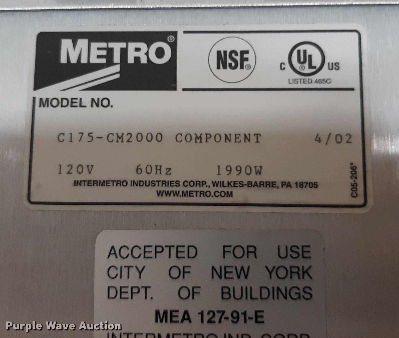 Purple Wave is selling a used Appliances in Kansas. This item is a Metro C175-CM2000 warming rack with the following: Volts: 120, Watts: 1,990, Does not heat consistently