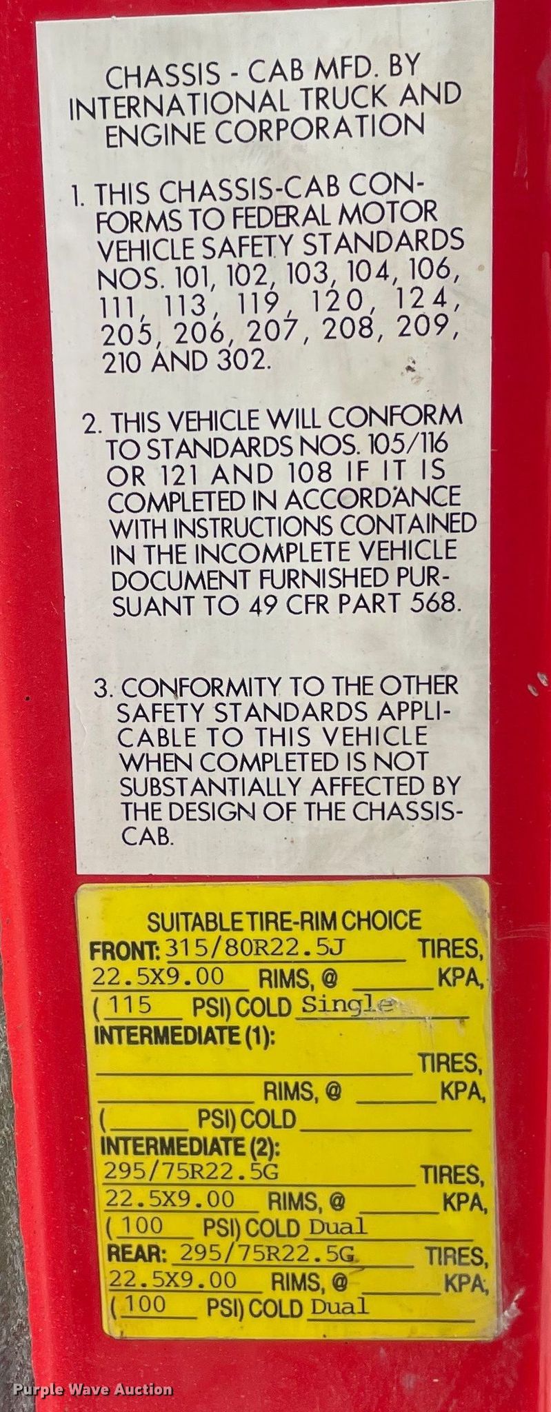 - Front: 315/80R22.5