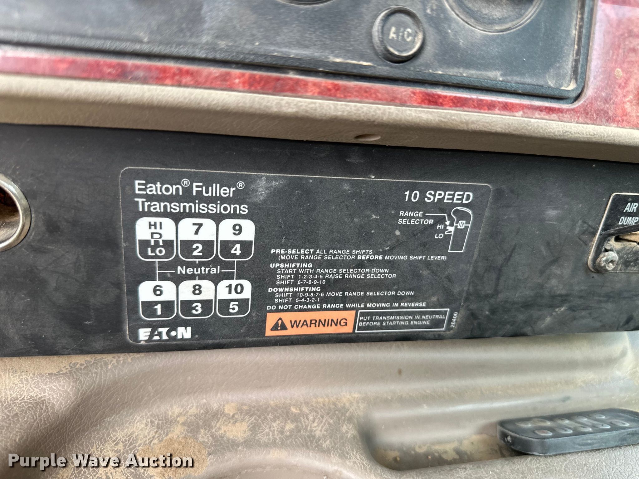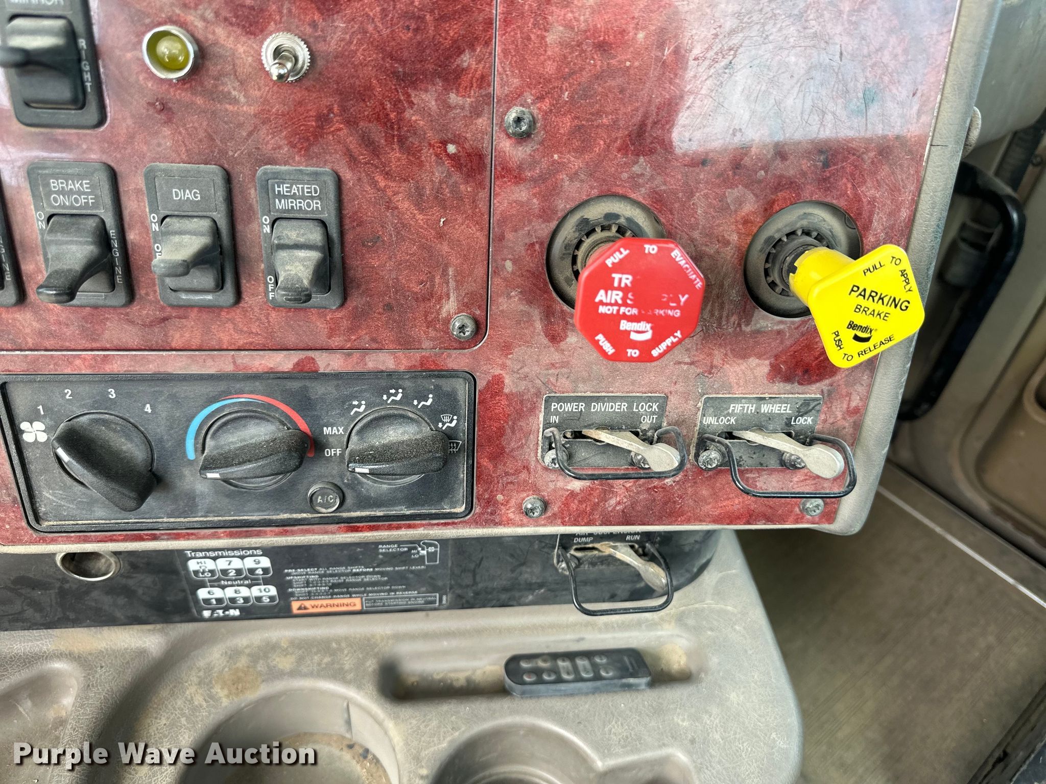 2005 International 9900i semi truck. Miles: 759,194 on odometer, VIN: 3HSCHAPR95N033875. Engine Cummins, Displacement: 15.0L, Cylinders: 6, Fuel type: Diesel, Engine brake. Transmission Eaton Fuller, Manual, Speed: 10. Chassis Axles: Tandem, Differential lock: Inter-axle, Suspension: Air Dump valves, Brakes: Air. Interior AC, Heat, Heated mirrors, Cruise control. Features Fifth wheel type: Air operated, Sliding, Fuel tank: Dual. Tires Size: 11R24.5. Notes Dash warning indicator: Check engine. Kansas title. Title distribution may be delayed up to 14 days from verification of funds. Hodgeman County Road & Bridge. Jetmore, KS 67854
