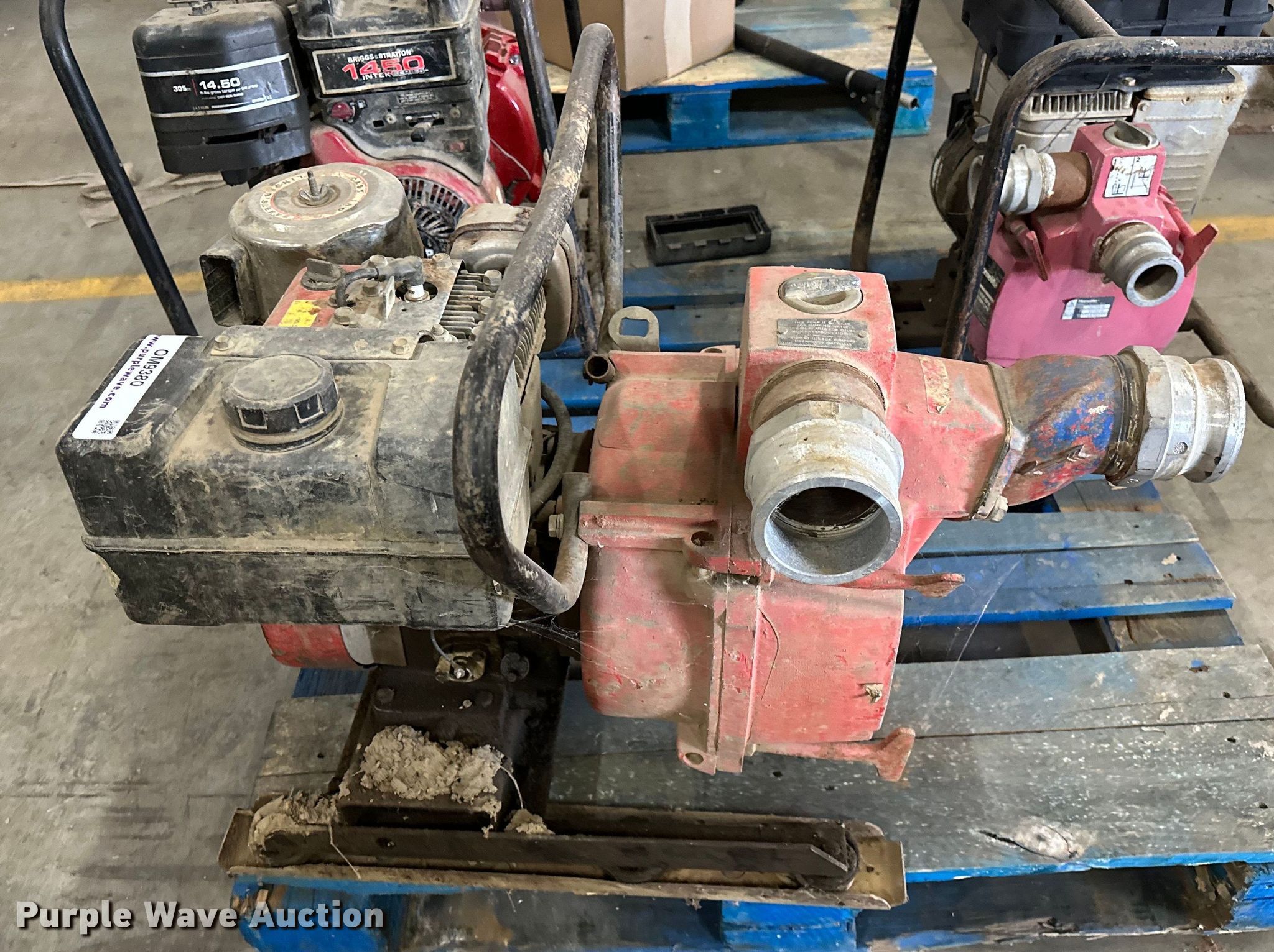 Purple Wave is selling a used Pump in Oklahoma. This item is a (3) trash pumps with the following: Homelite 2", Briggs & Stratton 133432 single cylinder gas engine, GPH: 10,400, Homelite 120TP3-1C, Briggs & Stratton 195432 single cylinder gas engine, Unknown make, Briggs & Stratton 1450 single cylinder gas engine, Displacement: 305 cc