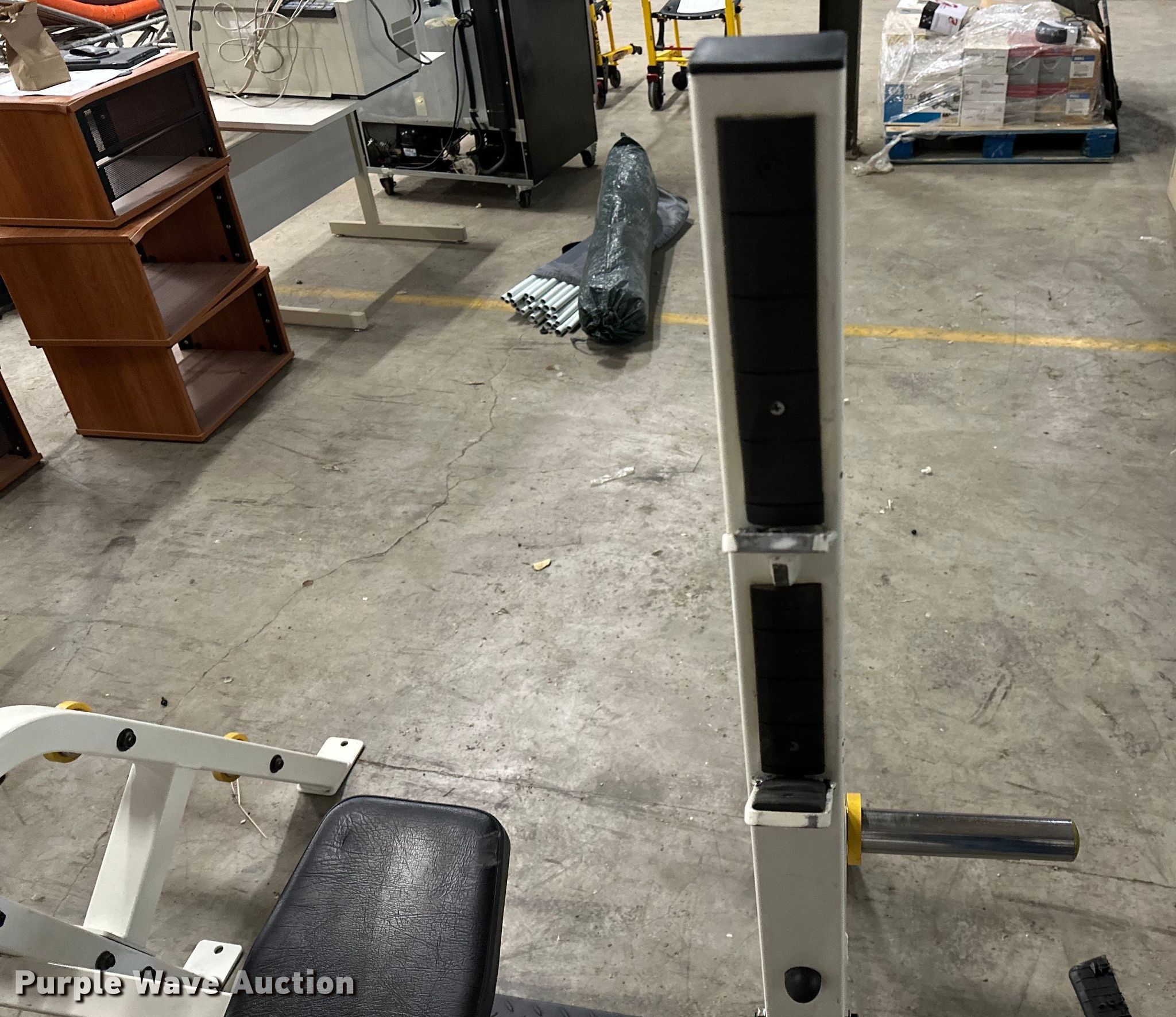 Purple Wave is selling a used Sporting Goods in Oklahoma. This item is a Workout equipment with the following: Body-Solid leg machine, Exertec Fitness bench, Incline bench press