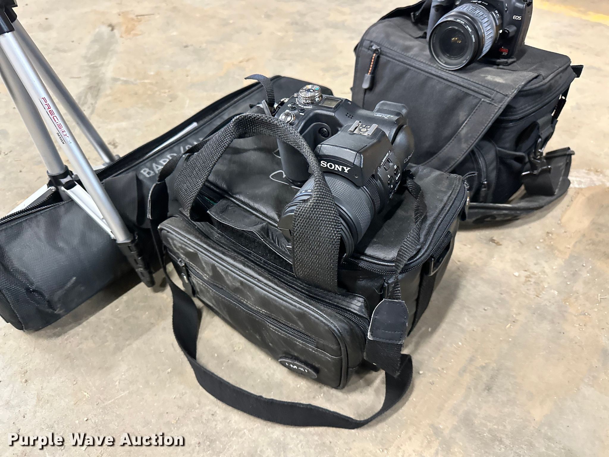 Purple Wave is selling a used Electronics in Oklahoma. This item is a Electronics with the following: Canon EOS60D camera, Canon Rebel XT camera, Sony Cybershot camera, Canon VIXIA HFR62 camcorder, Canon VIXIA HF R700 camcorder, Sony DCR-VX2000 camcorder, Precision tripod