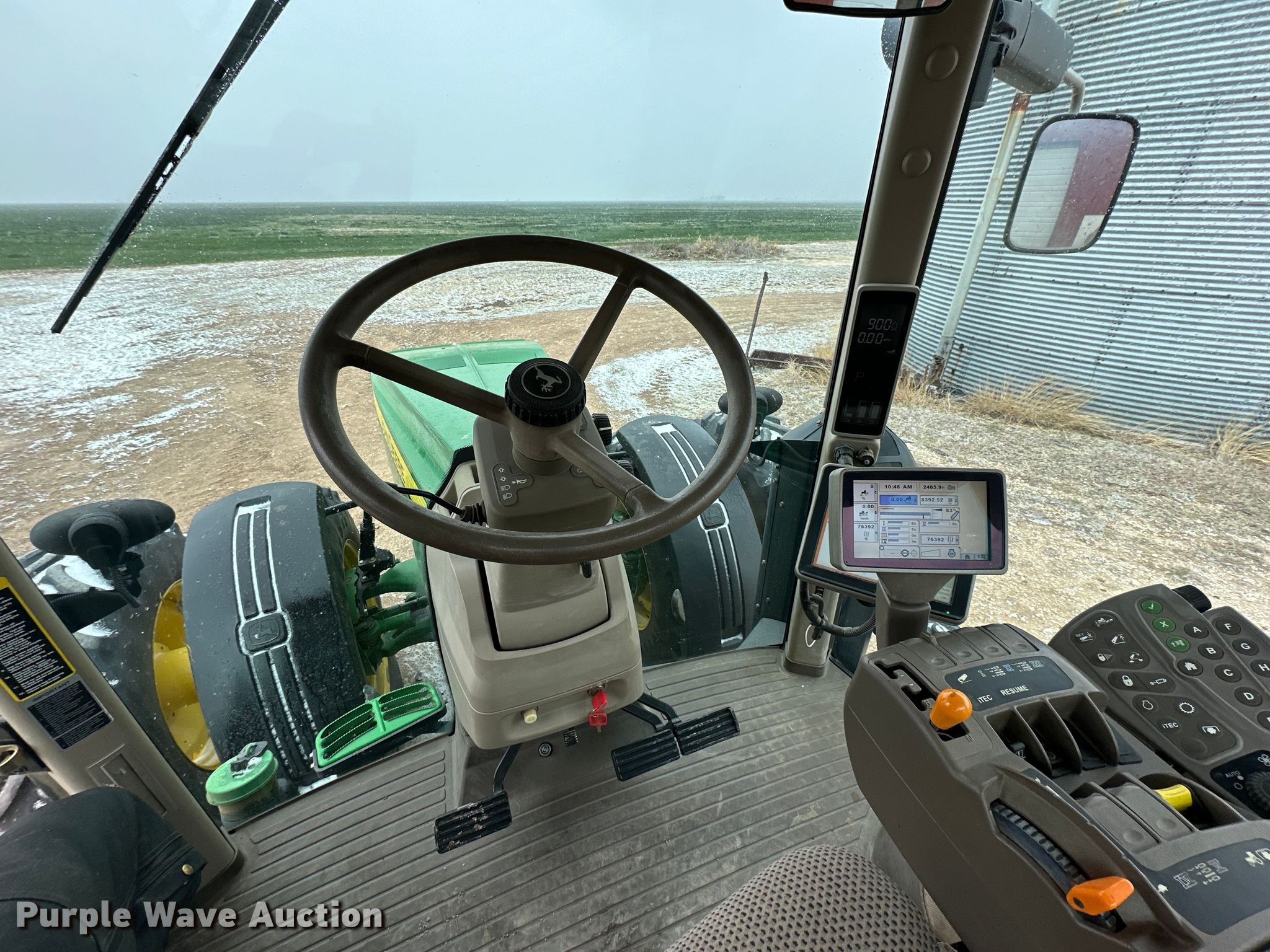 2013 John Deere 8335R MFWD tractor. Hours: 2,466 on meter, Serial: 1RW8335RKDP071141. Engine John Deere 6090HFG95, Displacement: 9.0L, Cylinders: 6, Fuel type: Diesel, HP: 335. Transmission Powershift, 16F - 4R, Differential lock. Operators station AC, Heat, GPS receiver John Deere Starfire 3000, Display, Auto steer. Features PTO: 1 3/4" 1000, Three point Quick attach, Seven pin outlet, ISOBUS outlet, Hydraulic remote sets Rear: 5, Power beyond (hydraulics), Suitcase weights: 22. Tires Front: 420/85R34, Rear: 480/80R50, Wheel weights: 8, Duals, Front duals. Hart Farms. 9200 Farm to Market Road 520. Spearman, TX 79081