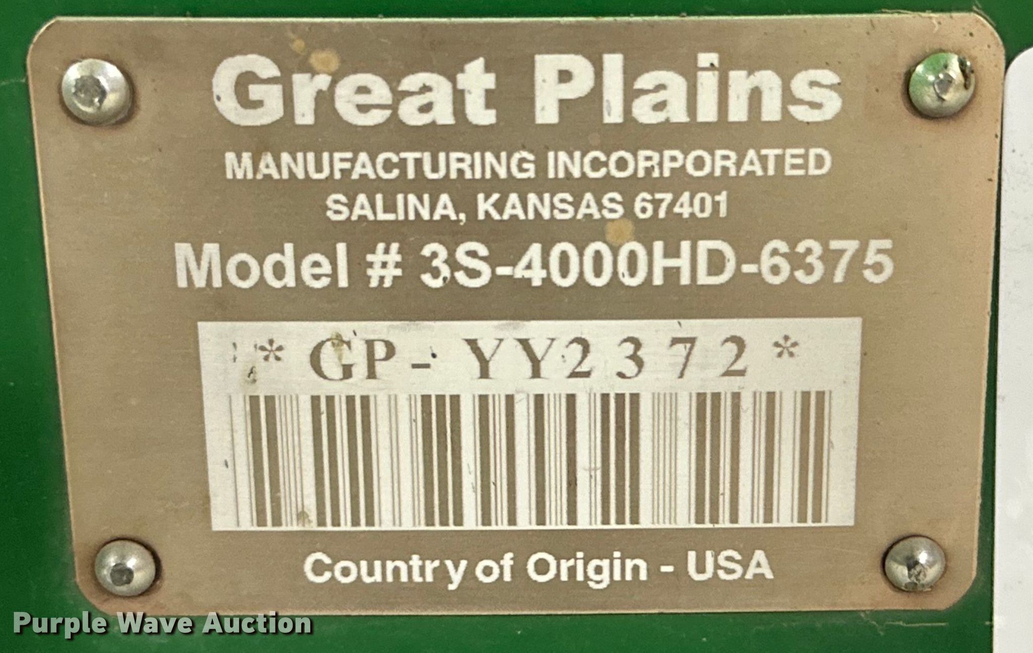 Purple Wave is selling a used Grain Drill or Seeder in Texas. This item is a 2011 Great Plains 3S-4000HD-6375 grain drill with the following: Width: 40', Row units: 63, Row spacing: 7.5", Serial: GP-YY2372