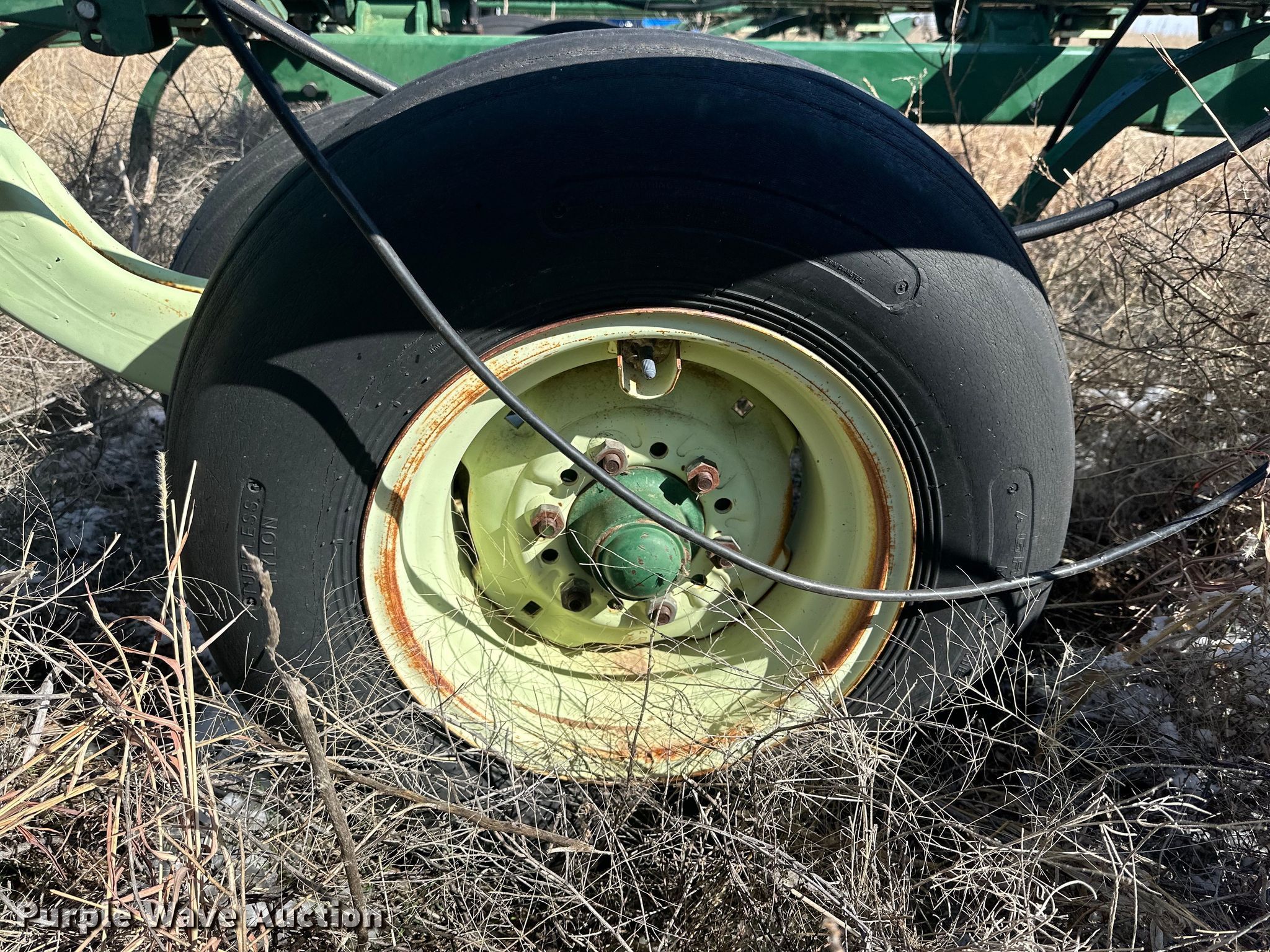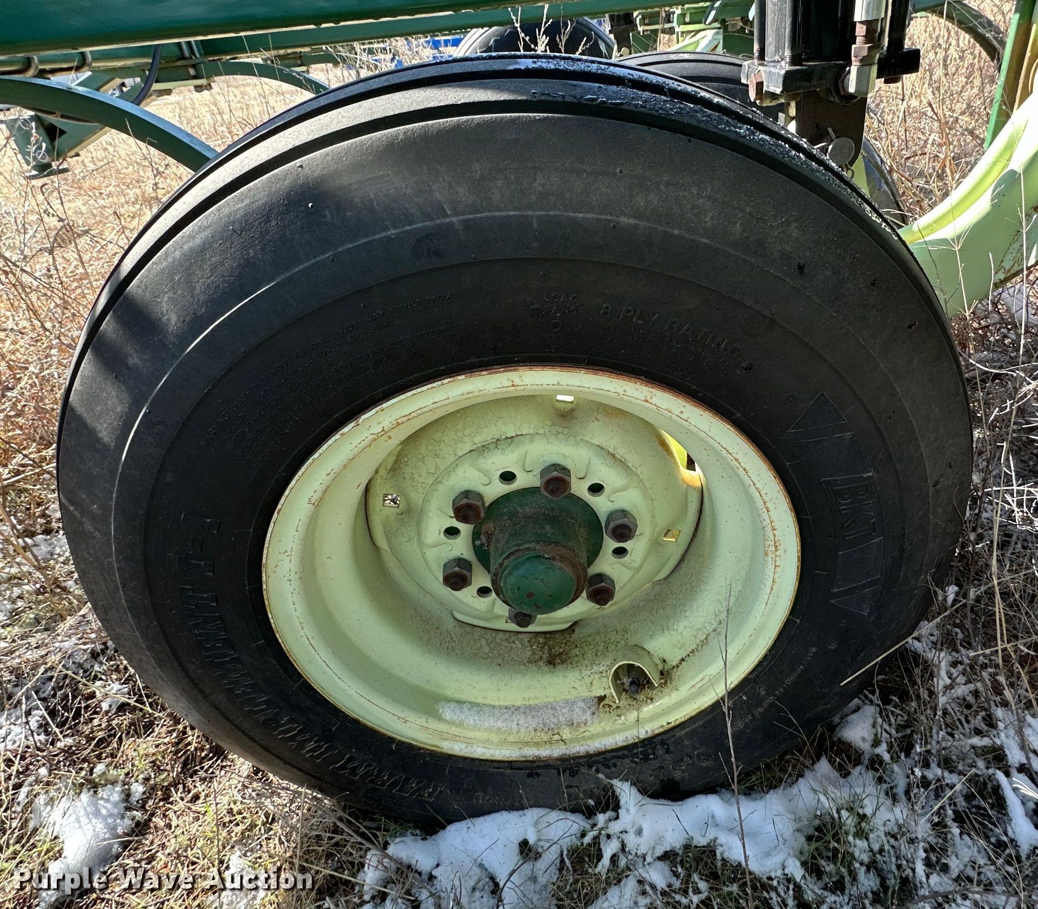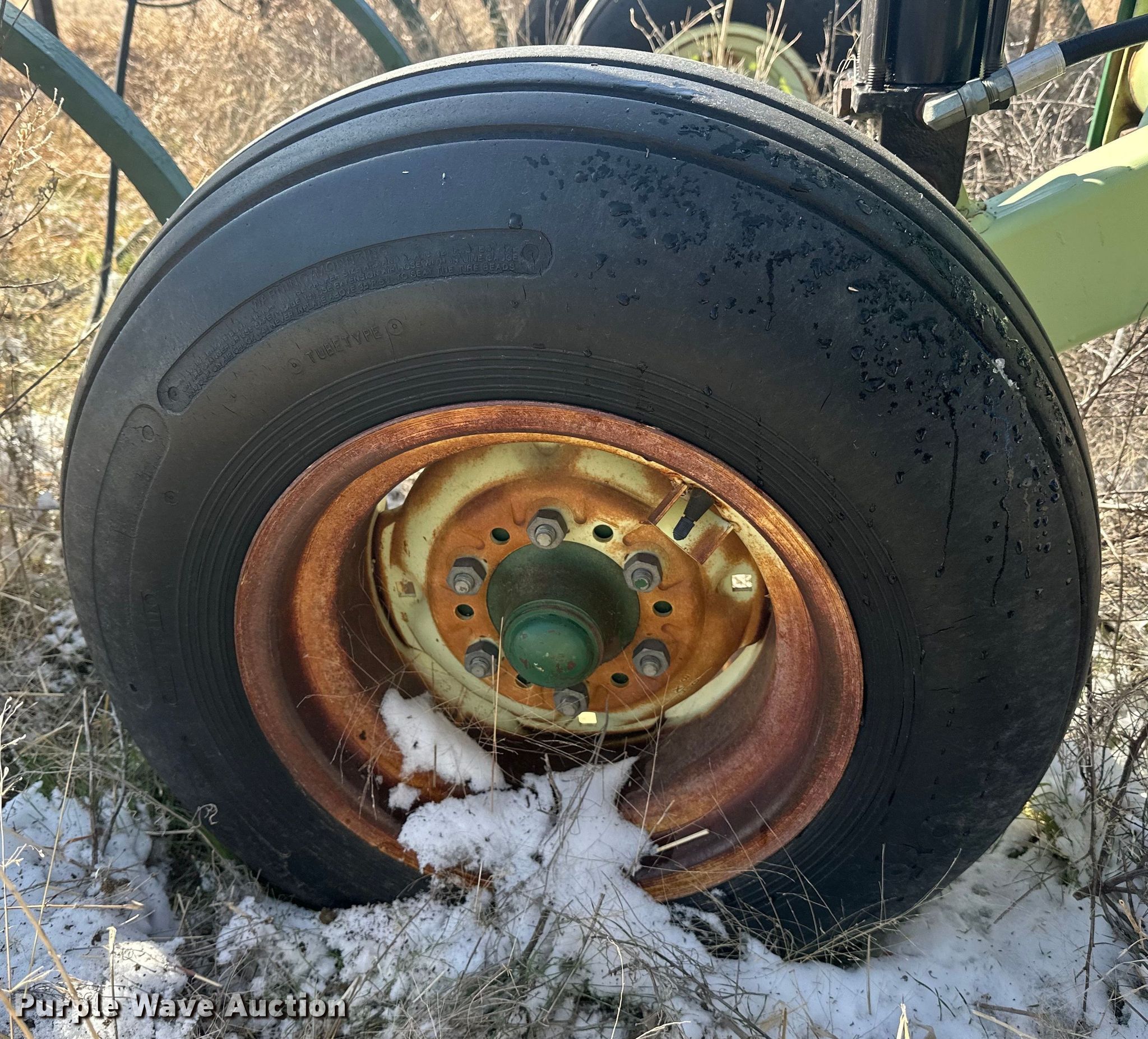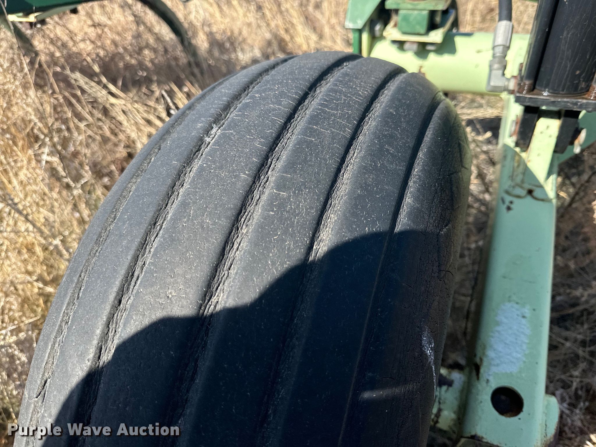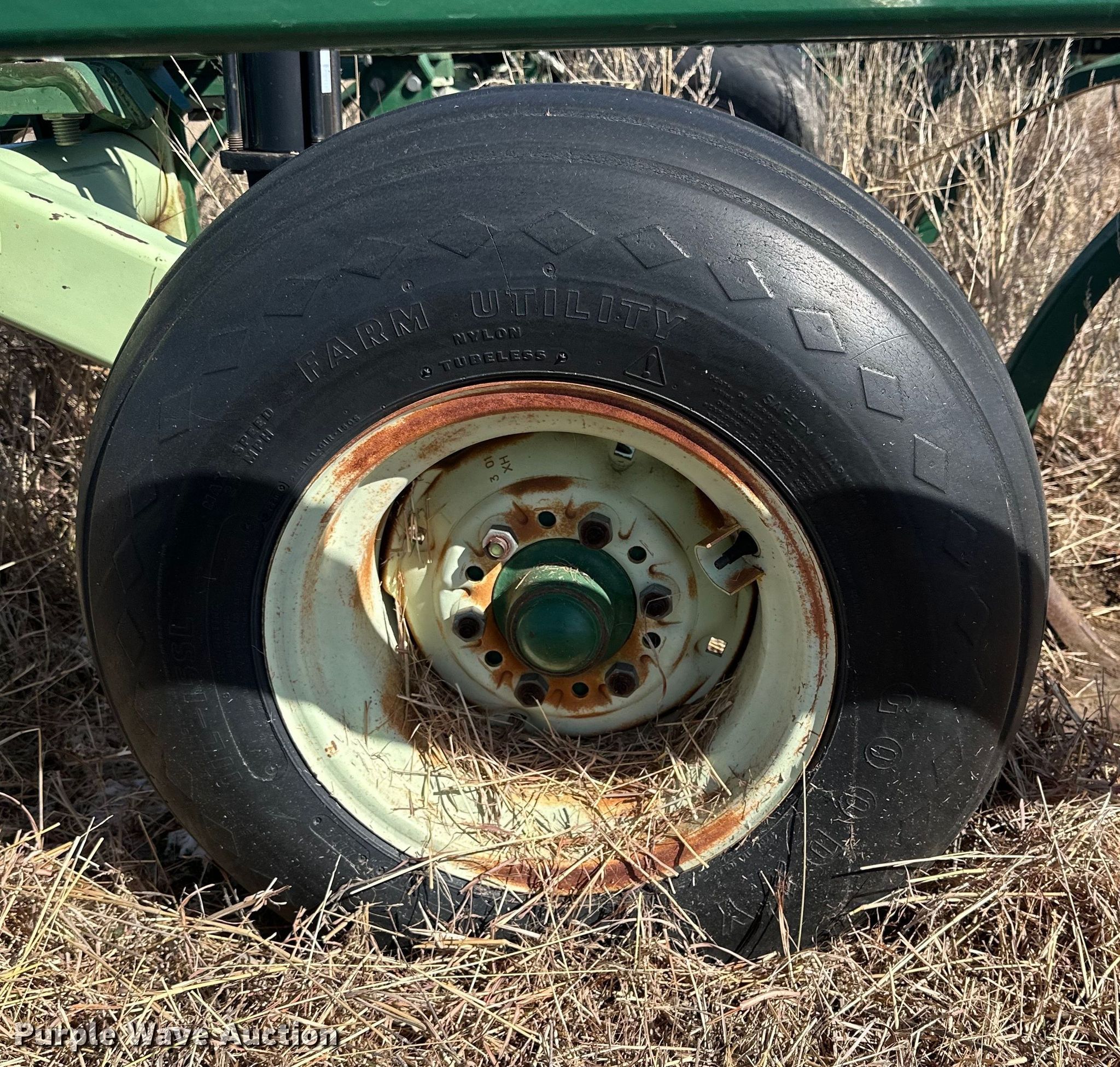 Quinstar FM chisel. Overall width: 42', Serial: 0101-2811. Features Shanks: 23, Sweep width: 2', Operation Hydraulic lift, Hydraulic fold, Attachments Rolling pickers/ treader. Tires Tire size: 11-15. Notes Hydraulic cylinder missing. Hart Farms. 9200 Farm to Market Road 520. Spearman, TX 79081