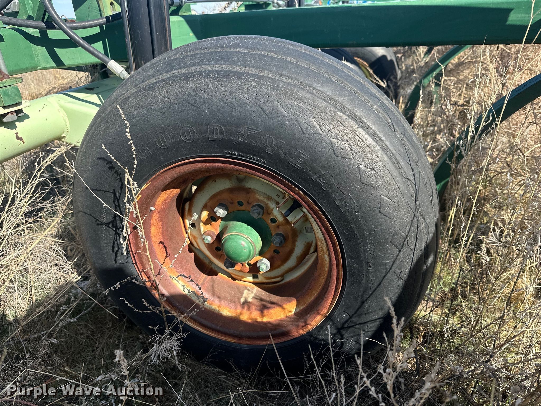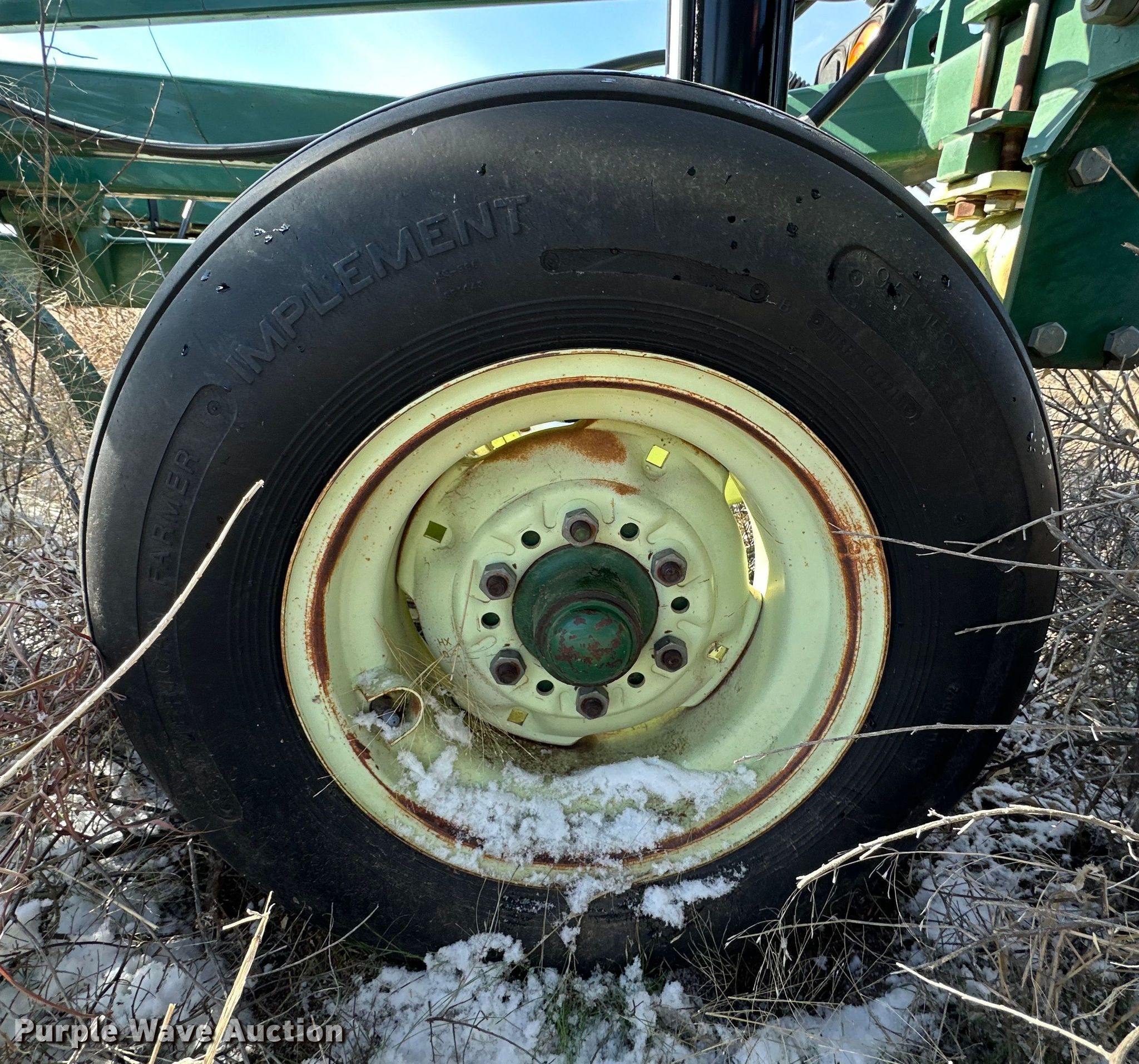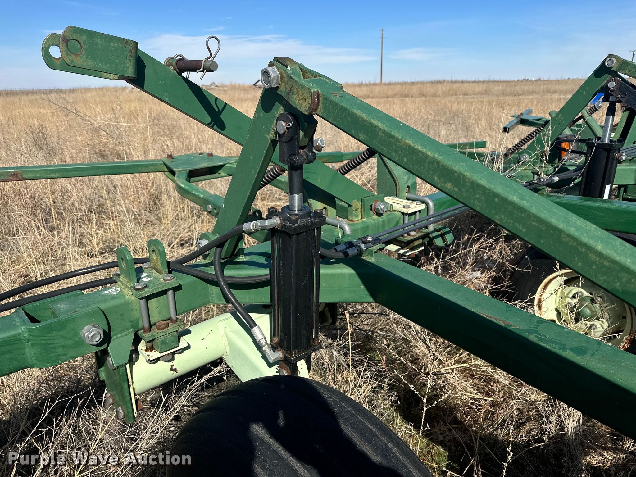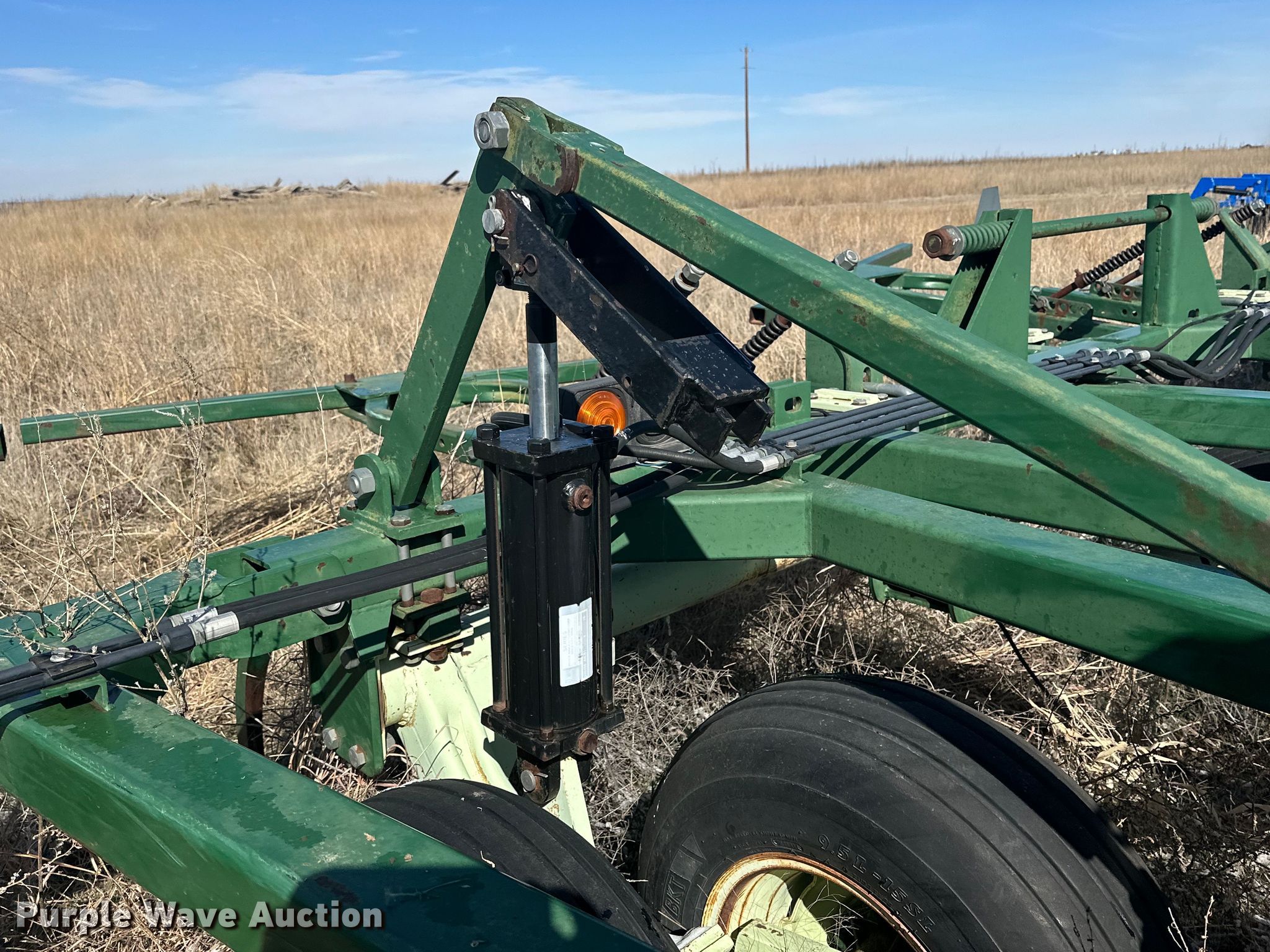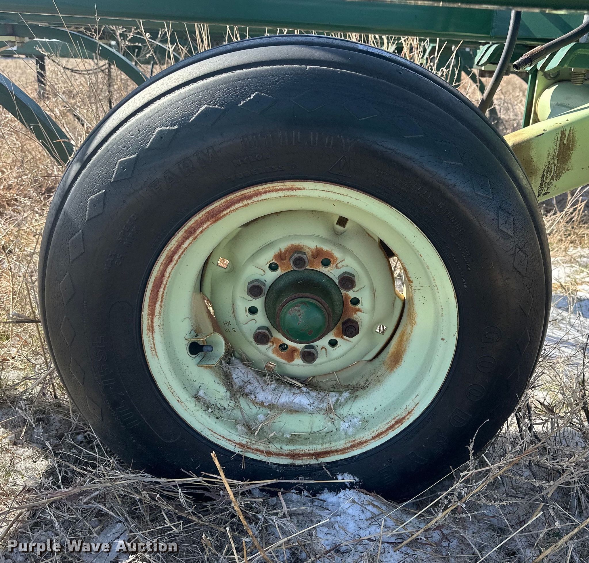 Quinstar FM chisel. Overall width: 42', Serial: 0101-2811. Features Shanks: 23, Sweep width: 2', Operation Hydraulic lift, Hydraulic fold, Attachments Rolling pickers/ treader. Tires Tire size: 11-15. Notes Hydraulic cylinder missing. Hart Farms. 9200 Farm to Market Road 520. Spearman, TX 79081