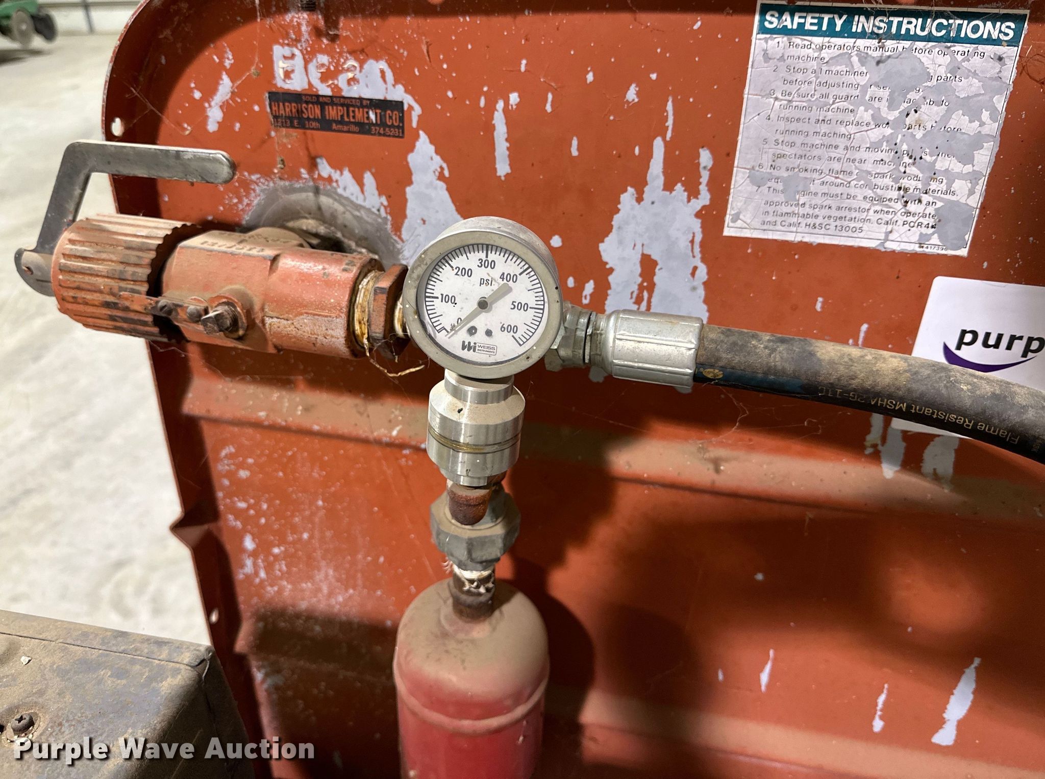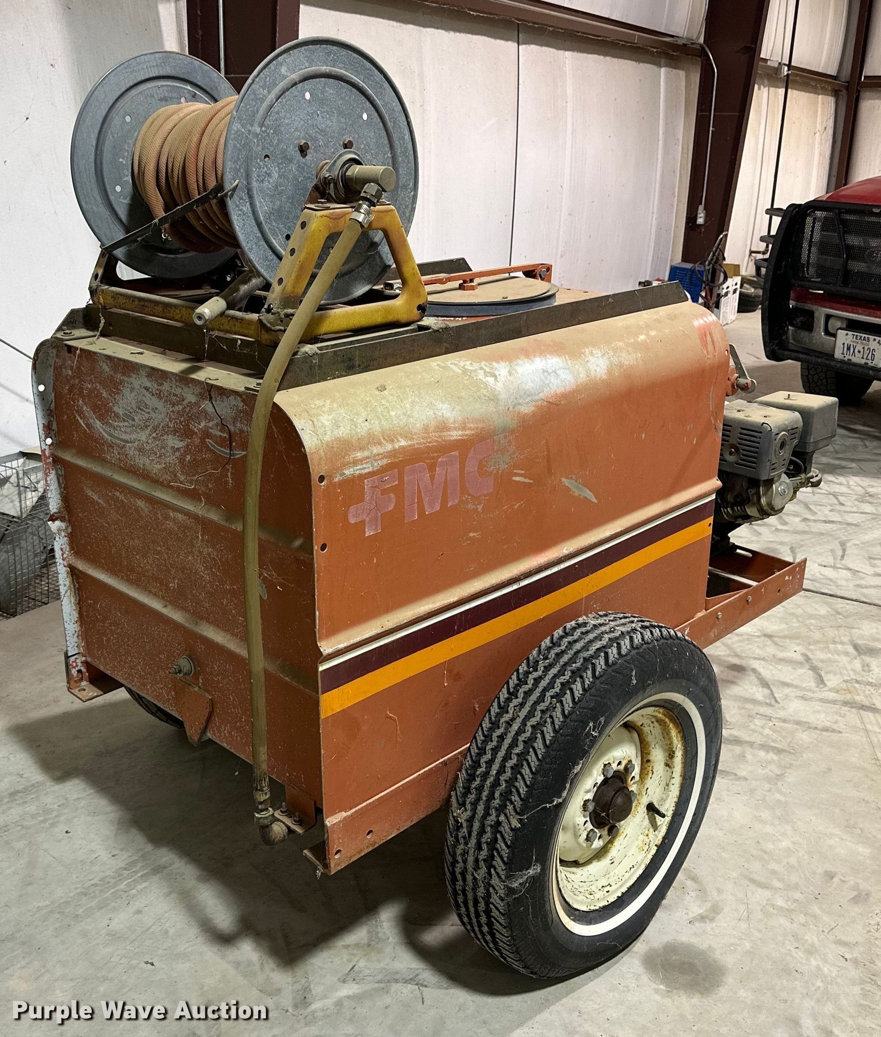 Purple Wave is selling a used Applicator Pull Type in Texas. This item is a John Bean sprayer trailer with the following: Tank dimensions 4'x3'x2.5', Trailer dimensions 8.5'x4.5'