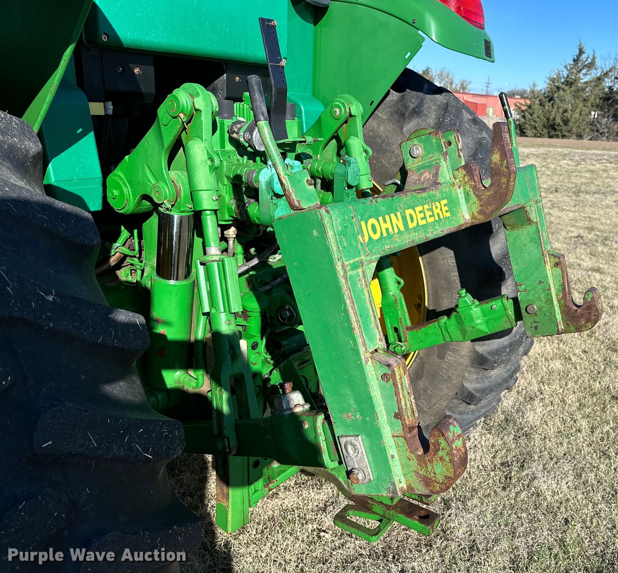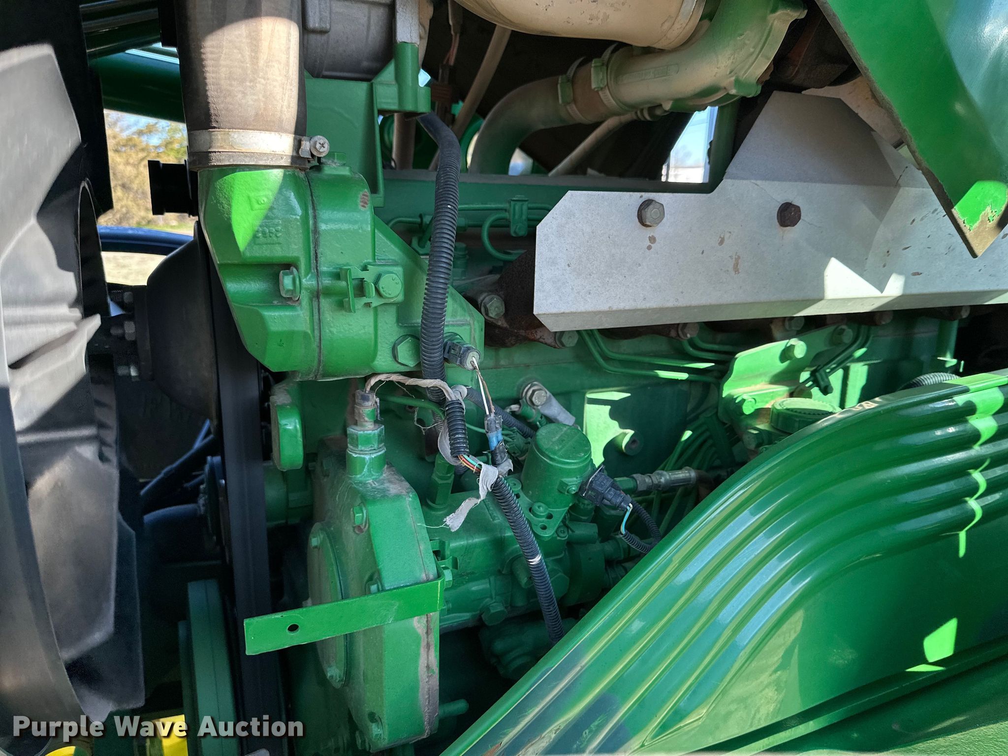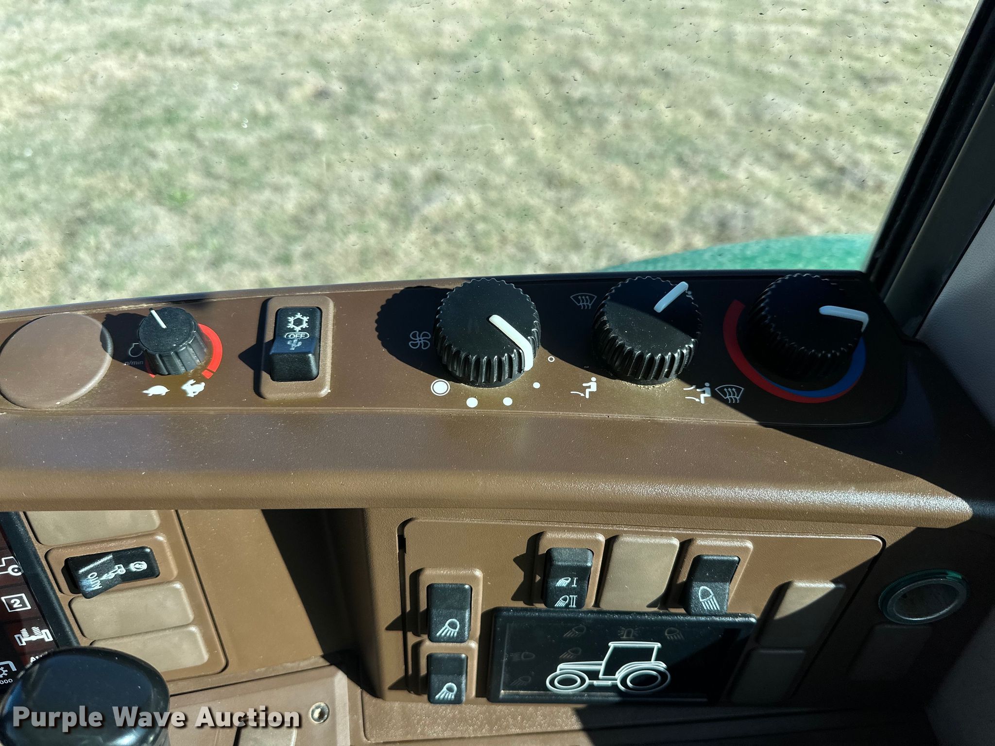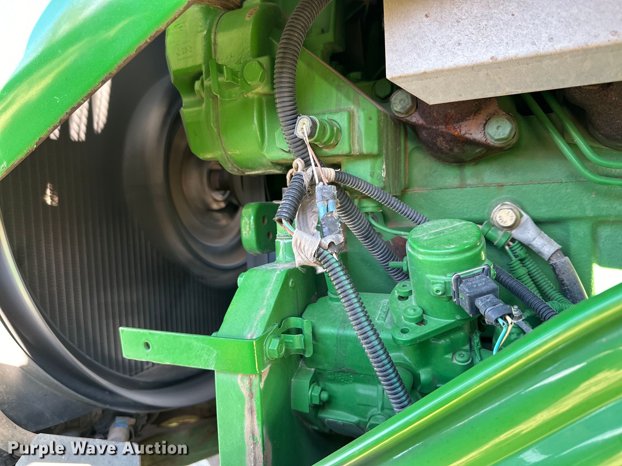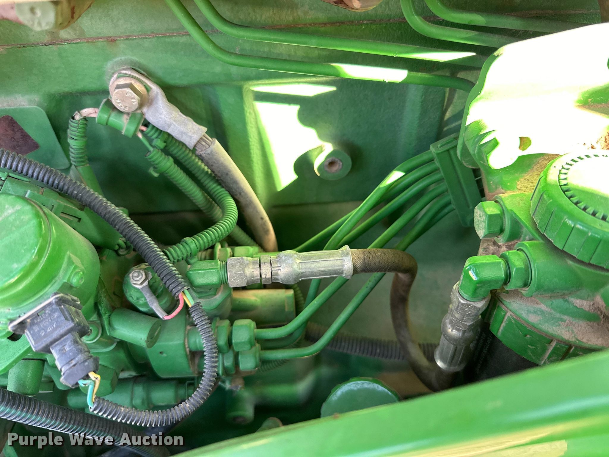 2003 John Deere 7220 MFWD tractor. Hours: 2,033 on meter, Serial: RW7220R001827. Engine John Deere 6068TRW01, Displacement: 6.8L, Cylinders: 6, Fuel type: Diesel. Transmission Powershift, 16F - 16R, Left-hand reverser, Differential lock. Operators station AC, Heat. Features PTO: 540, Three point Quick attach, Seven pin outlet, Hydraulic remote sets Front: 2, Rear: 3, Loader John Deere 741, Quick attach, Bale spear, Self-leveling, Controls: Joystick, Bucket Width: 99".. Tires Front: 16.9-26, Rear: 18.4-38. Panhandle, TX 79068