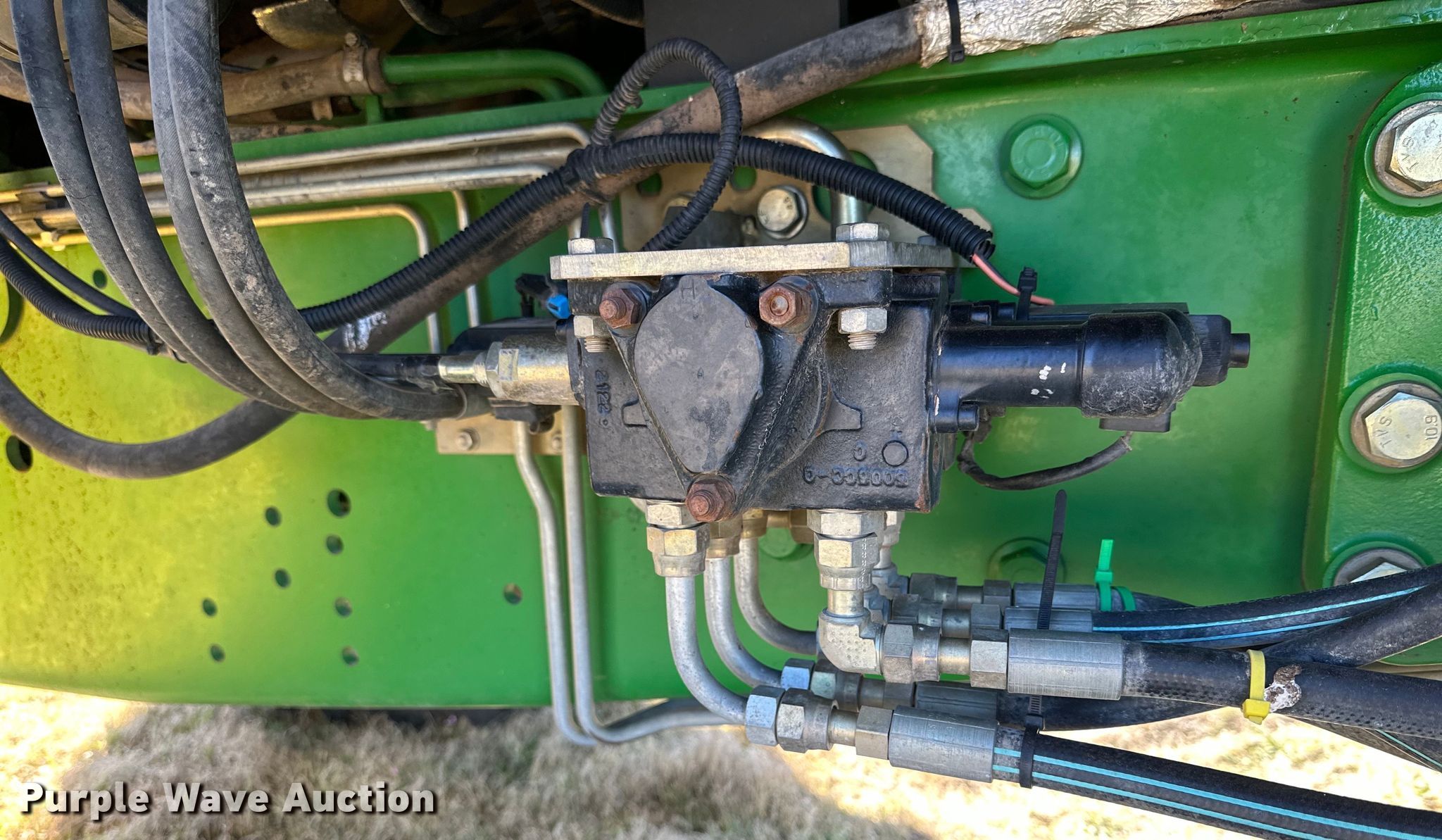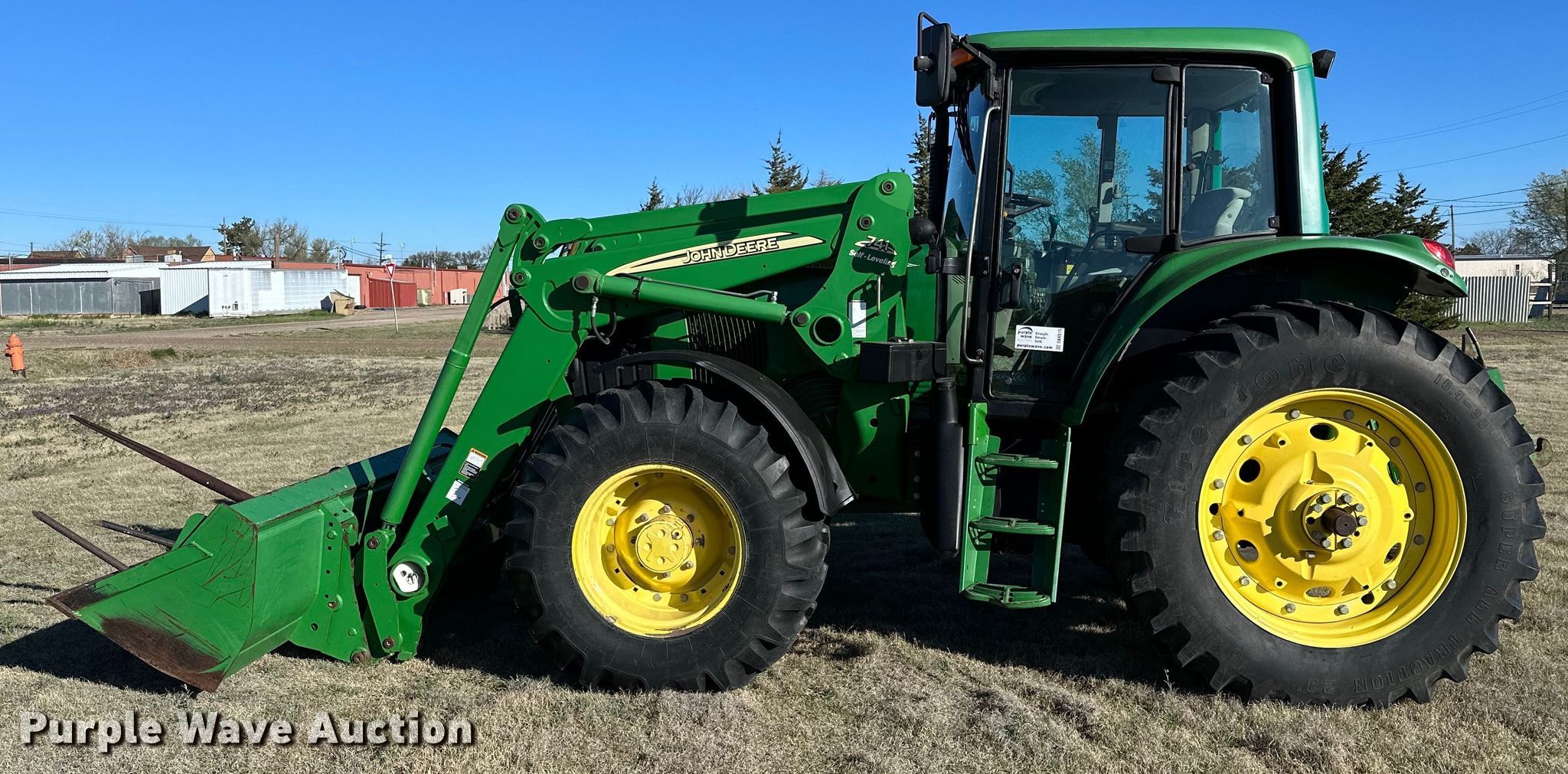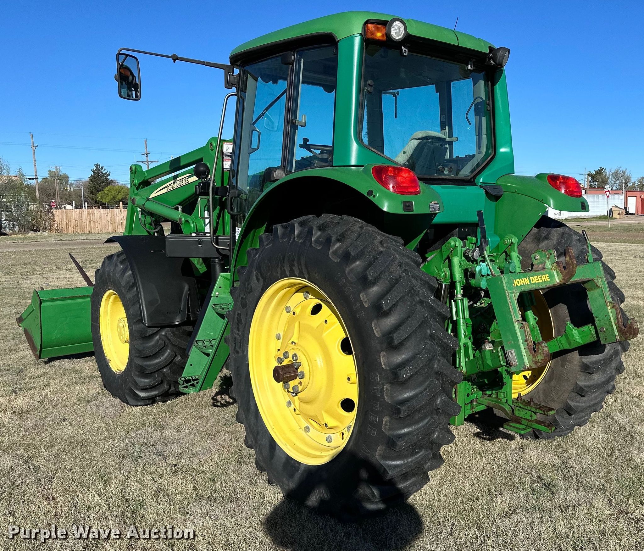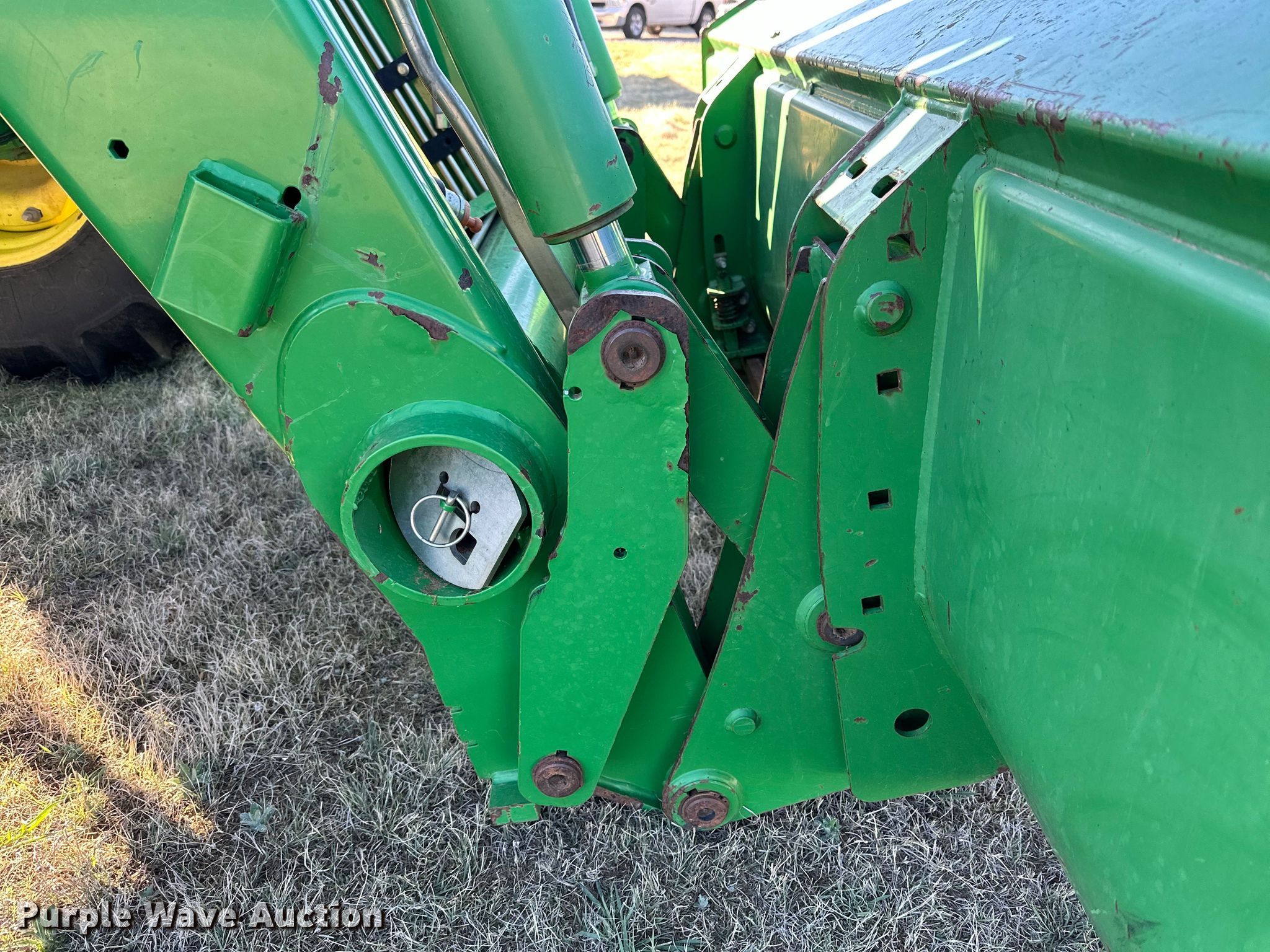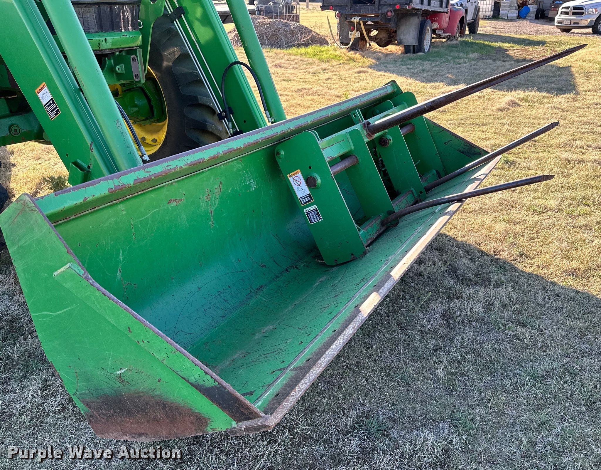 2003 John Deere 7220 MFWD tractor. Hours: 2,033 on meter, Serial: RW7220R001827. Engine John Deere 6068TRW01, Displacement: 6.8L, Cylinders: 6, Fuel type: Diesel. Transmission Powershift, 16F - 16R, Left-hand reverser, Differential lock. Operators station AC, Heat. Features PTO: 540, Three point Quick attach, Seven pin outlet, Hydraulic remote sets Front: 2, Rear: 3, Loader John Deere 741, Quick attach, Bale spear, Self-leveling, Controls: Joystick, Bucket Width: 99".. Tires Front: 16.9-26, Rear: 18.4-38. Panhandle, TX 79068