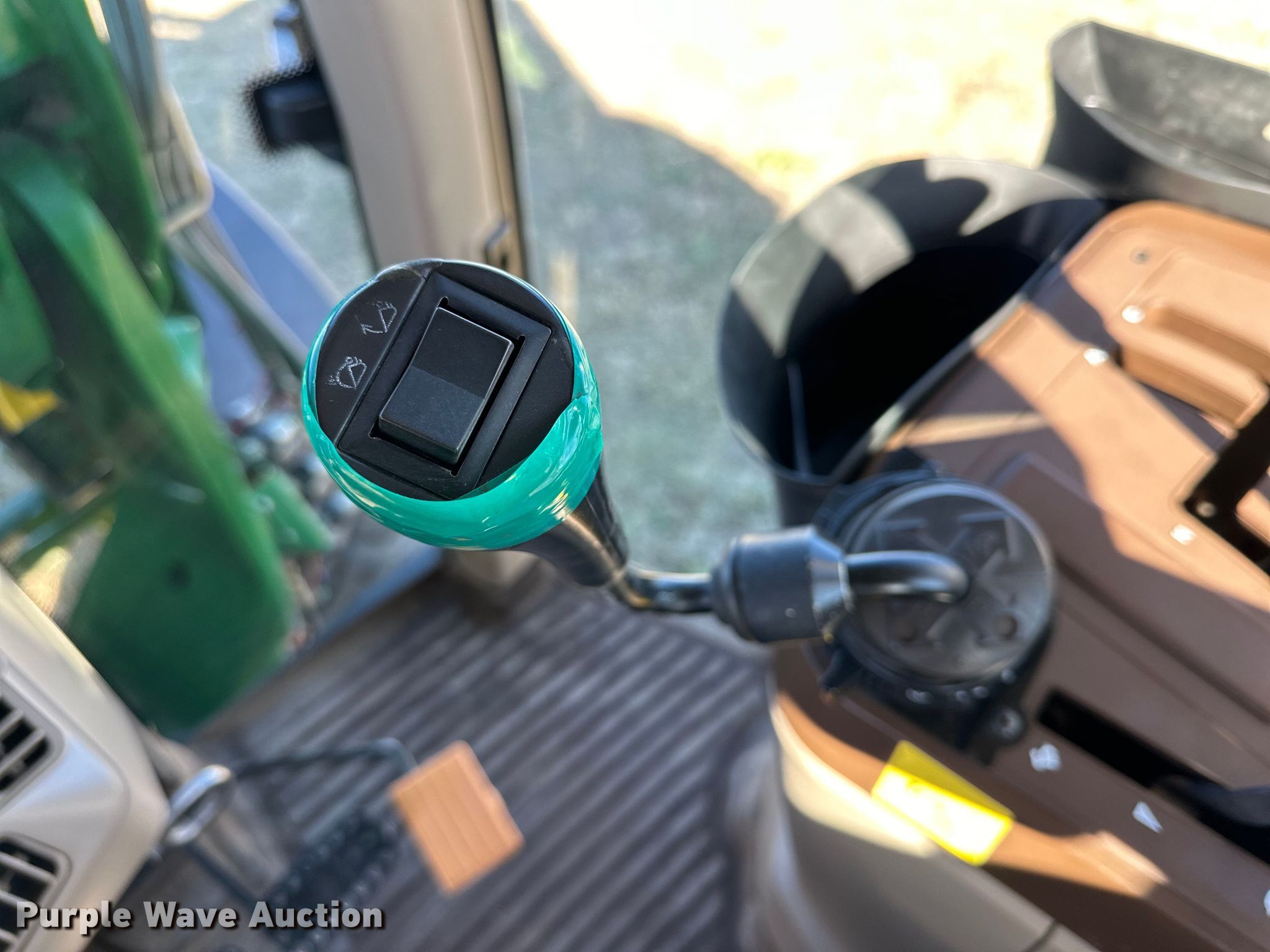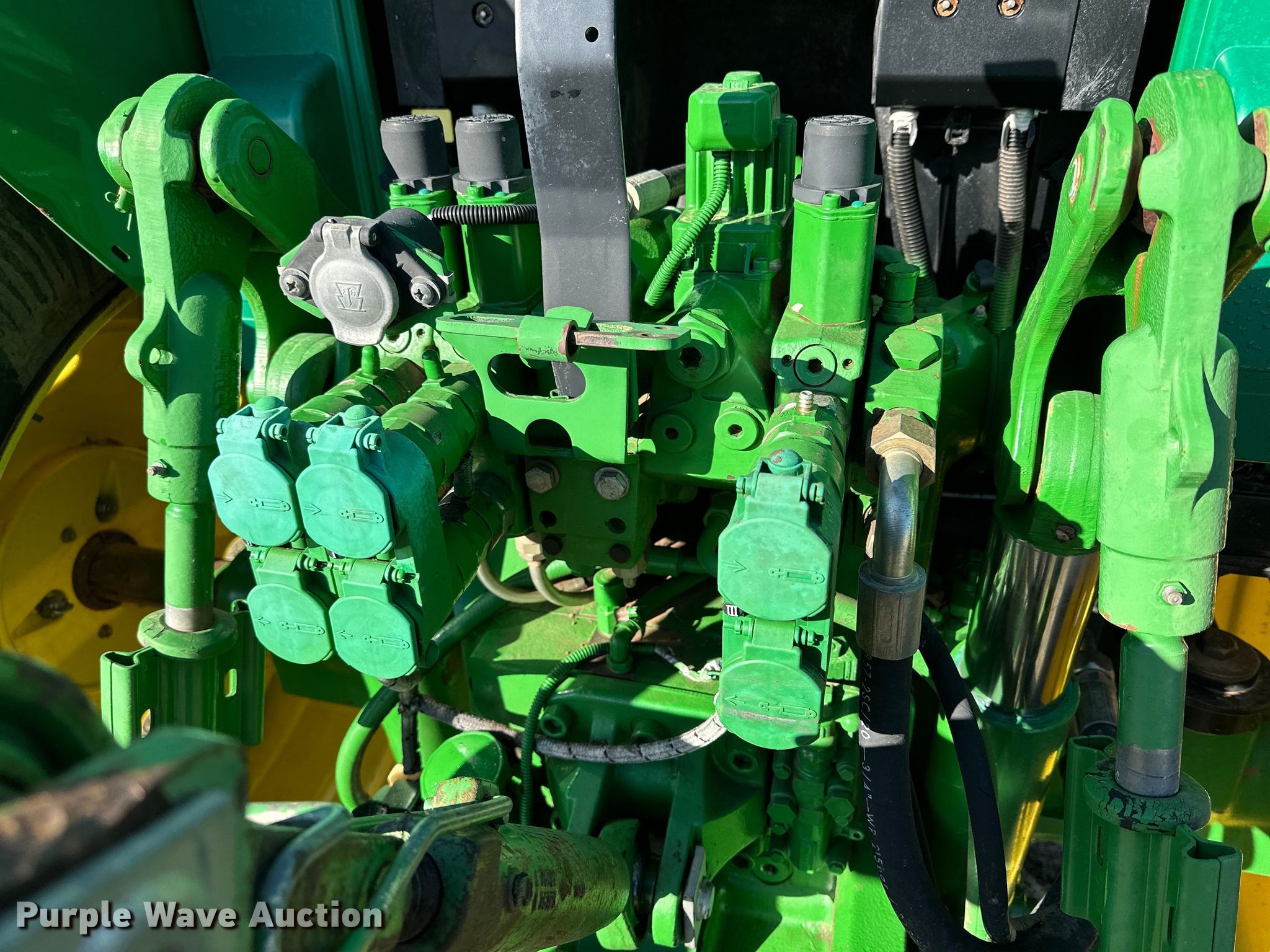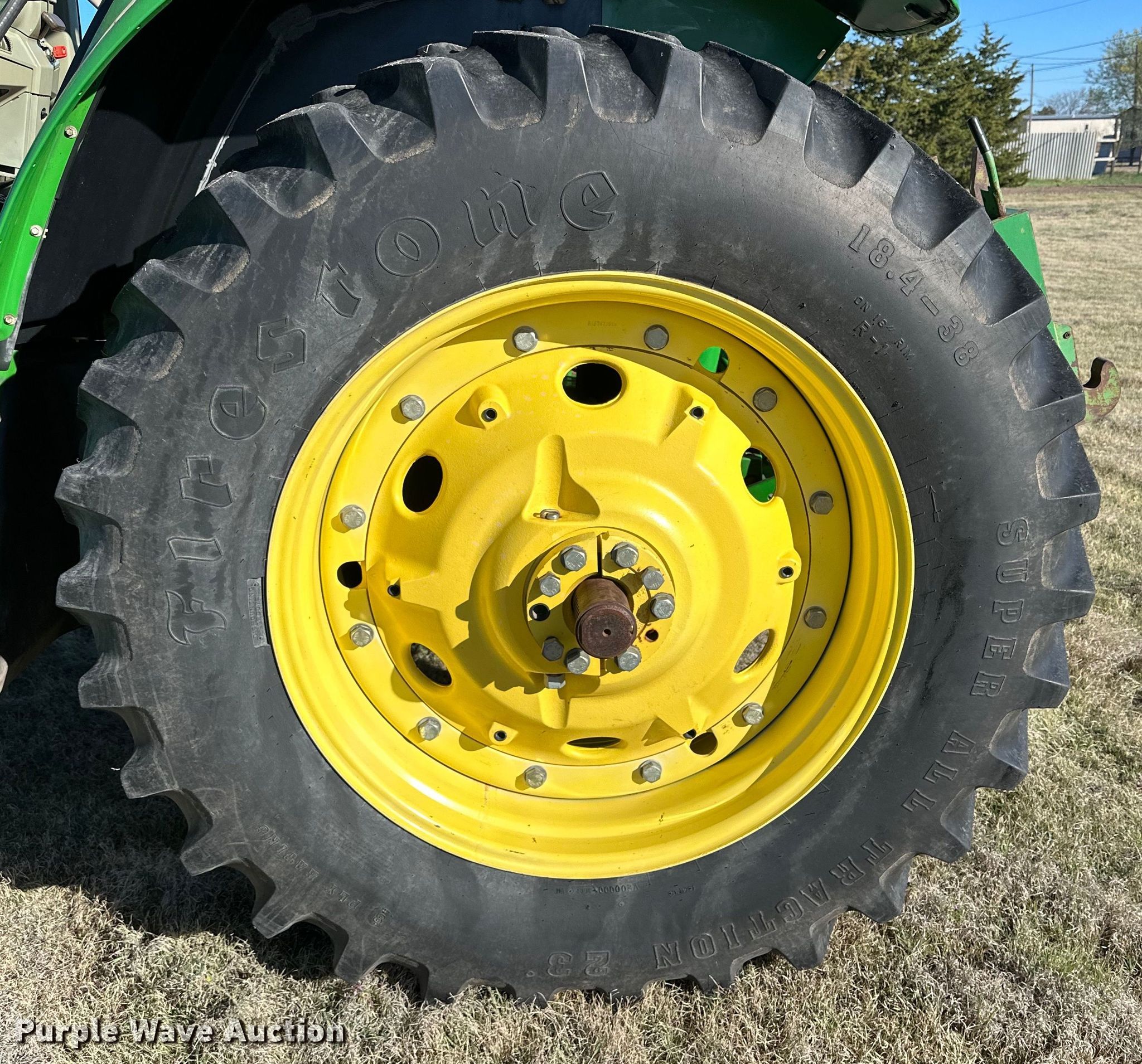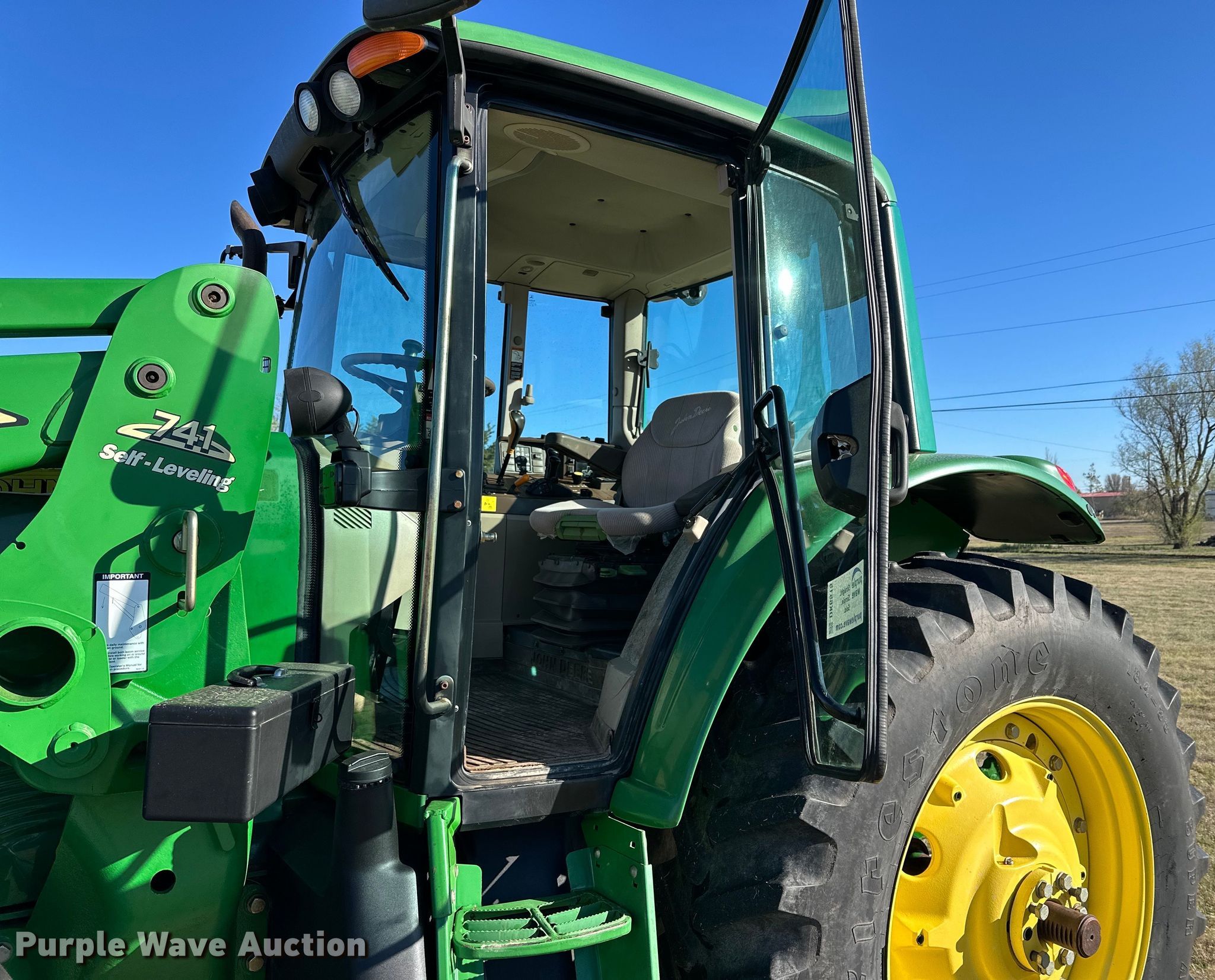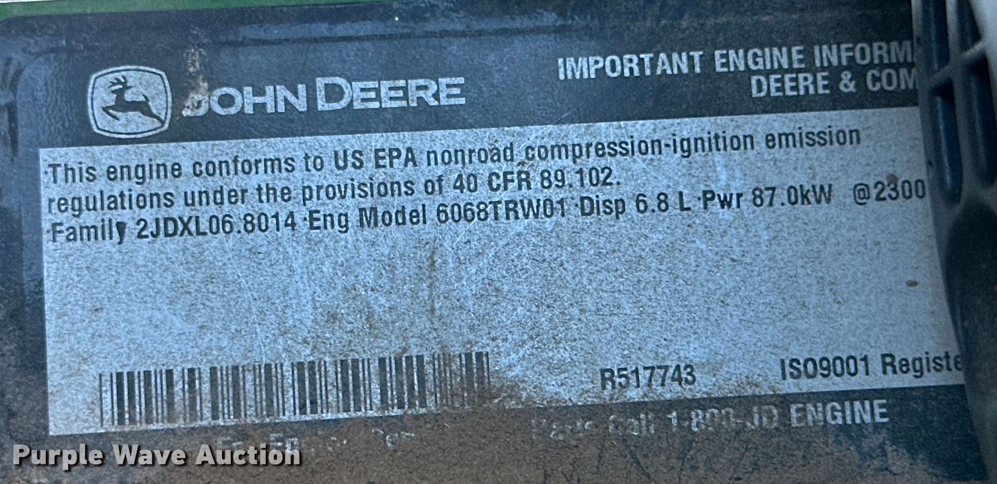 2003 John Deere 7220 MFWD tractor. Hours: 2,033 on meter, Serial: RW7220R001827. Engine John Deere 6068TRW01, Displacement: 6.8L, Cylinders: 6, Fuel type: Diesel. Transmission Powershift, 16F - 16R, Left-hand reverser, Differential lock. Operators station AC, Heat. Features PTO: 540, Three point Quick attach, Seven pin outlet, Hydraulic remote sets Front: 2, Rear: 3, Loader John Deere 741, Quick attach, Bale spear, Self-leveling, Controls: Joystick, Bucket Width: 99".. Tires Front: 16.9-26, Rear: 18.4-38. Panhandle, TX 79068