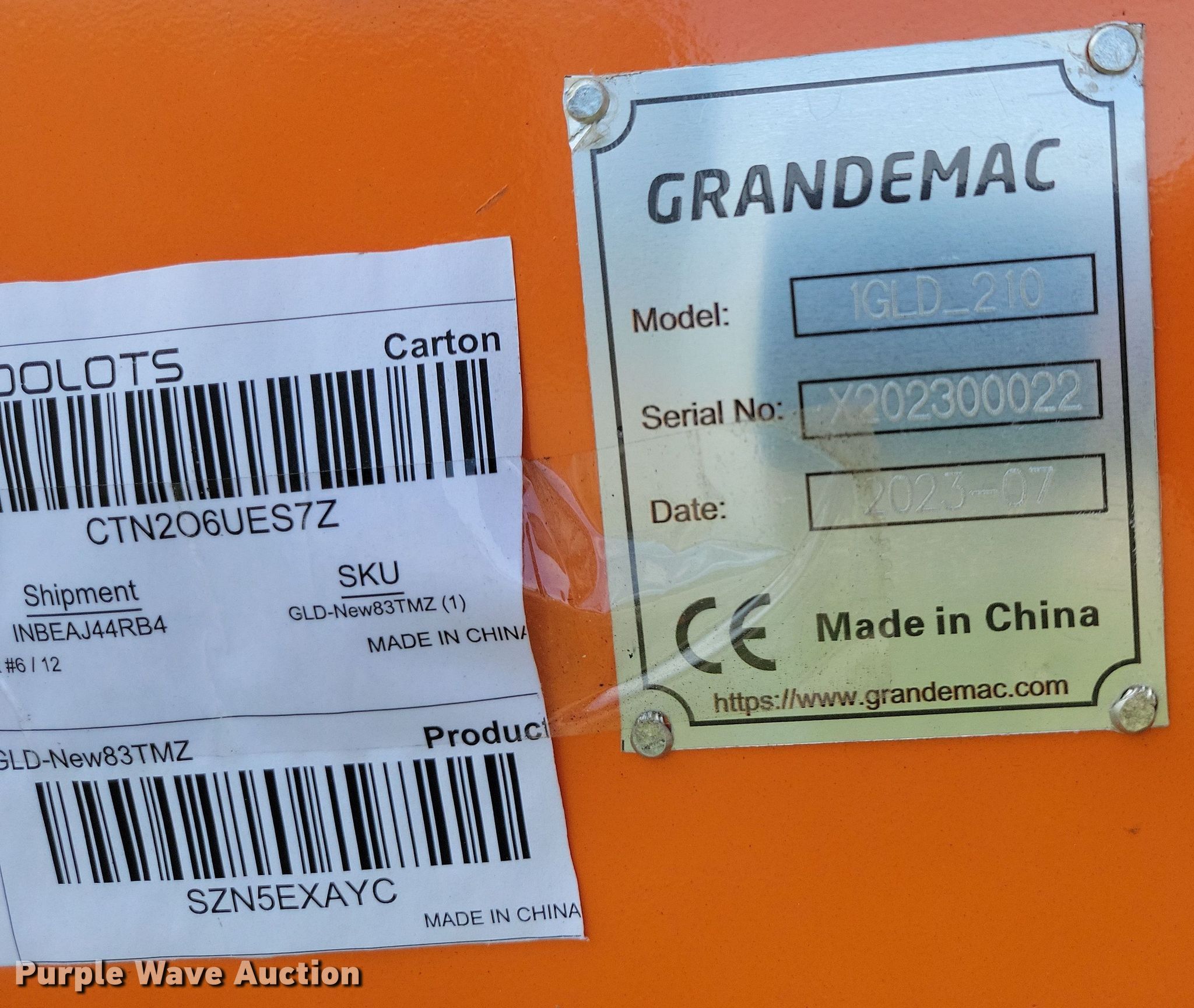 Purple Wave is selling a used Rotary Tillage in Missouri. This item is a 2023 Grandemac 1GLD-210 rototiller with the following: Overall width: 84", Serial: X202300022