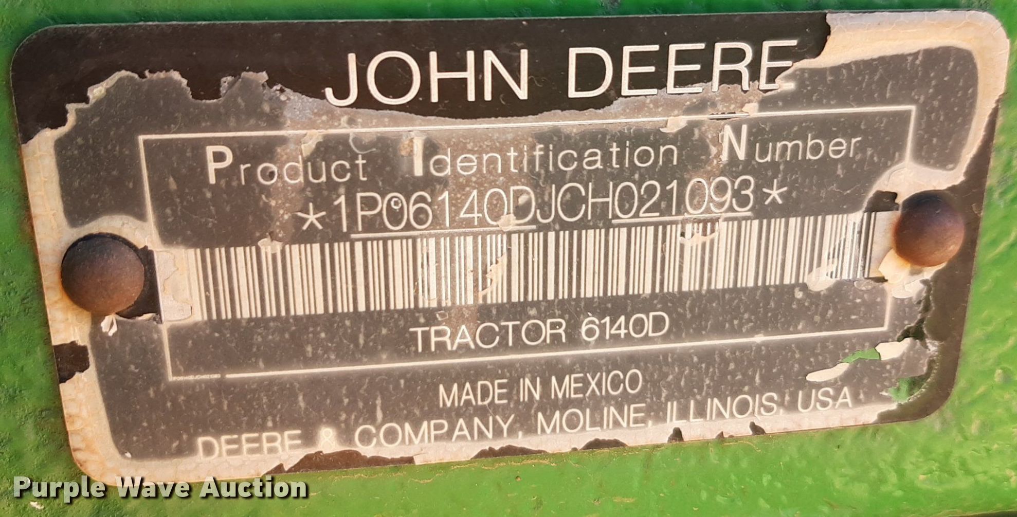 Purple Wave is selling a used Tractor in Oklahoma. This item is a 2012 John Deere 6140D MFWD tractor with the following: Hours: 1,466 on meter, Serial: 1P06140DJCH021093