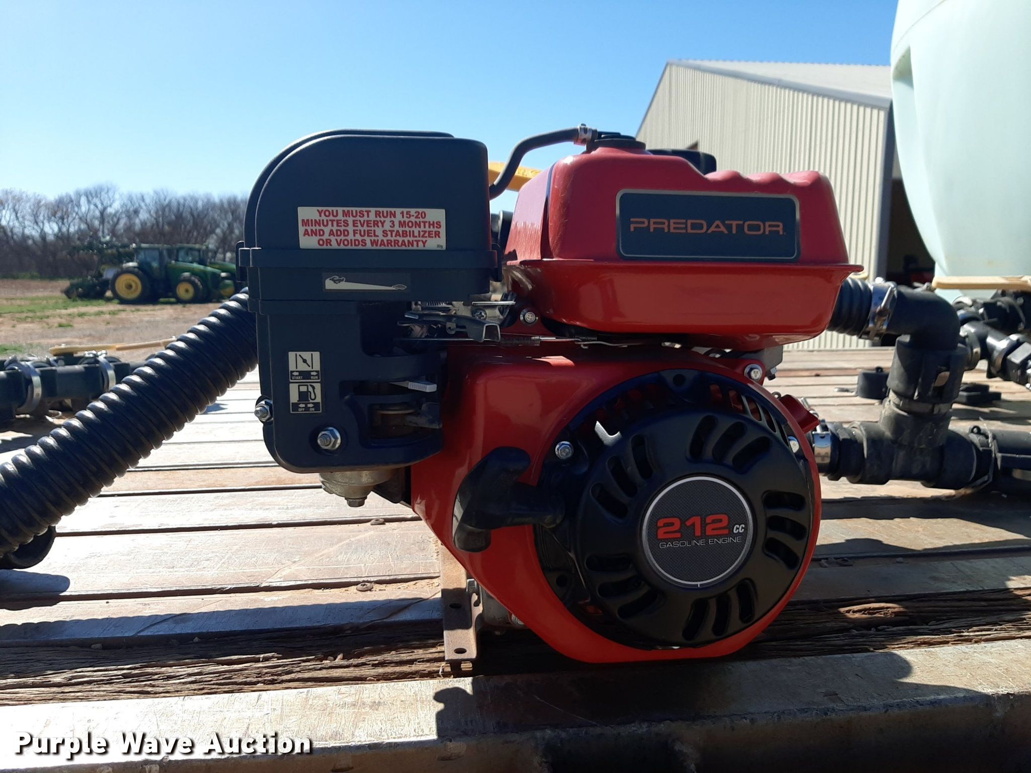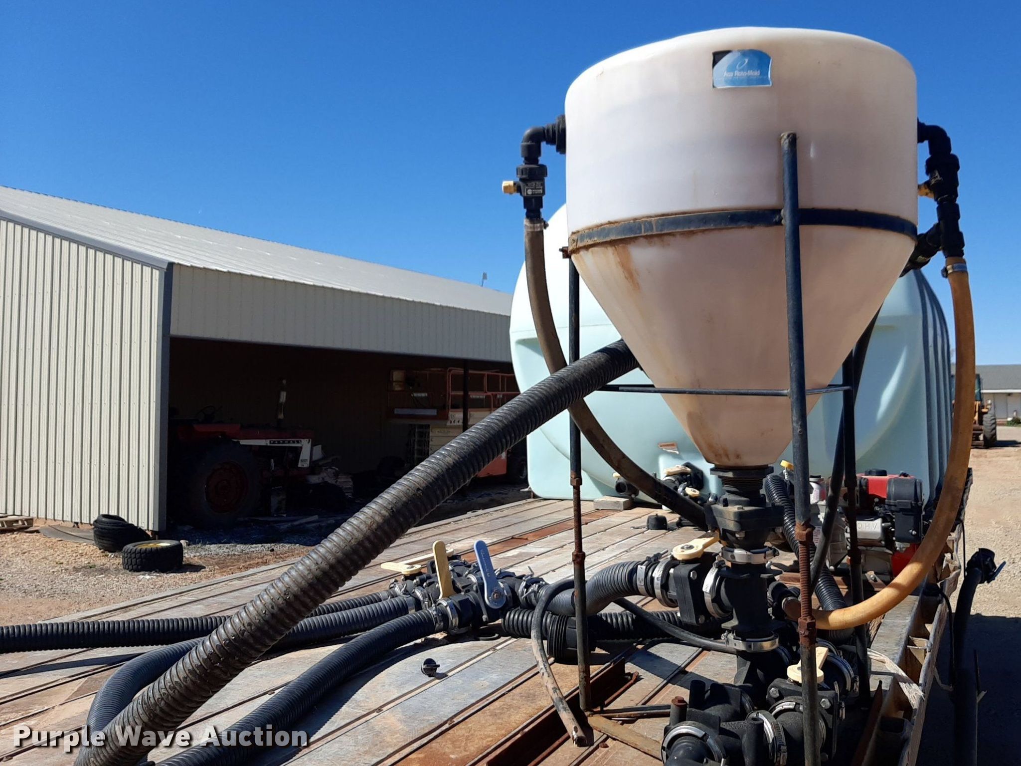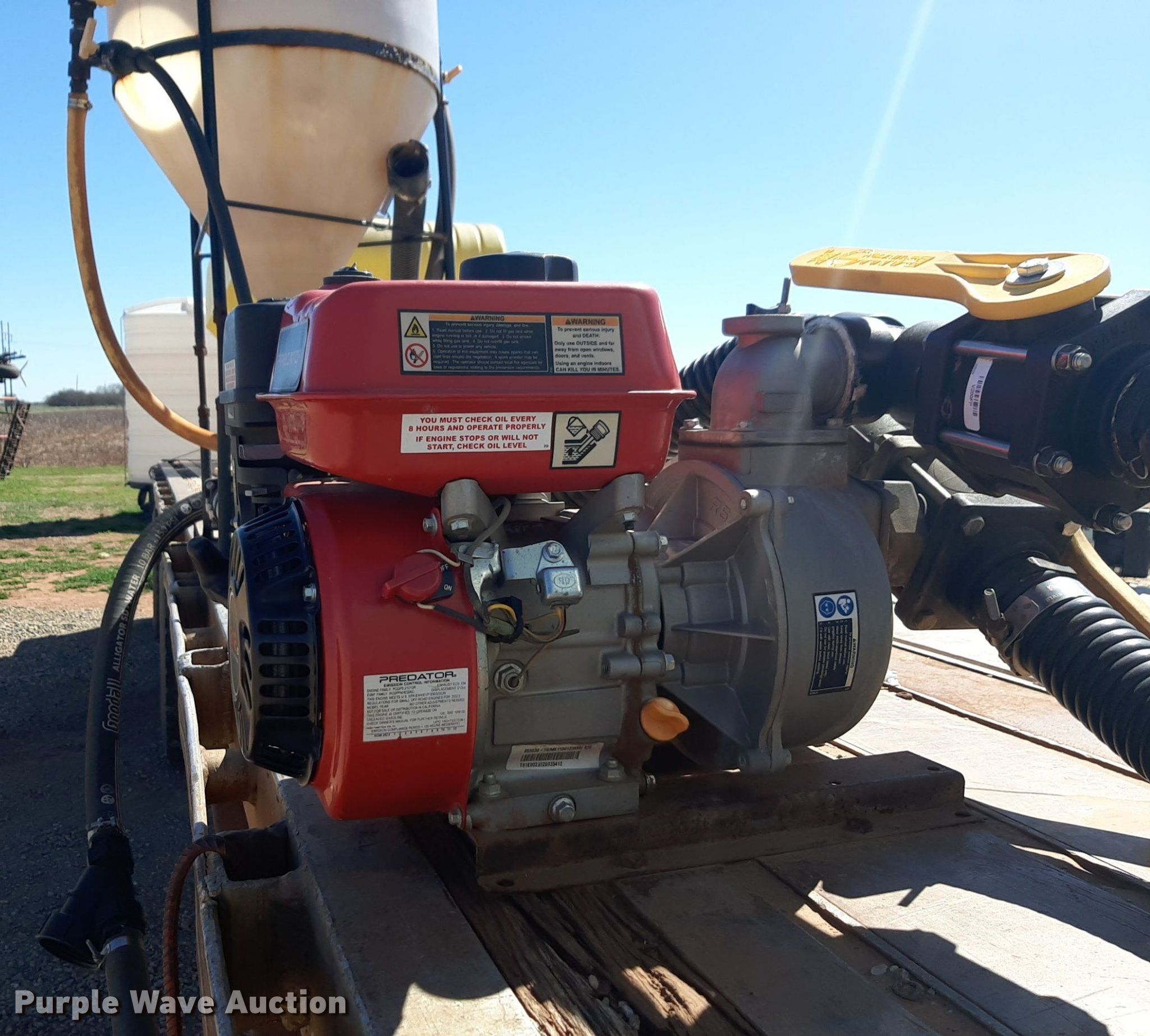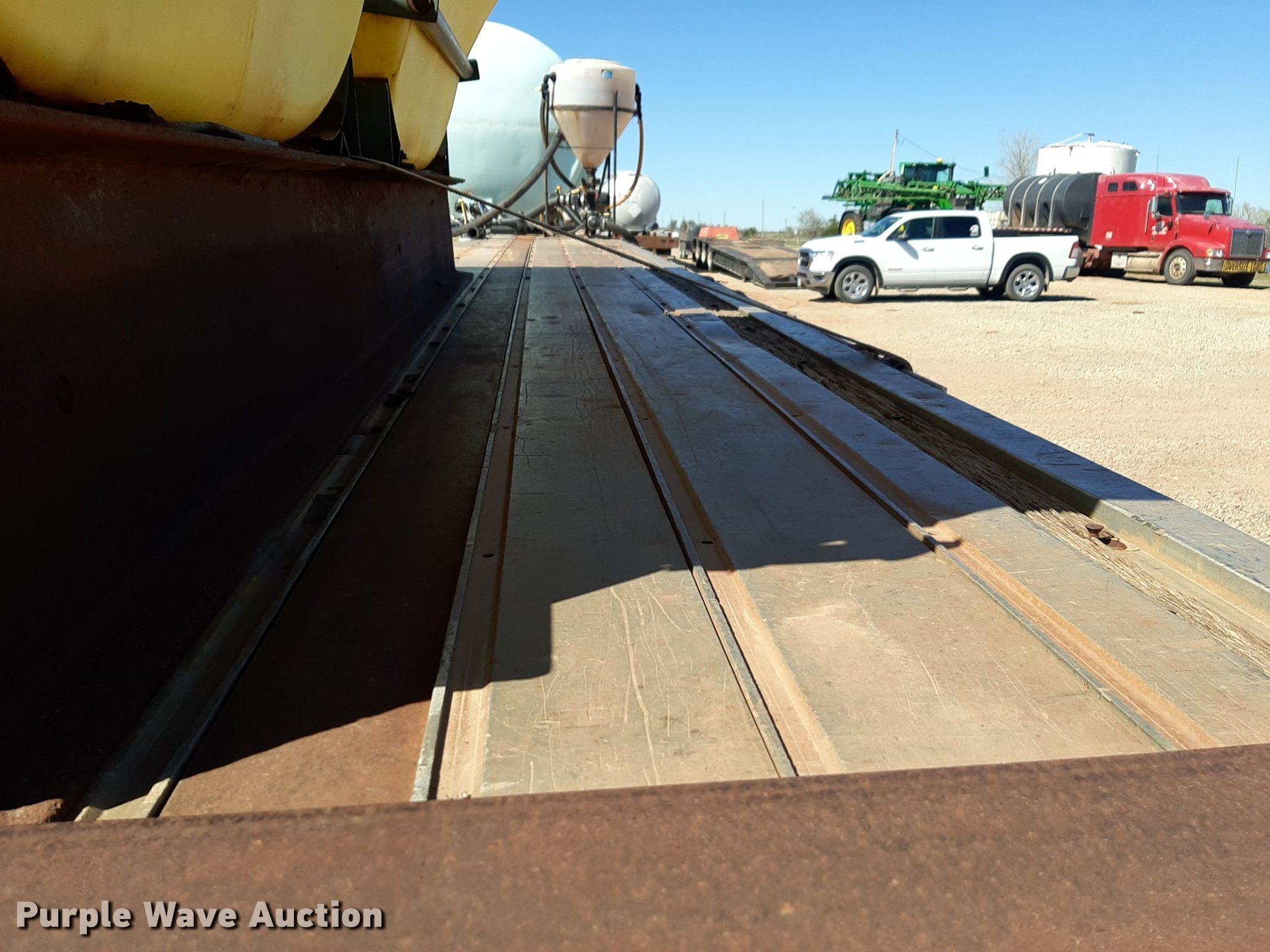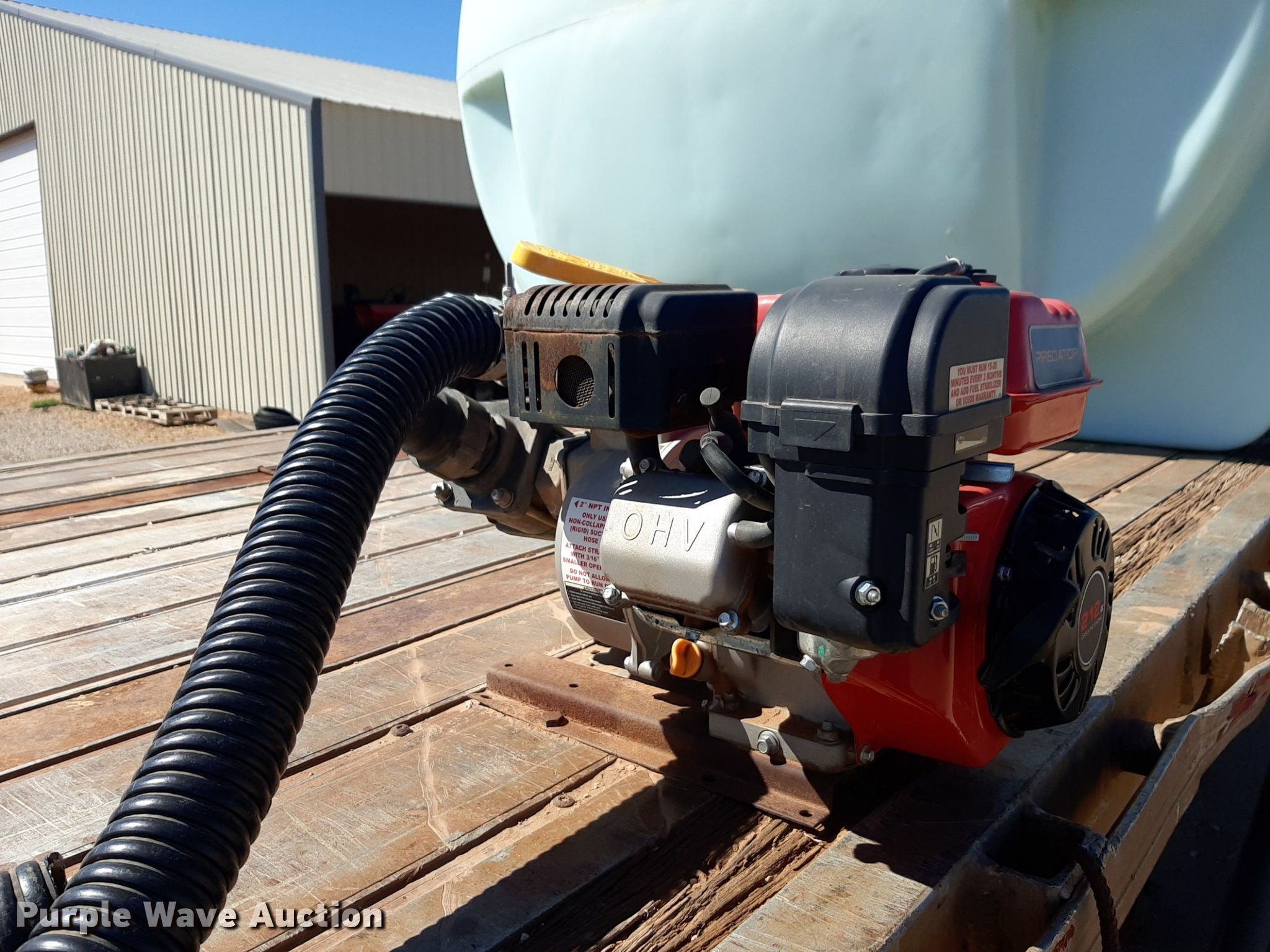 1992 Trailmobile F81T-5JA flatbed trailer. VIN: 1PTF81TR3N9002606. Dimensions Overall: 48' L x 96" W. Features Deck type: Aluminum. Chassis Landing gear: Dual, Suspension: Air, Brakes: Air, Axles: Spread. Features (3) poly tanks Capacity: 3,000 gallons, (2) 450 gallons, Engine Predator, Displacement: 212 cc, Fuel type: Gas. Tires Steel wheels, Size: 11R24.5. Transfer of ownership documentation will be a bill of sale. OKC Farms LLC. Medford, OK 73759