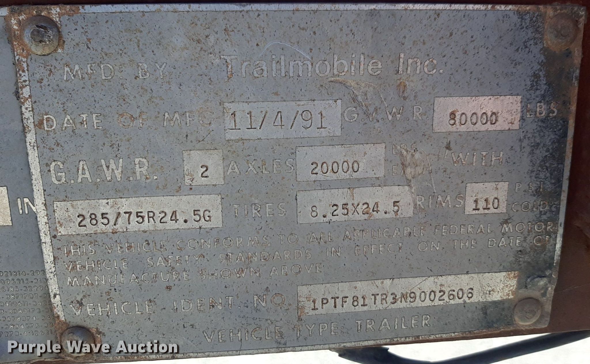 Purple Wave is selling a used Flat or Drop Deck Trailer in Oklahoma. This item is a 1992 Trailmobile F81T-5JA flatbed trailer with the following: VIN: 1PTF81TR3N9002606