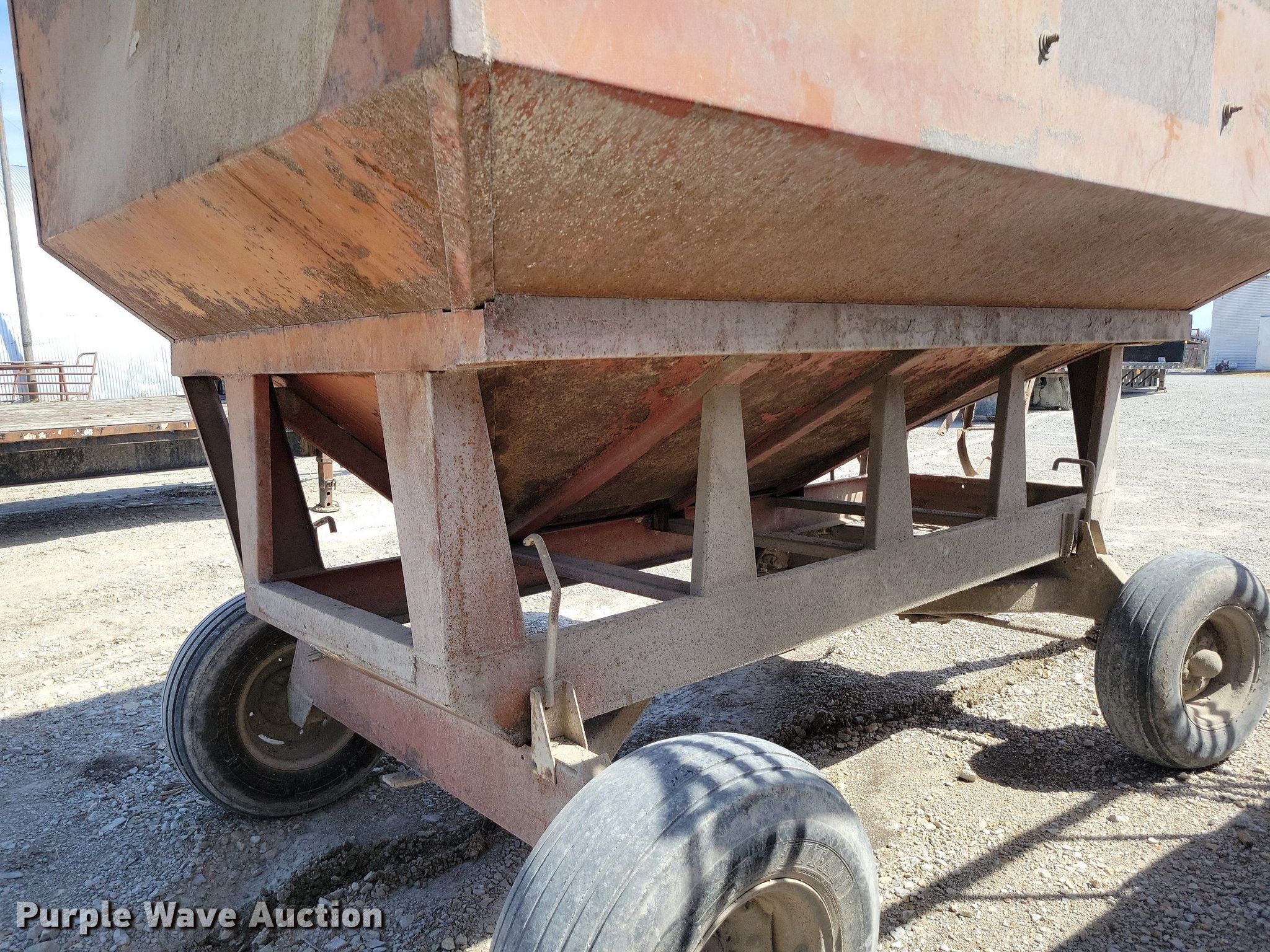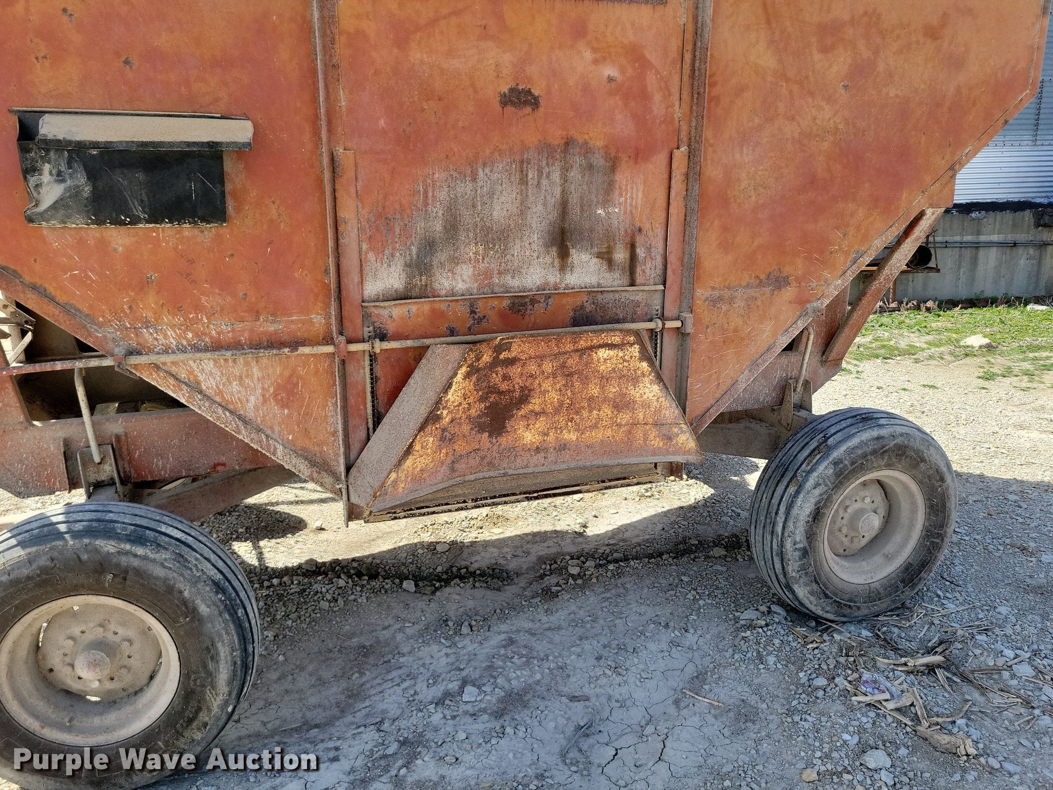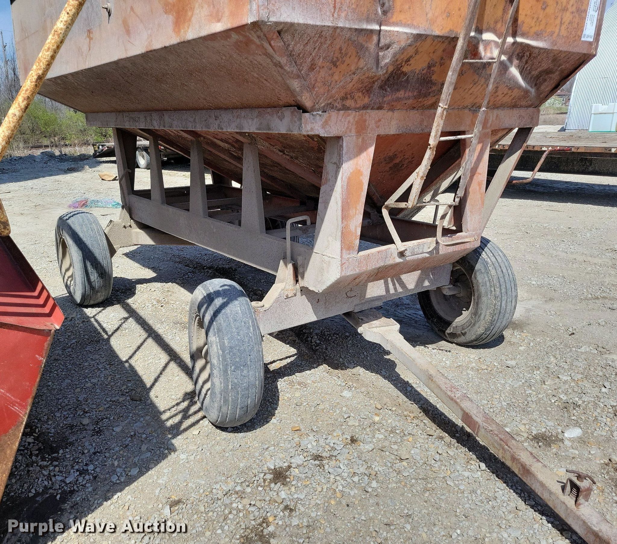 Purple Wave is selling a used Grain Cart or Gravity Wagon in Missouri. This item is a Gravity wagon with the following: Hopper: 12' L x 82" W, Tire size: 11L-15SL