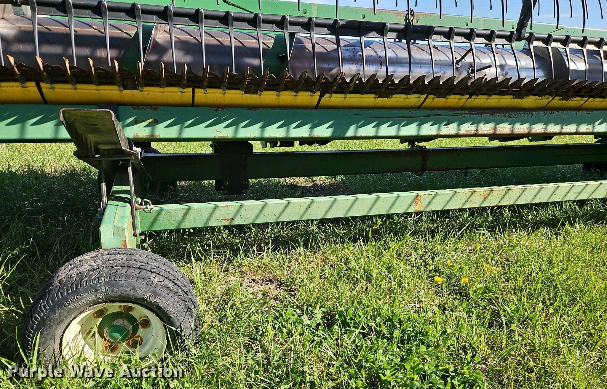 John Deere 925 flex head. Serial: H00925F661050. Features Width: 25', Reel: Finger Hydraulic fore/aft, Hydraulic reel height control, Skid plates: Poly, Drivelines: Dual. Trailer Unverferth HT25, Serial: 13111, Overall dimensions: 35' L x 10' 8" W, Head capacity: 4' 6", Tire size: 20.5x8.0-10. D Bar Cattle. 1722 SW County Rd 1067. Butler, MO 64730