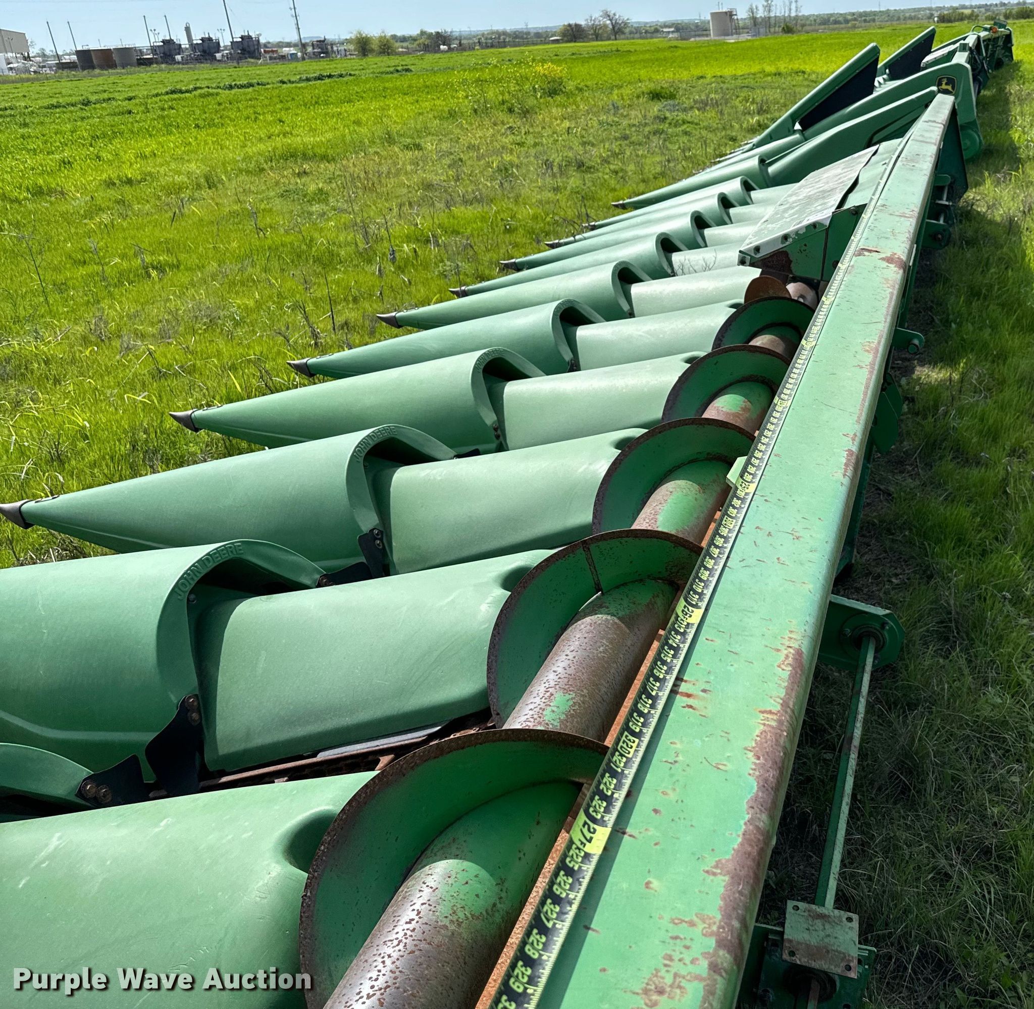 Purple Wave is selling a used Corn or Row Head in Texas. This item is a John Deere 1243 corn head with the following: Serial: H01243X630780