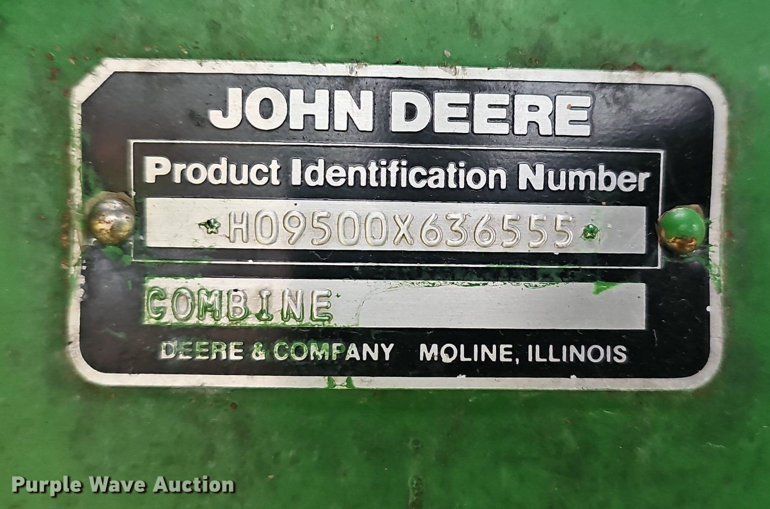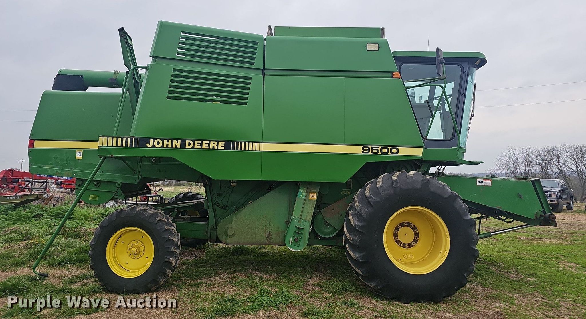 Purple Wave is selling a used Combine in Missouri. This item is a 1990 John Deere 9500 combine with the following: Engine hours: 5,289 on meter, Separator hours: 3,448 on meter, Serial: H09500X636555