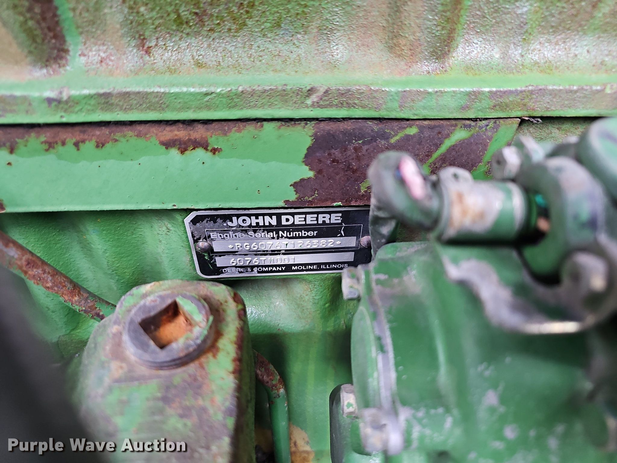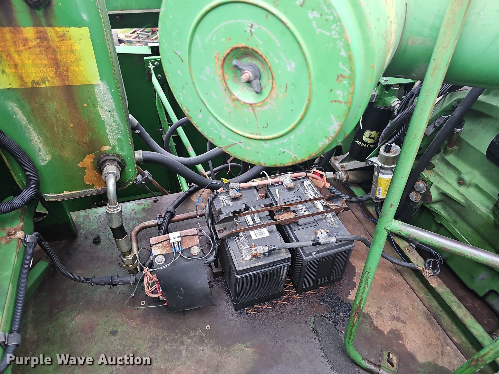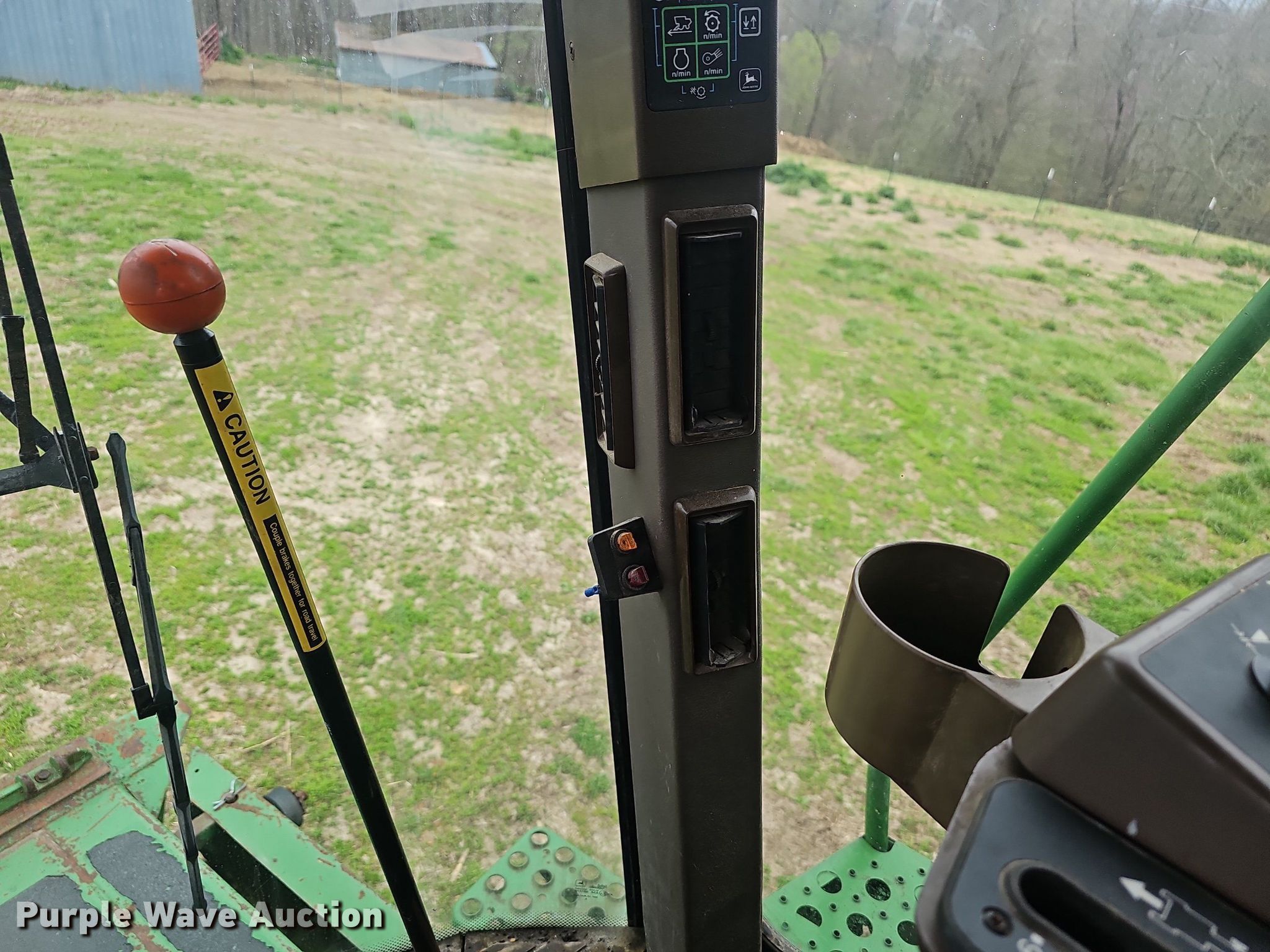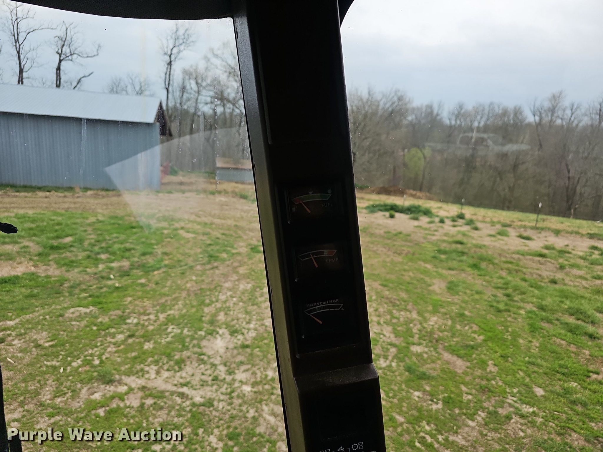 1990 John Deere 9500 combine. Engine hours: 5,289 on meter, Separator hours: 3,448 on meter, Serial: H09500X636555. Engine John Deere 6076TH001, Serial: RG6076T126382, Cylinders: 6, Fuel type: Diesel. Transmission Hydrostatic. Interior AC, Heat. Features Operator manual, Feederhouse: Variable speed, Reverser, Concaves: Round, Straw chopper, Bin: Extensions, Unloading auger length: 16' 6". Tires Front: 30.5L- 32, Rear: 14.9-24. Clever, MO 65631