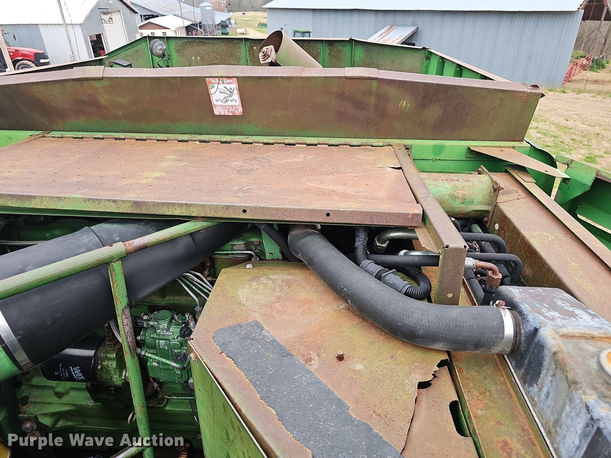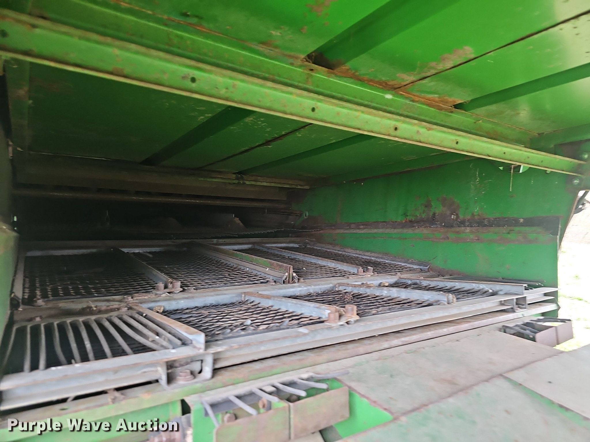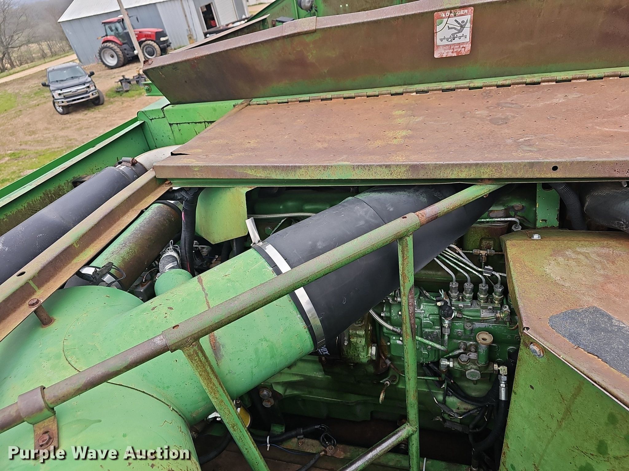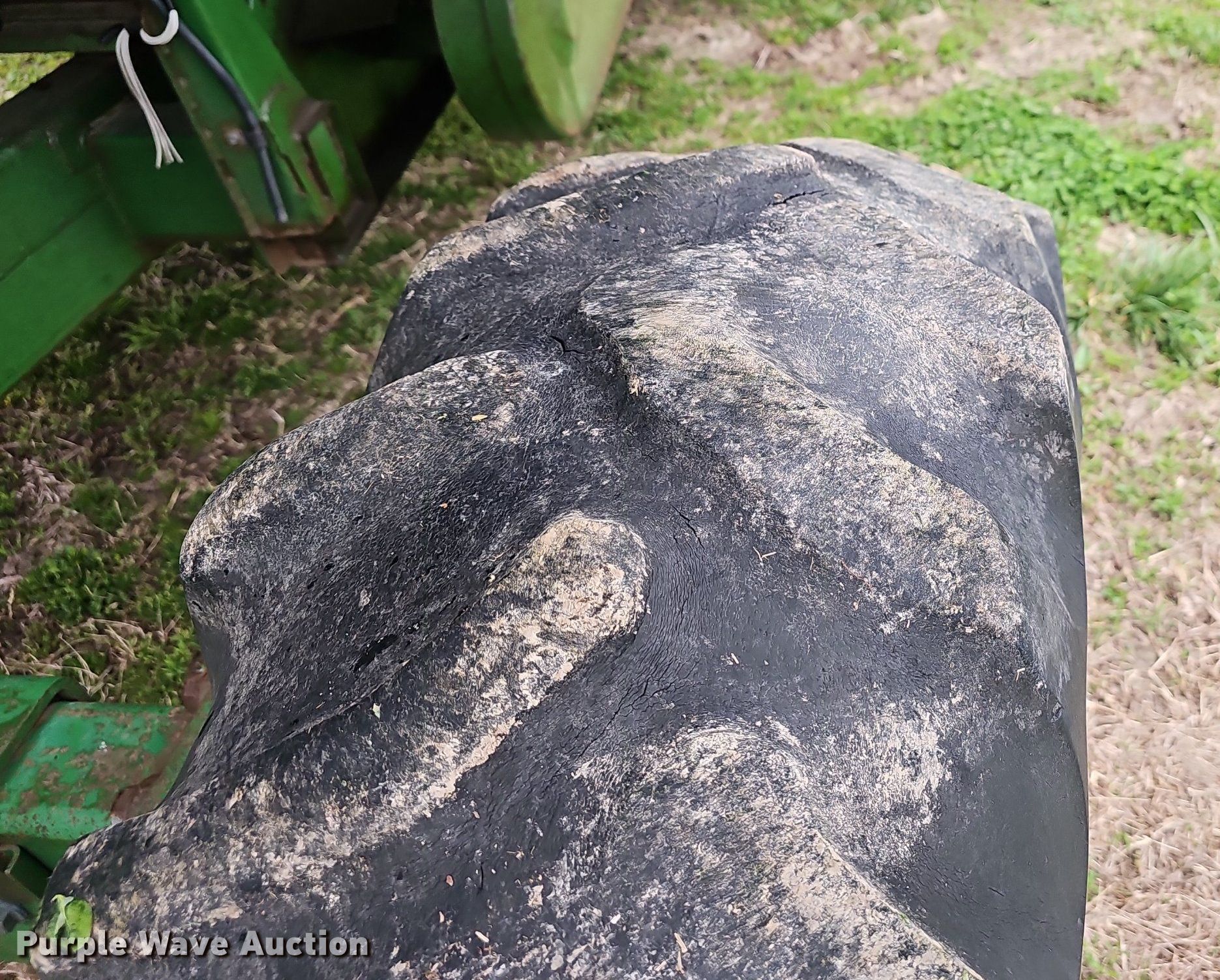 1990 John Deere 9500 combine. Engine hours: 5,289 on meter, Separator hours: 3,448 on meter, Serial: H09500X636555. Engine John Deere 6076TH001, Serial: RG6076T126382, Cylinders: 6, Fuel type: Diesel. Transmission Hydrostatic. Interior AC, Heat. Features Operator manual, Feederhouse: Variable speed, Reverser, Concaves: Round, Straw chopper, Bin: Extensions, Unloading auger length: 16' 6". Tires Front: 30.5L- 32, Rear: 14.9-24. Clever, MO 65631