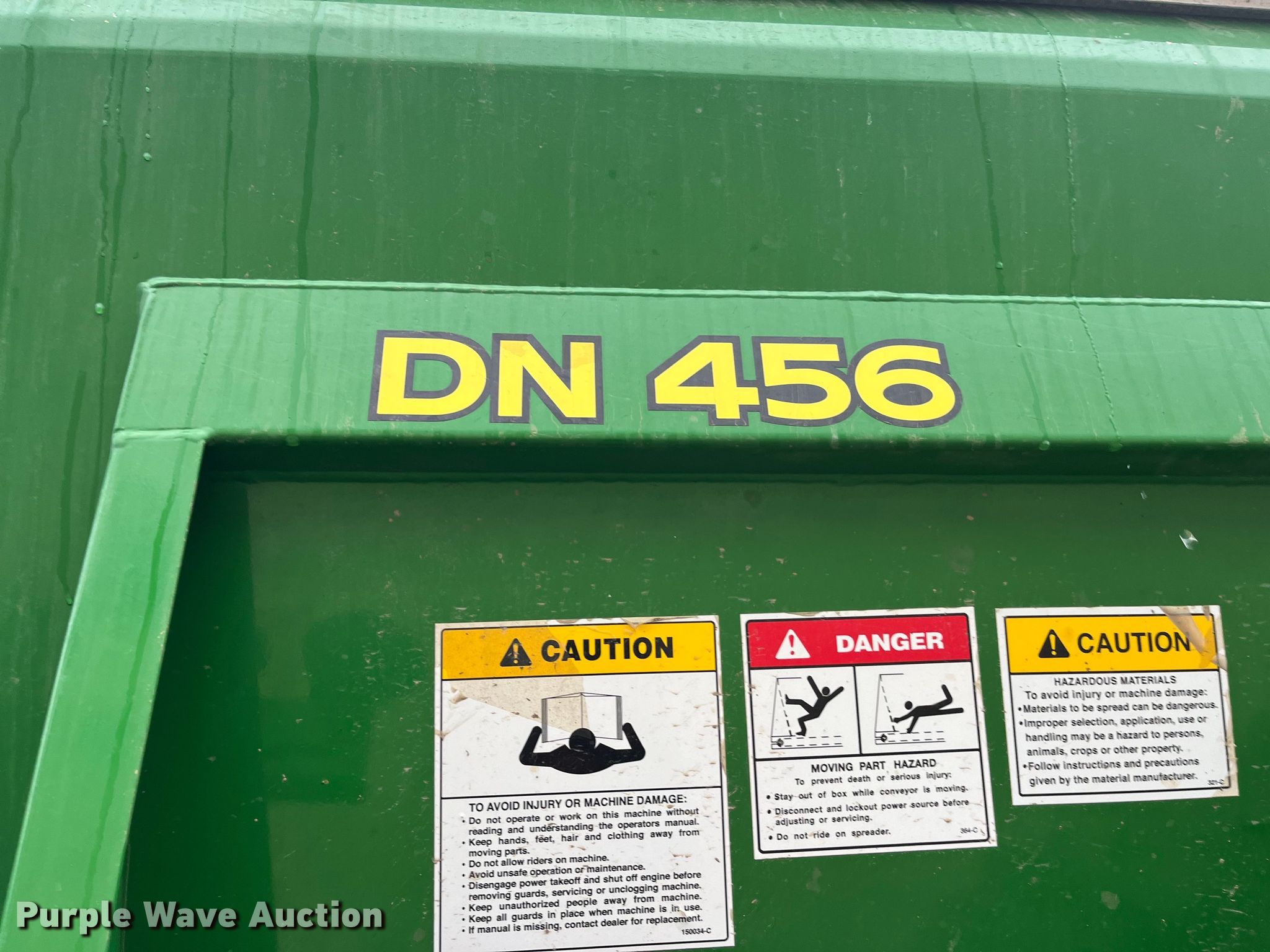 2018 John Deere R4038 spreader. Engine hours: 4,724 on meter, Serial: 1N04038RCH0184440. Engine John Deere, Cylinders: 6, Fuel type: Diesel. Transmission Hydrostatic. Chassis Hydraulic axle width adjust. Operators station AC, Heat, Rotary beacon. Features Hydraulic ladder, Dry fertilizer spreader bed New Leader DN456, Serial: 607237, Length: 11', Dual spinners, Roll tarp, Conveyor belt Width: 22", Electronics GPS monitor John Deere, Auto steer. Tires Size: 380/90R46, Row crop tires. Notes Vision row sensor not included, Rear wheel seal leak. View repairs. MFA Ag Inc.. 1805 North Missouri Street. Macon, MO 63552