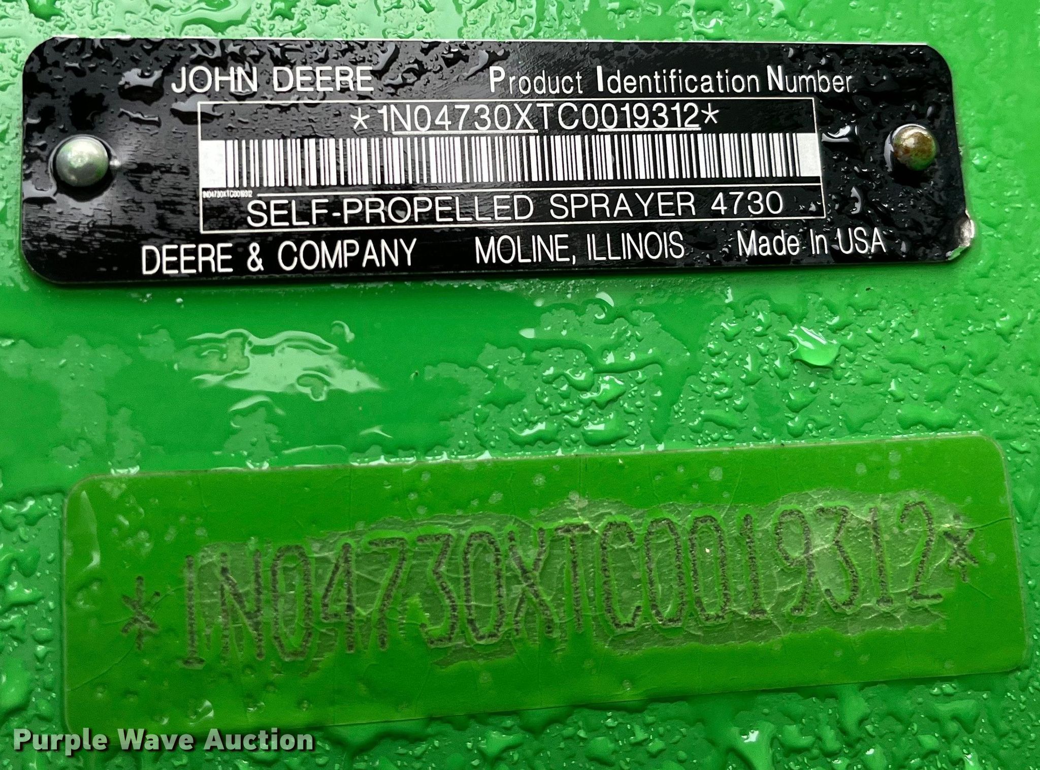 Purple Wave is selling a used Applicator Self Propelled in Missouri. This item is a 2012 John Deere 4730 sprayer with the following: Engine hours: 4,118 on meter, Serial: 1N04730XTC0019312