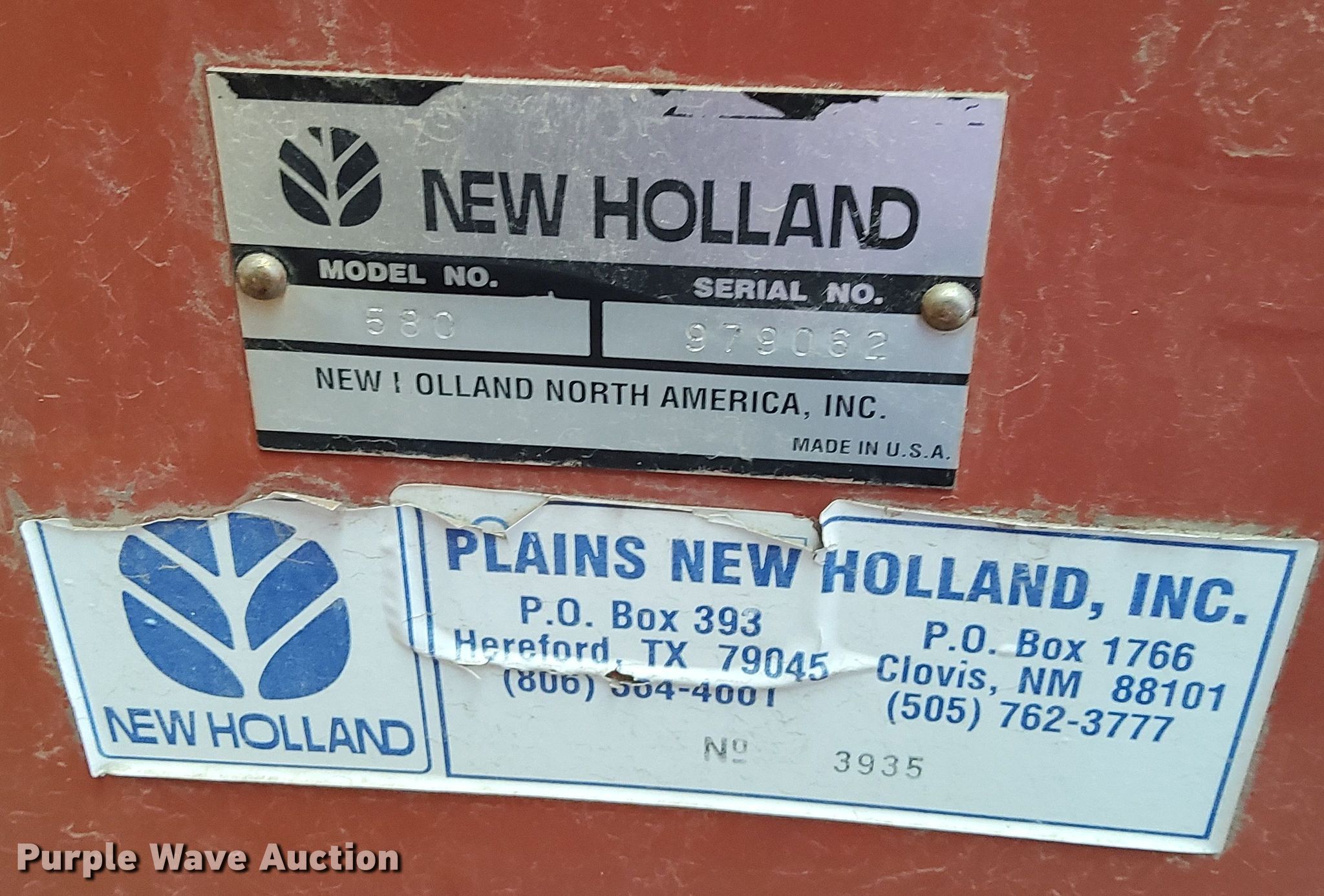Purple Wave is selling a used Round Baler in Colorado. This item is a 2000 New Holland 580 small square baler with the following: Serial: 979062