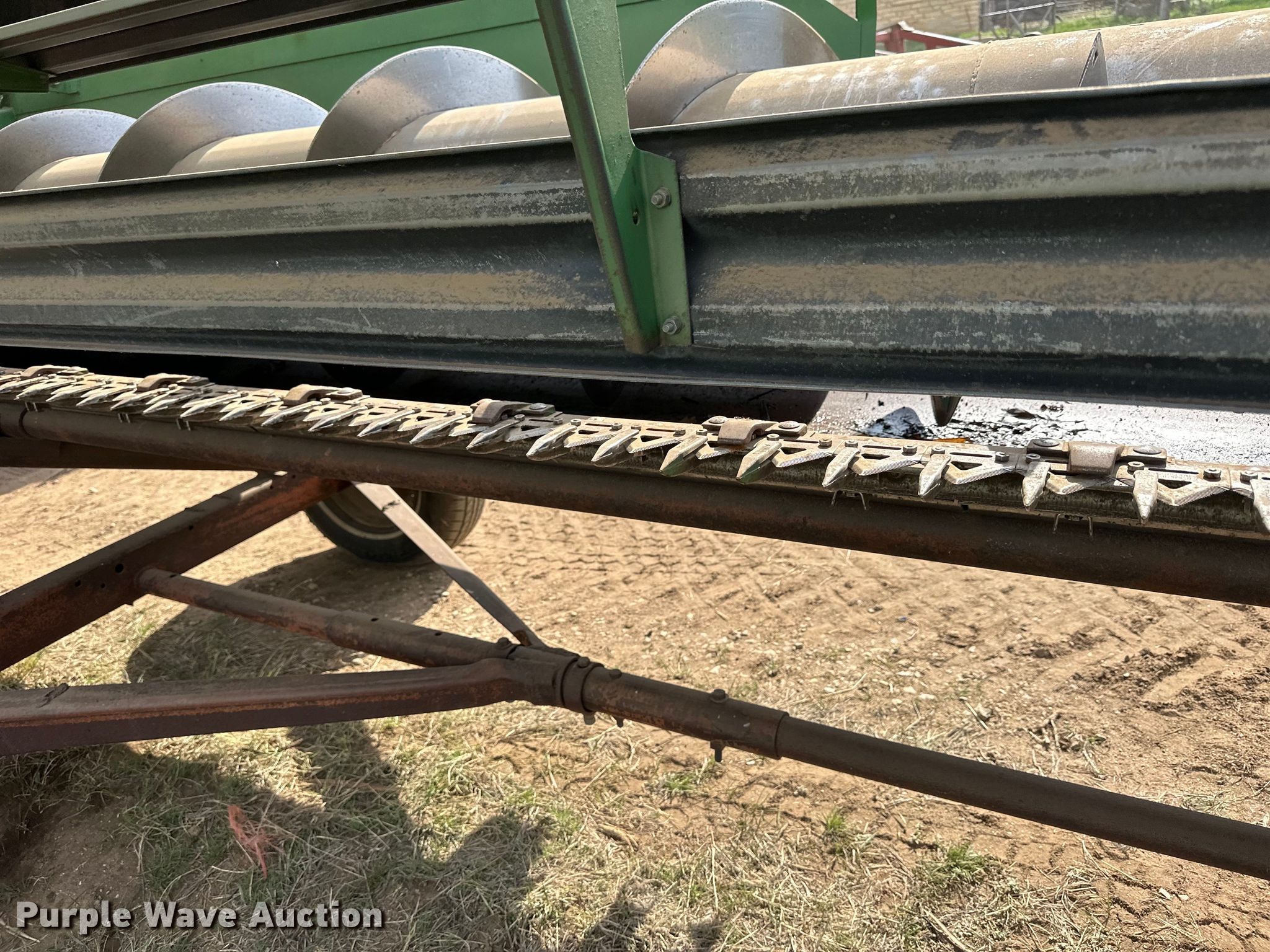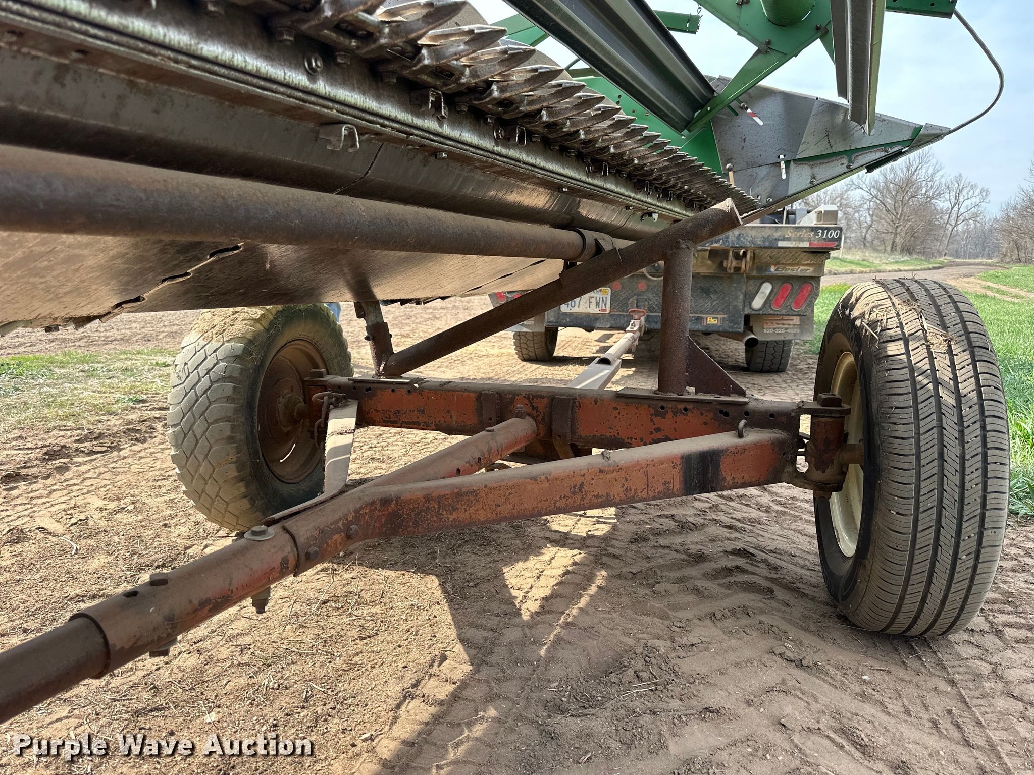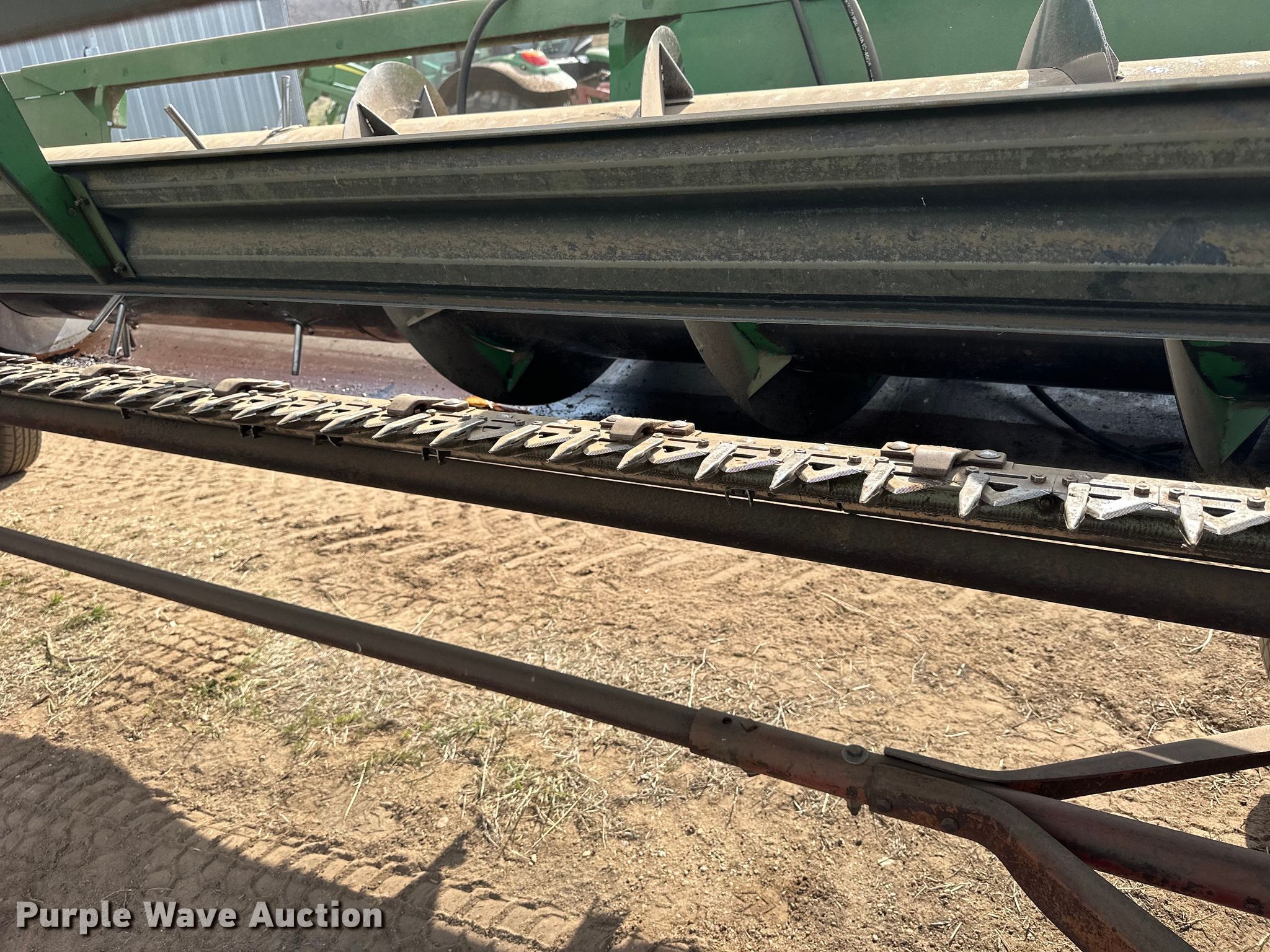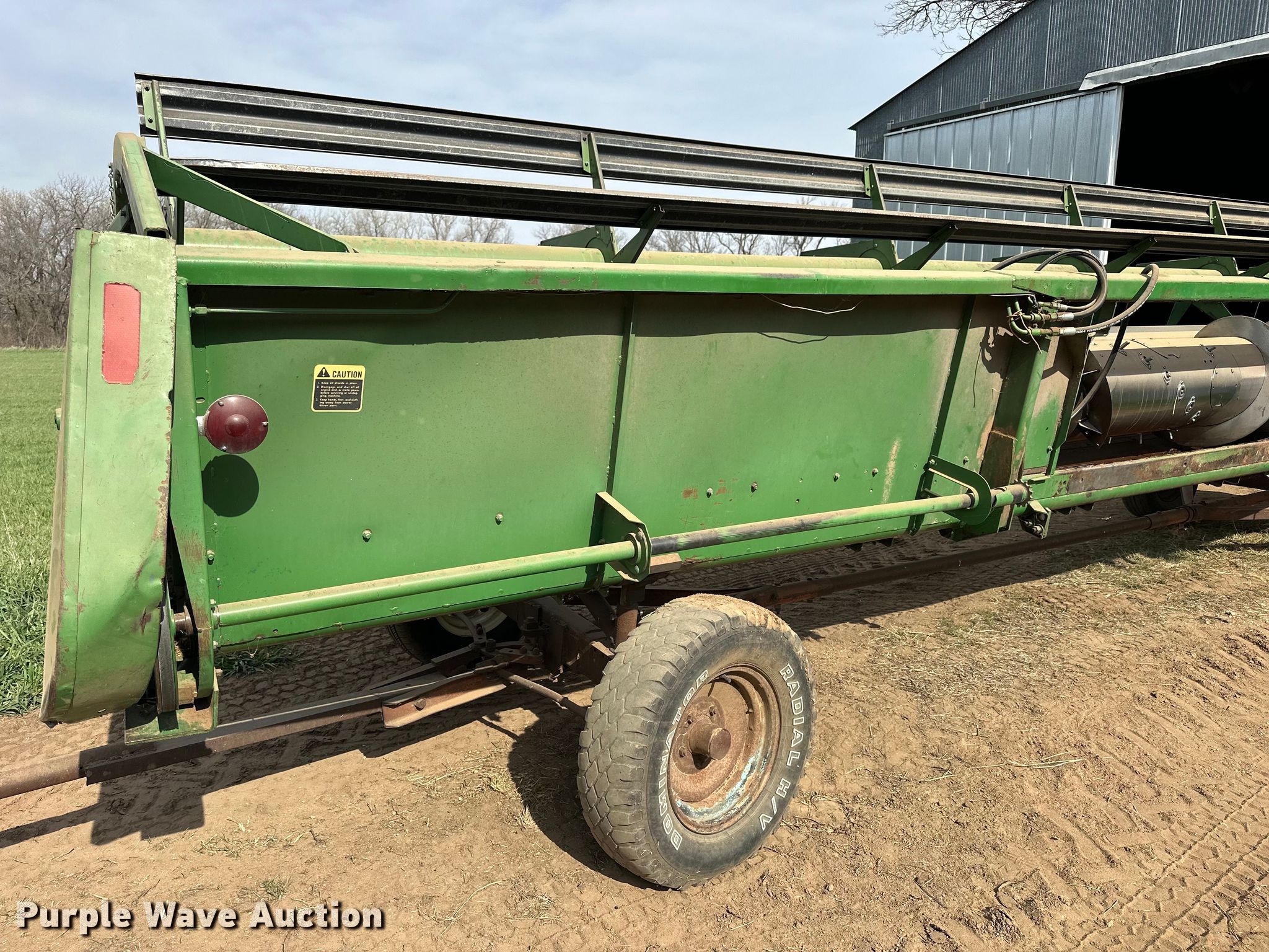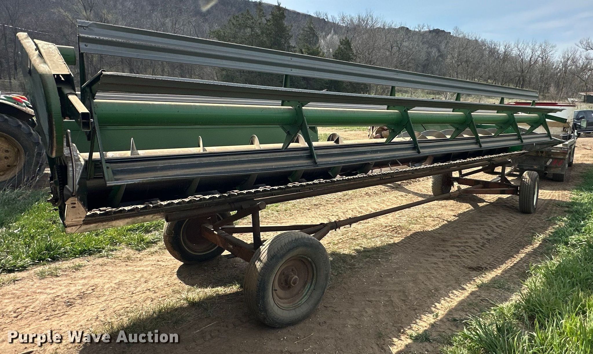 John Deere 224 rigid head. Serial: H00200X587636. Features Width: 24', Reel: Bat, Skid plates: Steel, Drivelines: Dual. Trailer 29' L x 72" W, Axles: Single, Tire size: P225/75R15. Ellsworth, KS 67439