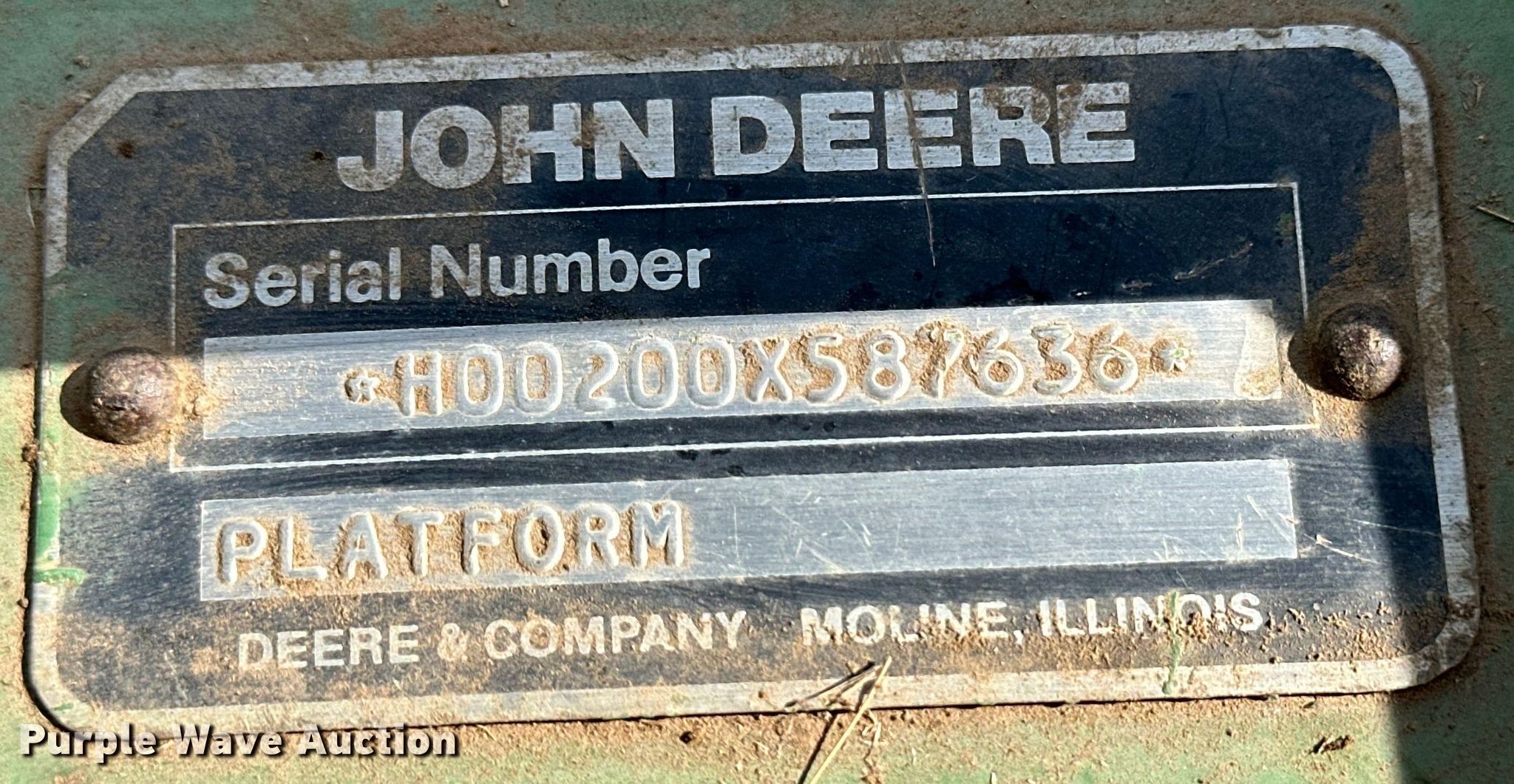 Purple Wave is selling a used Platform or Stripper Head in Kansas. This item is a John Deere 224 rigid head with the following: Serial: H00200X587636
