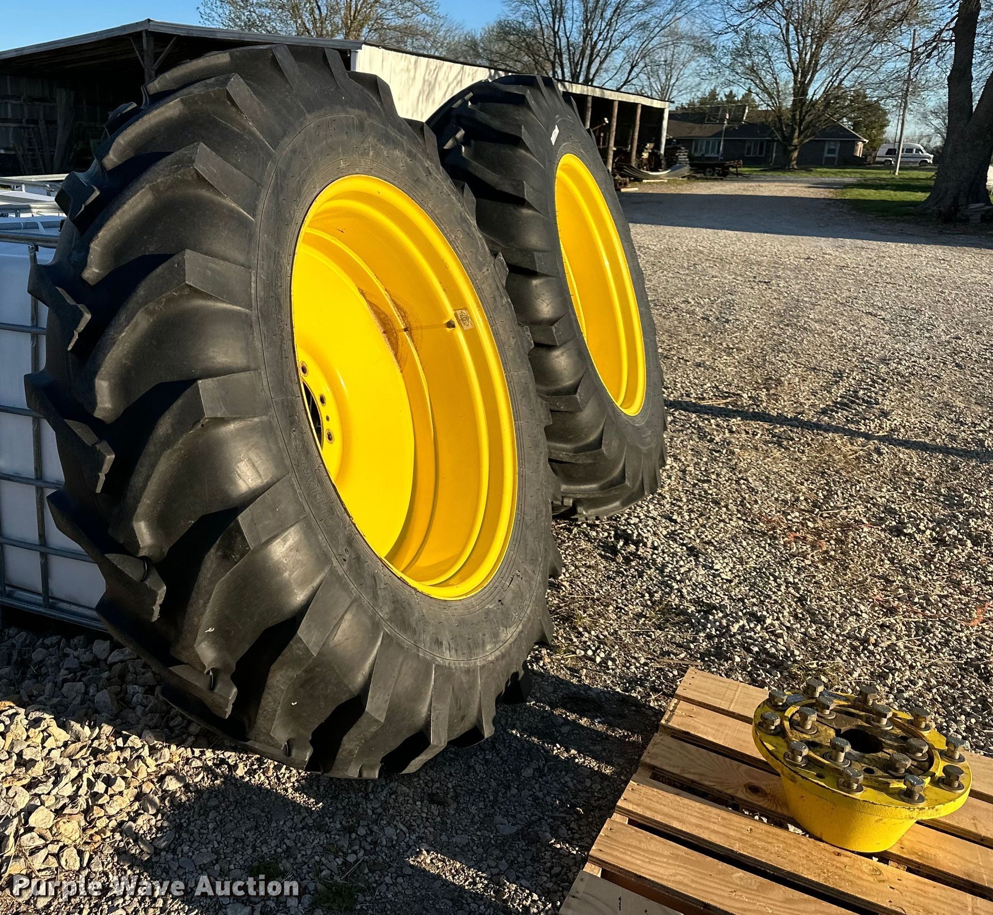 Purple Wave is selling a used Industrial Tires or Tracks in Kansas. This item is a (2) 18.4-38 dual tires and hubs with the following: Fits John Deere 4440 tractor