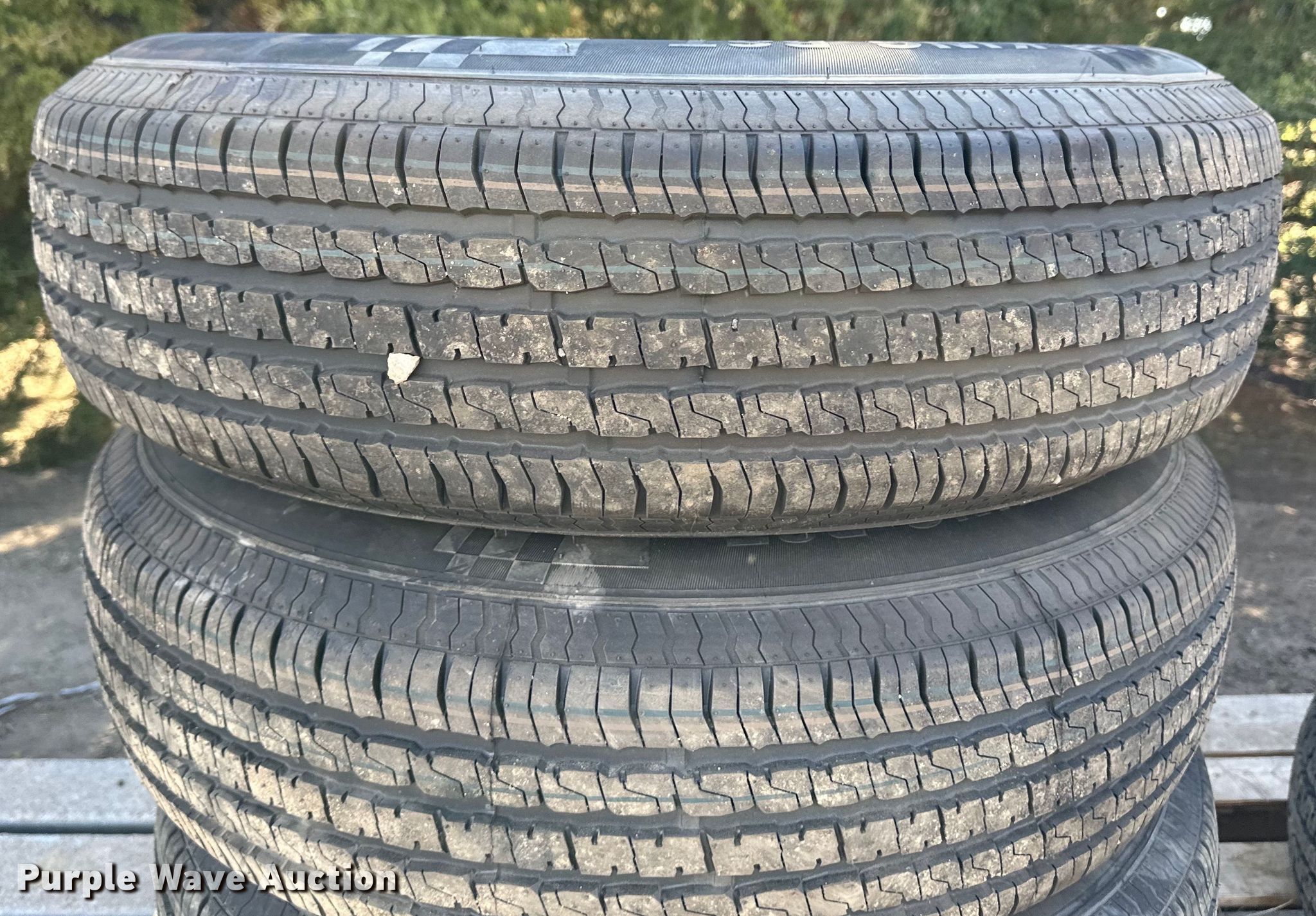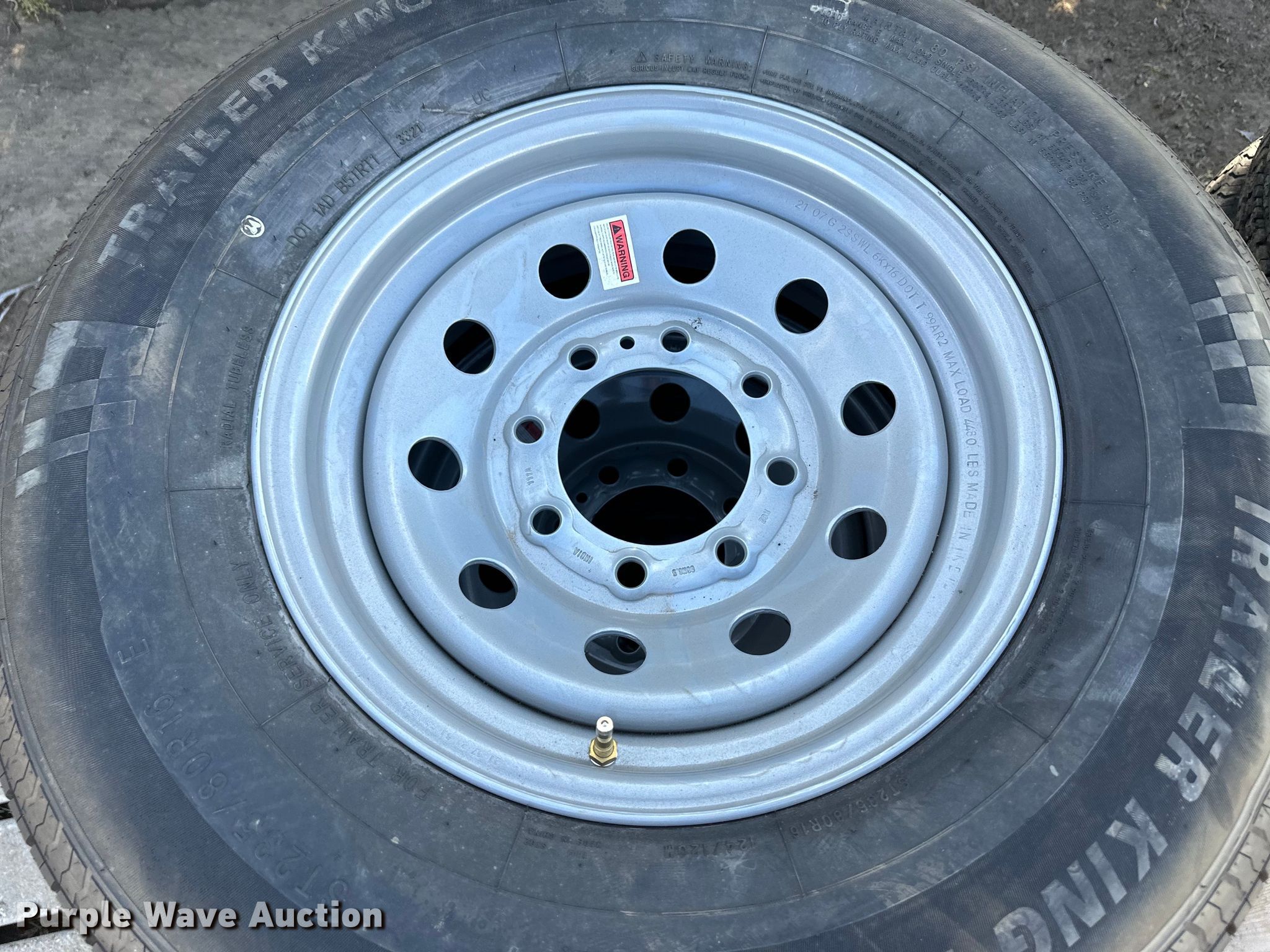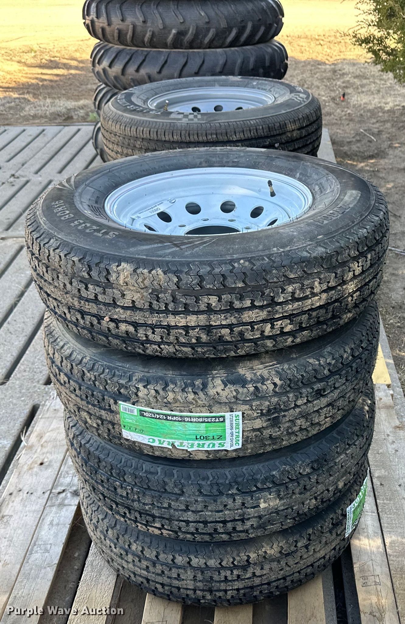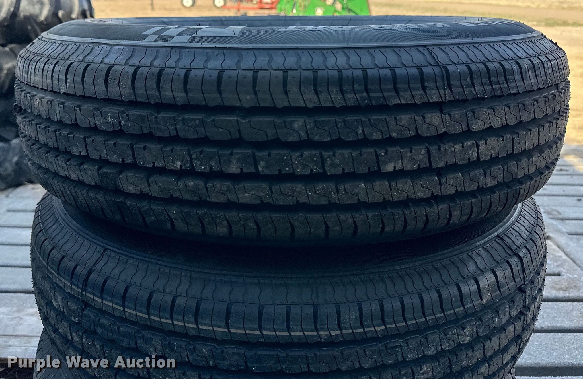 Purple Wave is selling a used Fleet Tires in Kansas. This item is a (8) trailer tires and wheels with the following: 235/80R16, Unused