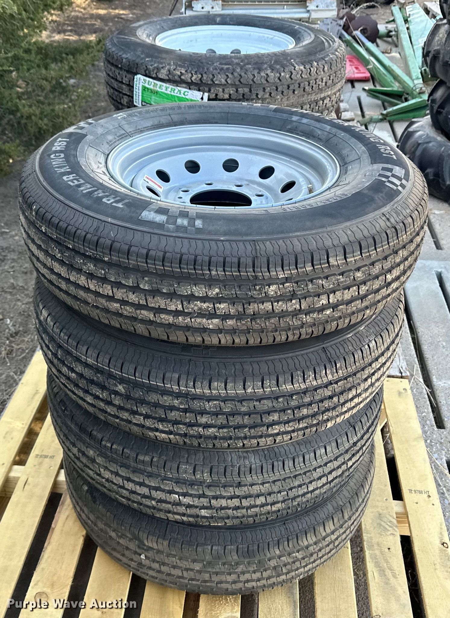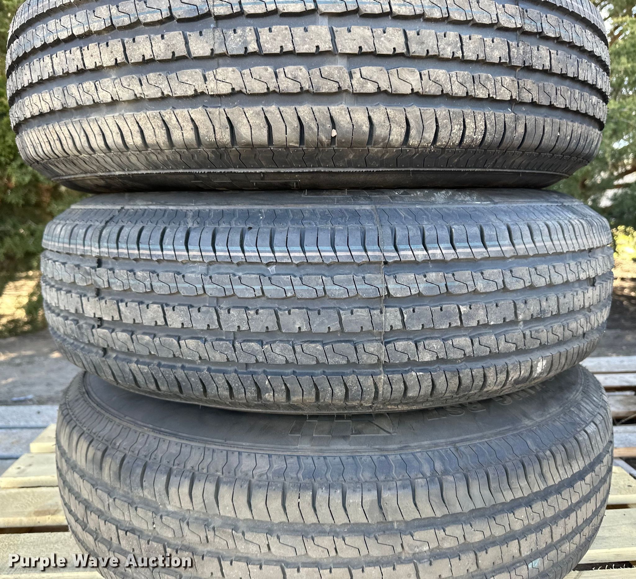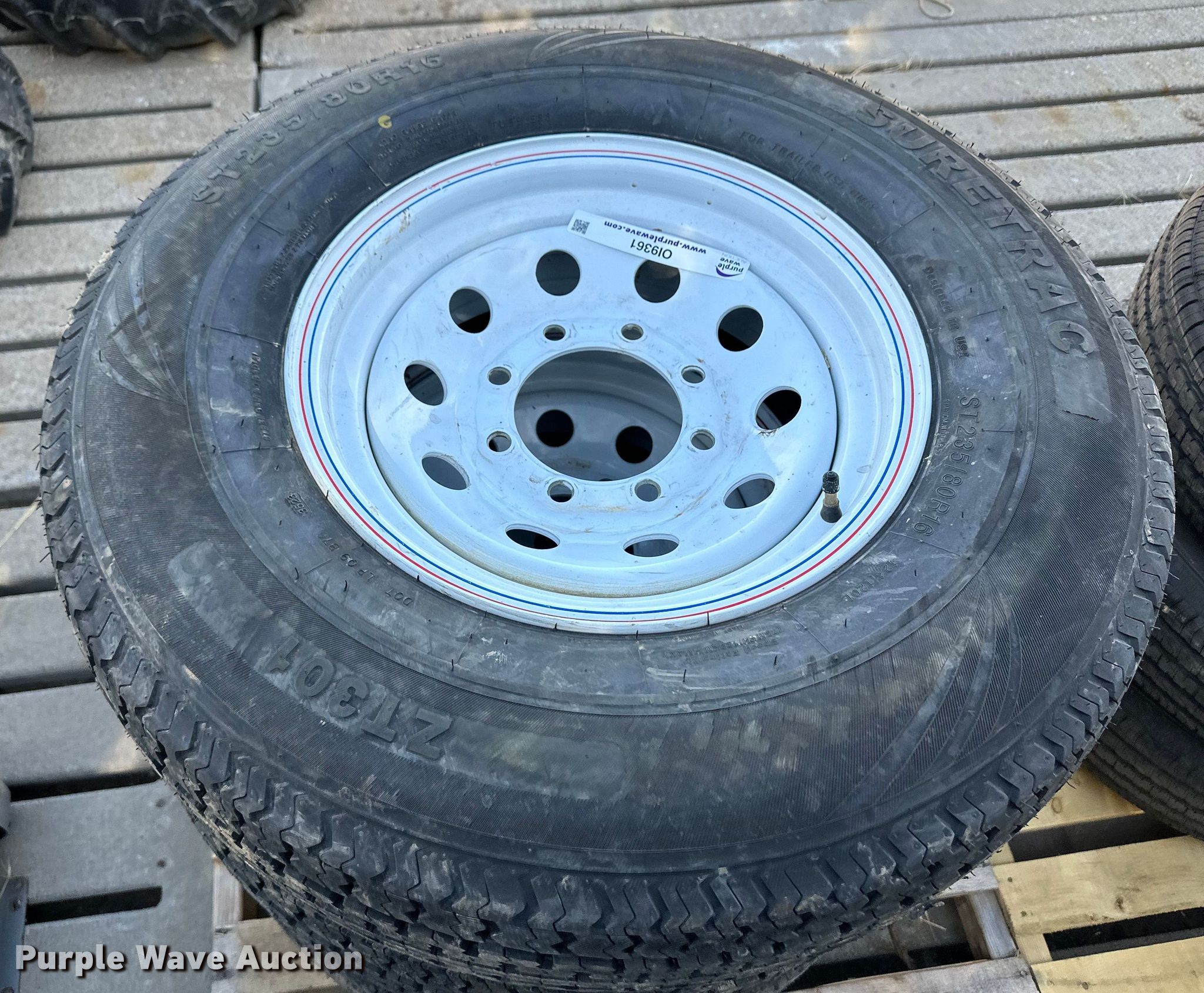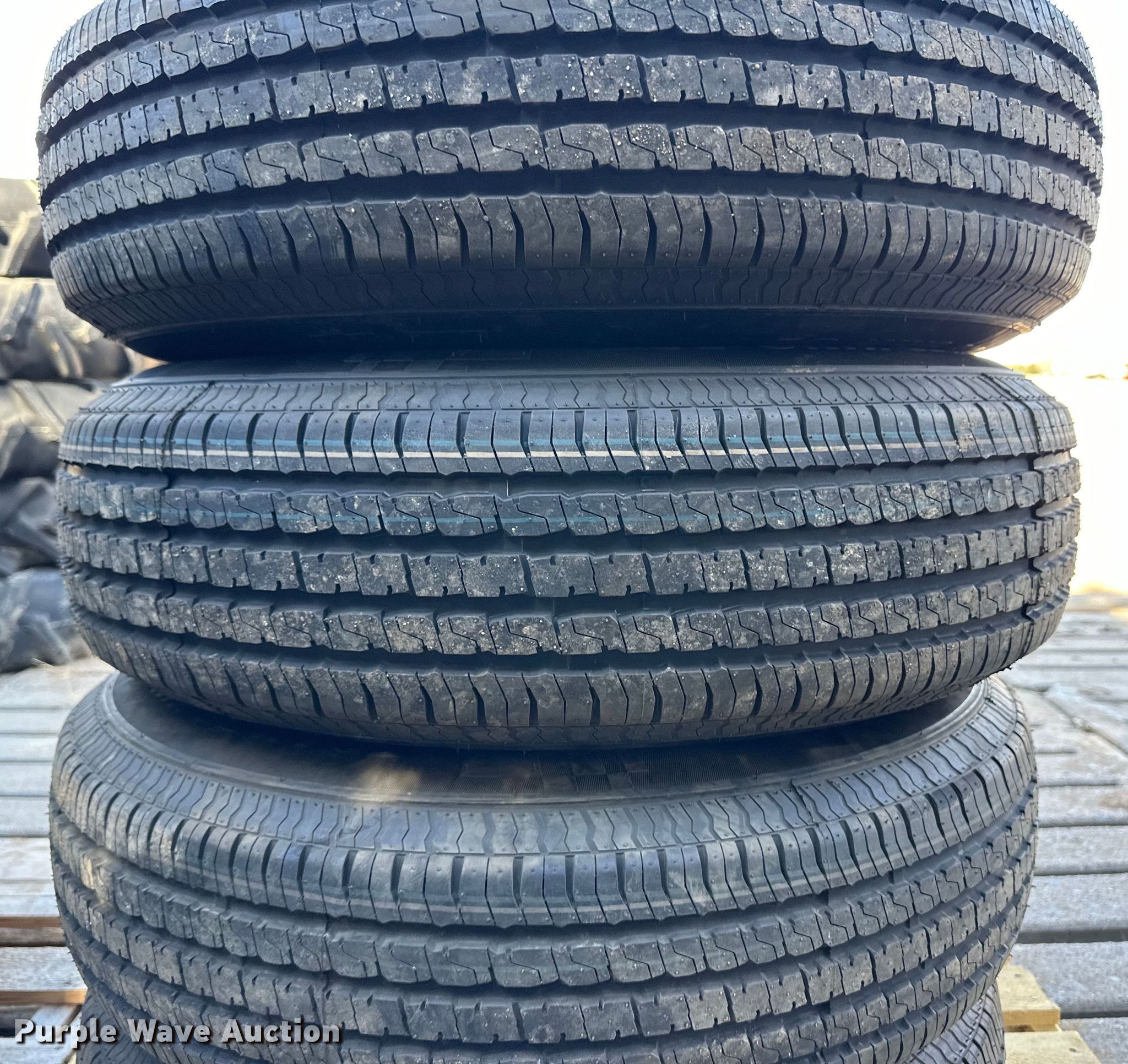 Purple Wave is selling a used Fleet Tires in Kansas. This item is a (8) trailer tires and wheels with the following: 235/80R16, Unused