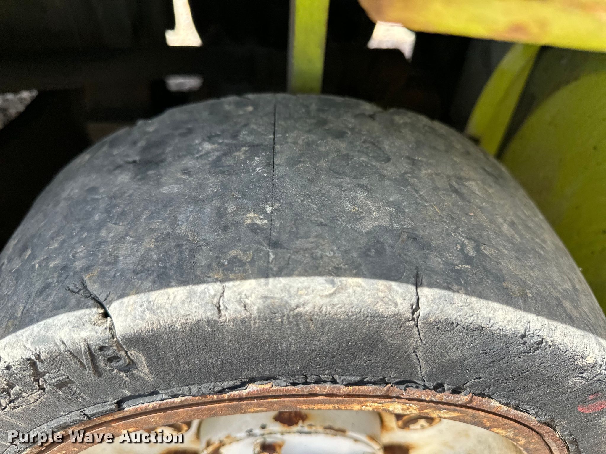 Clark C500 forklift. Hours: 4,021 on meter, Serial: 685-0036-7565K0F. Engine Cylinders: 4, Fuel type: LPG LP bottle: Not included. Transmission Powershift. Operators station Canopy. Features Maximum lift capacity: 6,825 lbs, Maximum lift height: 188", Mast stages: 3, Side shift, Mast tilt, Fork length: 48". Tires Rear: 18x8x12-1/8, Solid. Peter Teichroeb. Sublette, KS 67877
