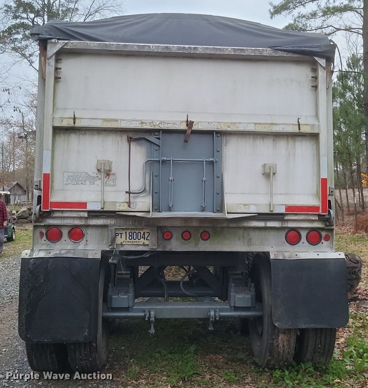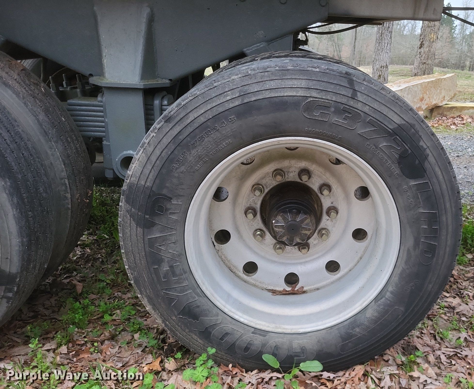 1989 Fruehauf end dump trailer. VIN: 1H5D03723KM000414. Dimensions Body: 37' L x 8' W, Side height: 53", Sideboard height: 8". Features Body type: Aluminum, Ram: Single, End gate: Air operated Grain door, Trailer controls. Chassis Landing gear: Dual, Suspension: Spring, Brakes: Air, Axles: Tandem. Tires Aluminum wheels, Steel wheels, Size: 285/75R24.5. Arkansas title. Title distribution may be delayed up to 30 days from verification of funds. Stagecoach Ent.. 3809 Stagecoach Road. Jefferson, AR 72079