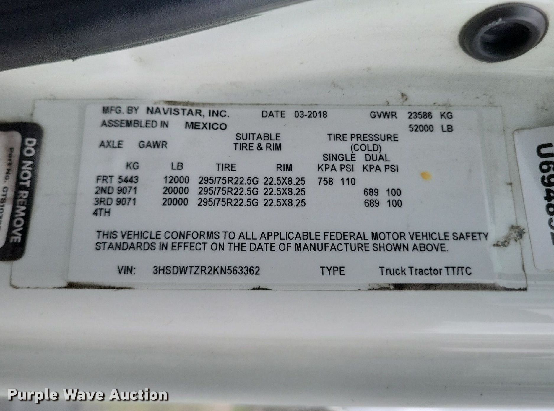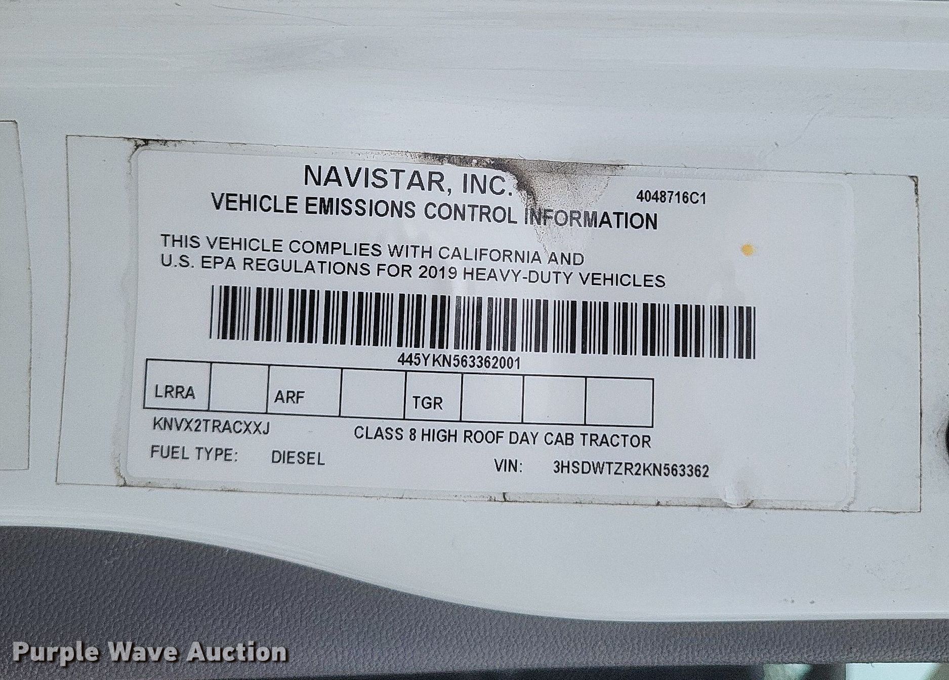 Purple Wave is selling a used Truck Tractor in Arkansas. This item is a 2019 International RH613 semi truck with the following: Miles: 387,161 on odometer, VIN: 3HSDWTZR2KN563362