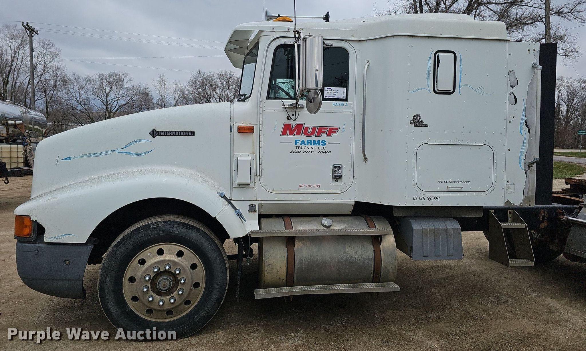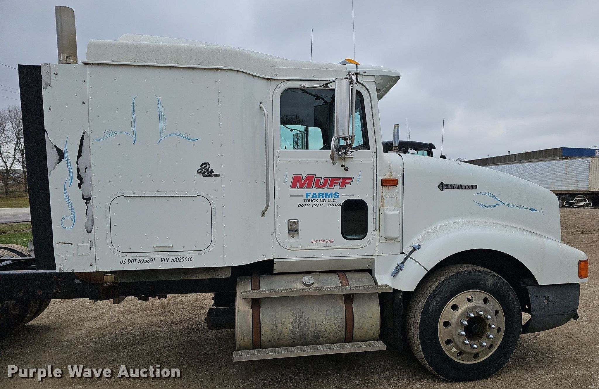 1997 International 9400 semi truck. Miles: 779,091 on odometer, VIN: 2HSFHAER9VC025616. Engine Cummins N14 Plus, Displacement: 14.0L, Cylinders: 6, Fuel type: Diesel. Transmission Eaton Fuller, Manual, Speed: 9. Chassis Axles: Tandem, Differential lock: Inter-axle, Suspension: Air Dump valves, Brakes: Air, GVWR: 52,000 lbs FAWR: 12,000 lbs, IAWR: 20,000 lbs, RAWR: 20,000 lbs, Wheelbase: 220". Interior Heat, Heated mirrors, Cruise control, Sleeper Pro Sleeper, Sleeper length: 48", Beds: Single, Rear climate control. Features Fifth wheel type: Air operated, Sliding, Fuel tank: Dual. Tires Front: 275/80R24.55, Rear: 285/75R24.5. Notes Dash warning indicator: Check engine, Windshield chipped or cracked. Iowa title. Title distribution may be delayed up to 14 days from verification of funds. Muff Farms Trucking. Denison, IA 51442