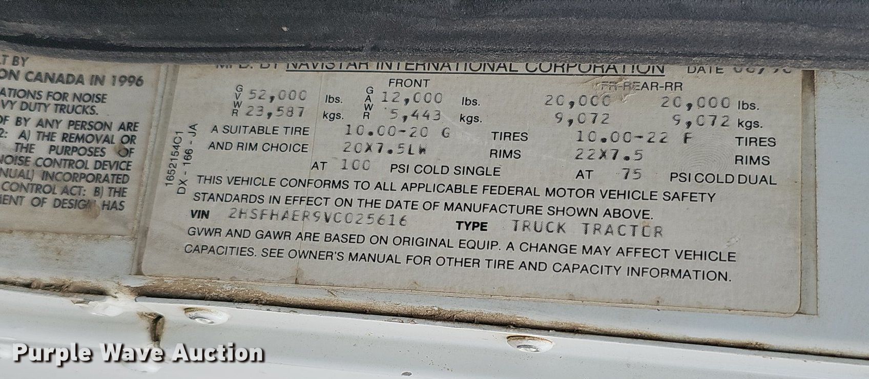 Purple Wave is selling a used Truck Tractor in Iowa. This item is a 1997 International 9400 semi truck with the following: Miles: 779,091 on odometer, VIN: 2HSFHAER9VC025616