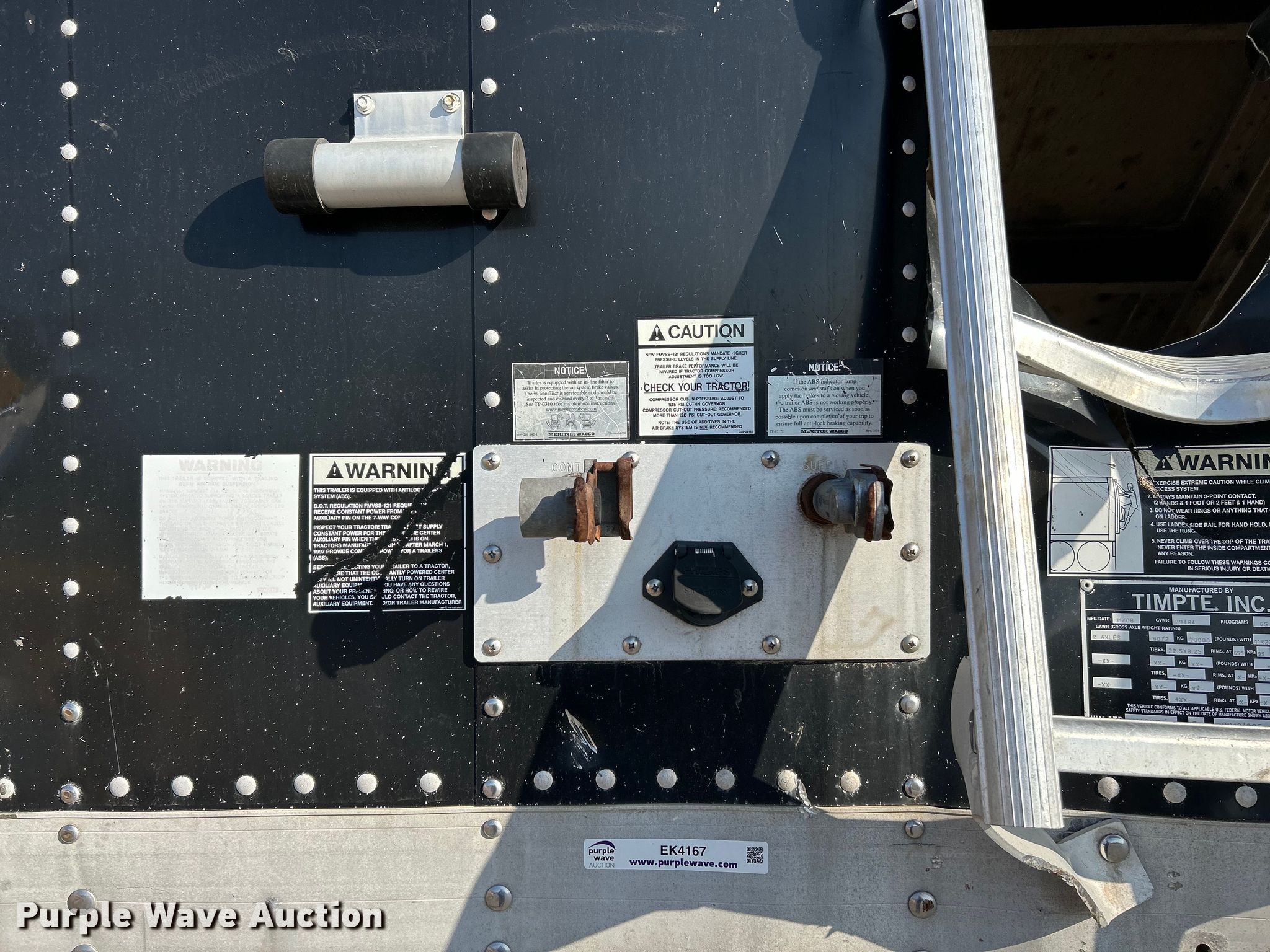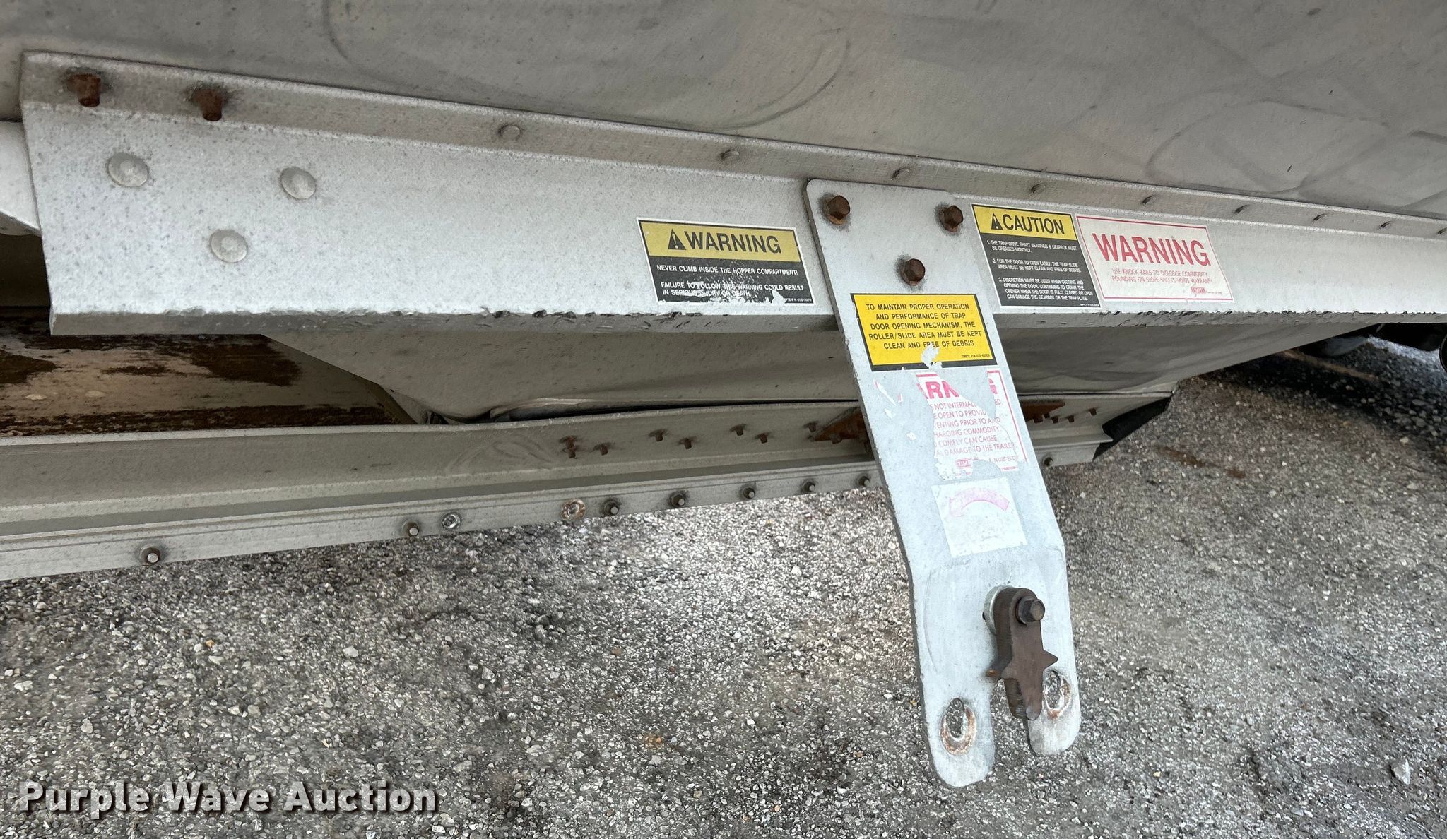 2009 Timpte grain trailer. VIN: 1TDH422259B121285. Dimensions Overall: 42'L x 96" W. Features Body type: Aluminum, Hoppers: Double Trap gates: Manual. Chassis Landing gear: Dual, Suspension: Air, Brakes: Air, Axles: Tandem, GVWR: 65,000 lbs, GAWR: 20,000 lbs. Tires Aluminum wheels, Size: 445/50R22.5. Notes Unit must be hauled, Fifth wheel missing, Non-operational gates, missing parts. Missouri title. Title distribution may be delayed up to 14 days from verification of funds. Fuel Carriers Inc. Retirement. St. Charles, MO 63301