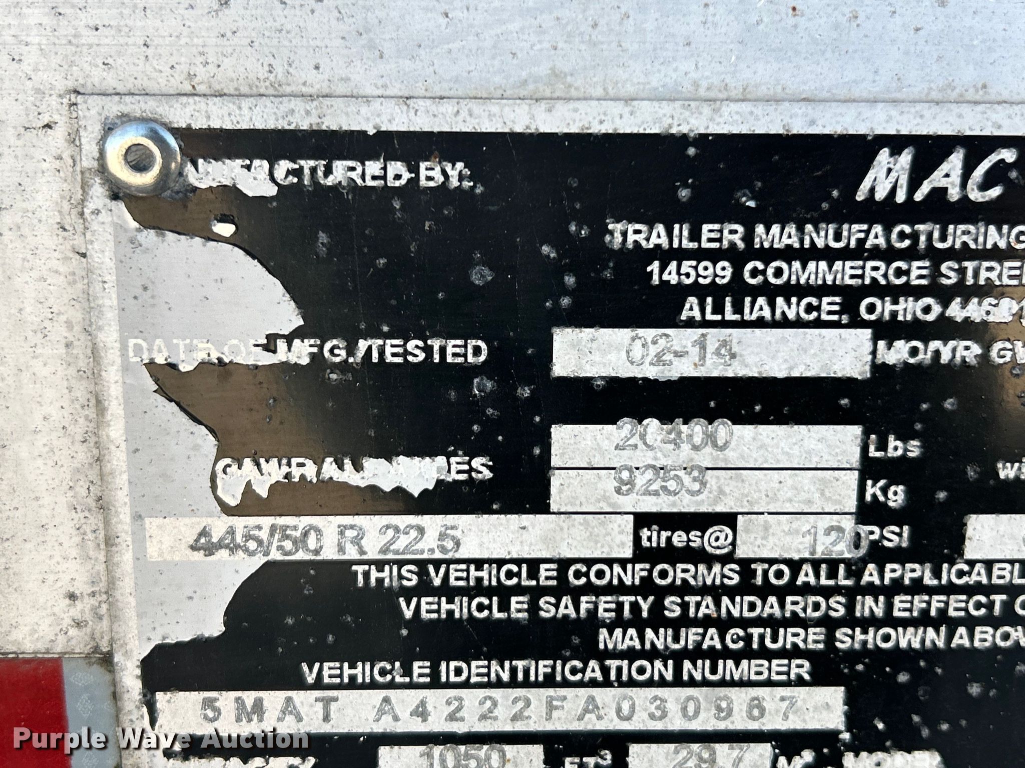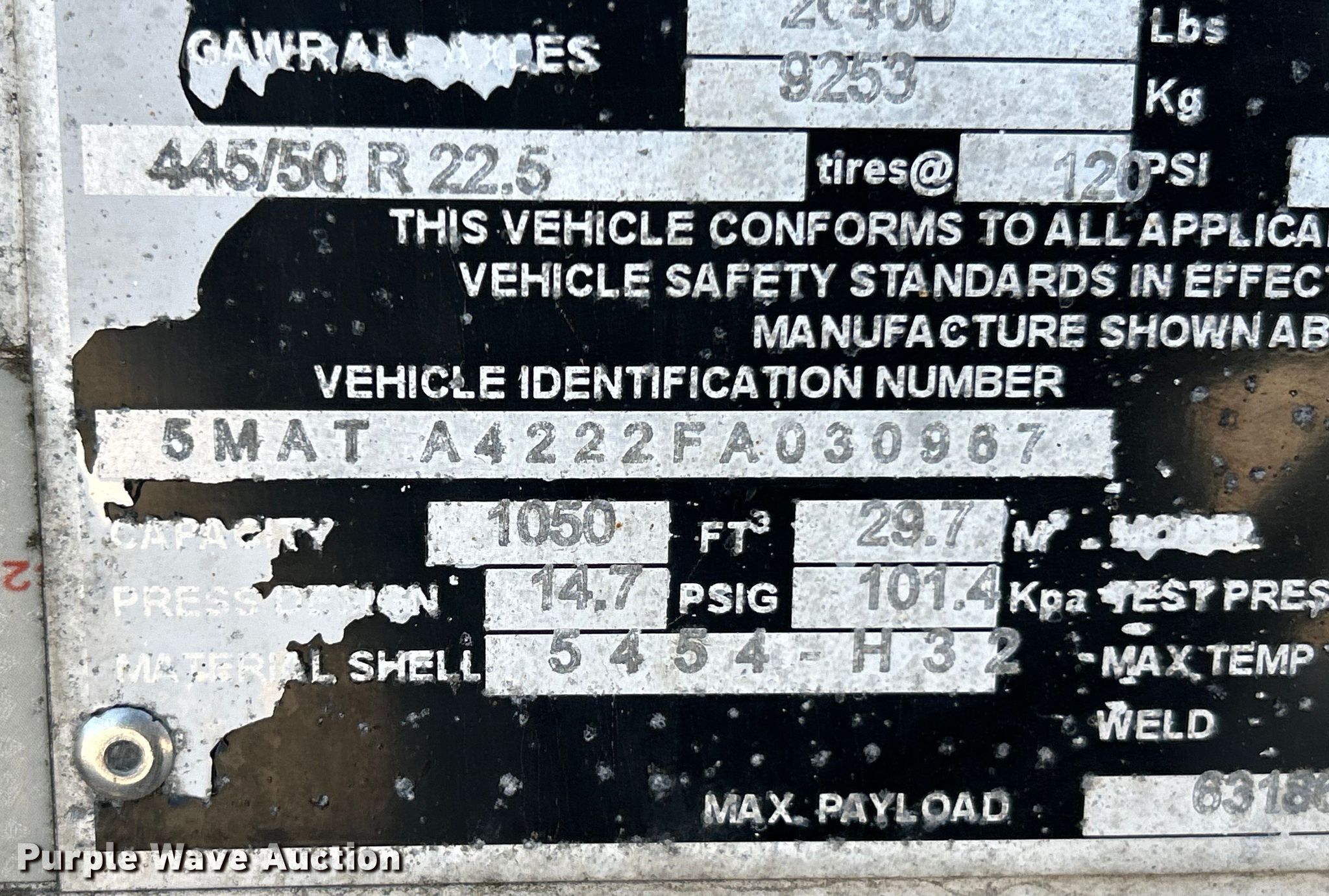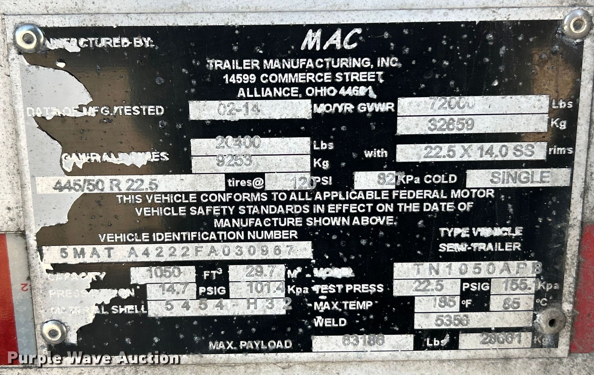 Purple Wave is selling a used Tank Trailer in Missouri. This item is a 2015 Mac tank trailer with the following: VIN: 5MATA4222FA030967