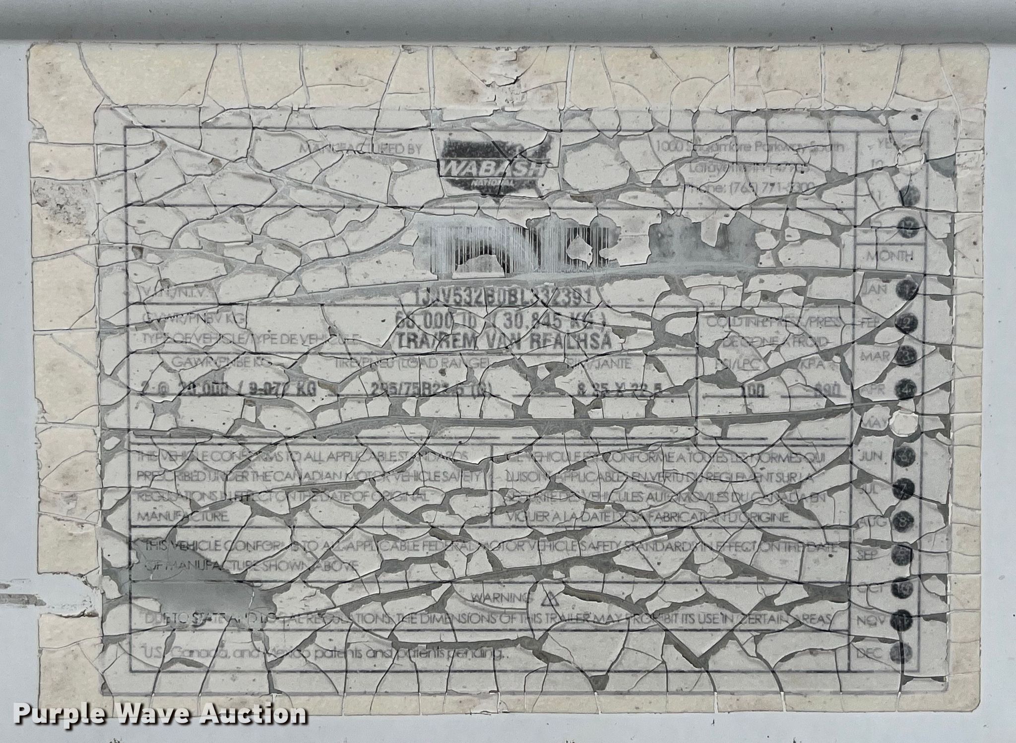Purple Wave is selling a used Refrigerated Van Trailer in Missouri. This item is a 2011 Wabash RFALHSA refrigerated van trailer with the following: VIN: 1JJV532B0BL332391, Unit #: R1132