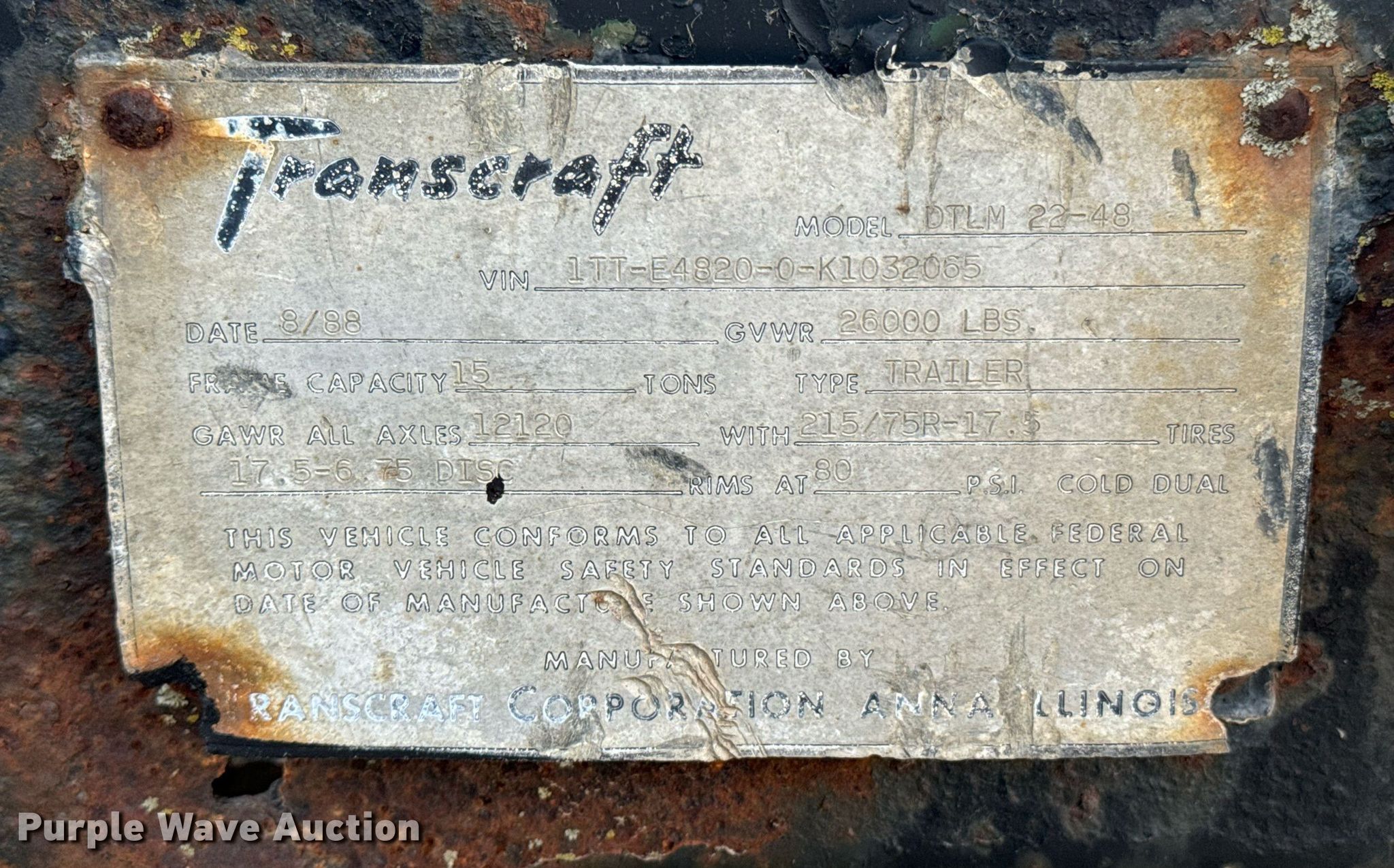 Purple Wave is selling a used Flat or Drop Deck Trailer in Kansas. This item is a 1989 Transcraft DTLM 22-48 drop deck trailer with the following: VIN: 1TTE48200K1032065