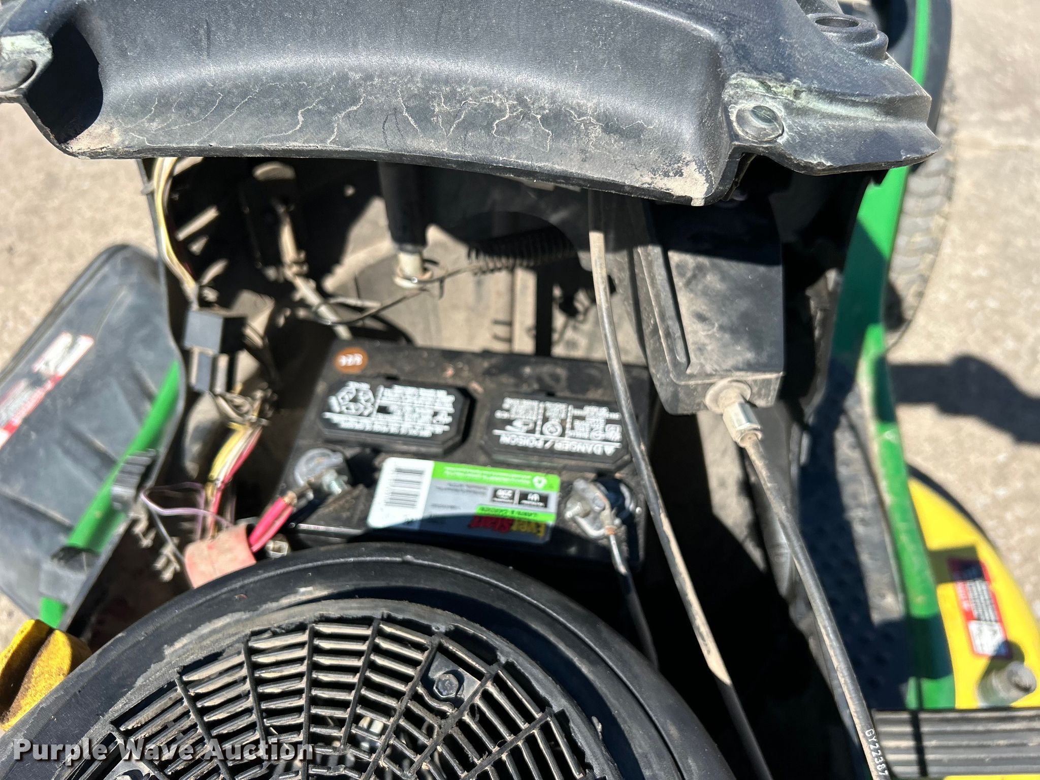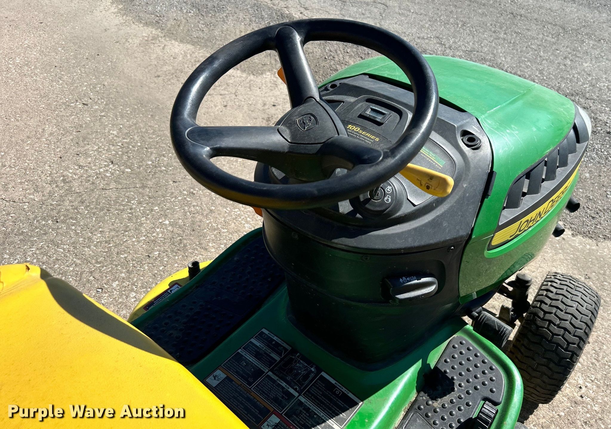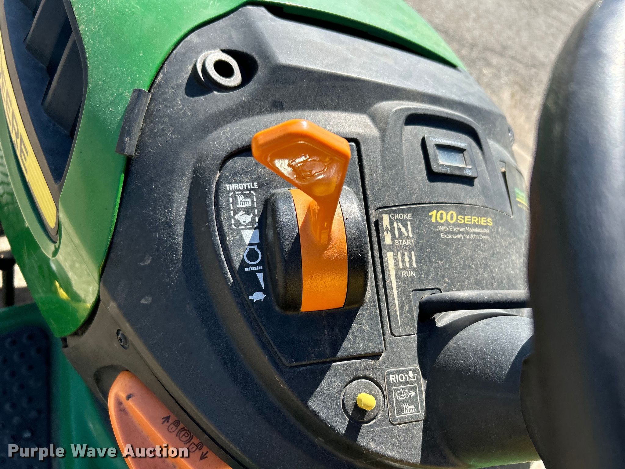 Purple Wave is selling a used Lawn Mower in Oklahoma. This item is a 2015 John Deere D130 lawn mower with the following: Hours: 65 on meter, Cutting width: 42", Serial: 1GXD130ETFG703165