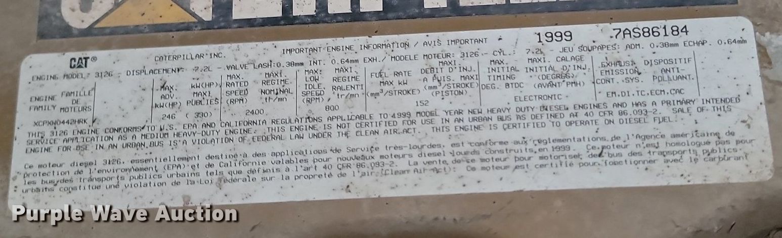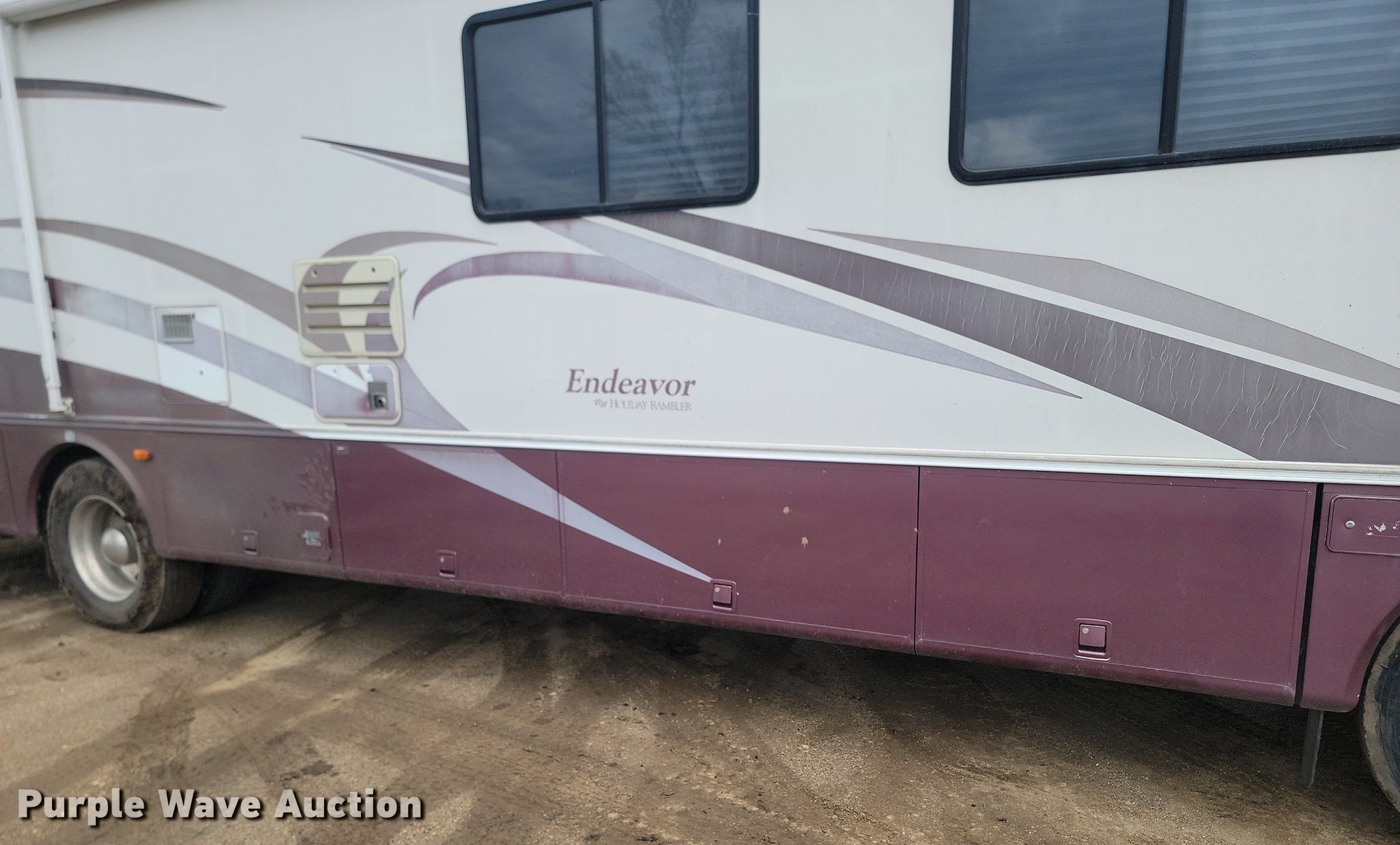 2000 Holiday Rambler Endeavor RV. Miles: 102,962 on odometer, VIN: 4UZ6XJCA7YCG42319. Engine Caterpillar 3126, Displacement: 7.2L, Cylinders: 6, Fuel type: Diesel. Transmission Automatic. Chassis Axles: Single, Suspension: Spring, Brakes: Air, GVWR: 27,410 lbs. Interior Kitchen: Sink, Refrigerator, Freezer, Microwave, Stove: Propane, Living room: Table, Couch, Bathroom, Bed type: Queen, Heater, AC units: 2. Features Slide outs: 1, Awnings: 5 Awning type: Manual, Generator. Tires Size: 295/75R22.5. Notes Windshield chipped or cracked, Rodent damage, Water damage, Floor damage Soft. South Dakota title. Title distribution may be delayed up to 14 days from verification of funds. 11133 369th Avenue. Leola, SD 57456
