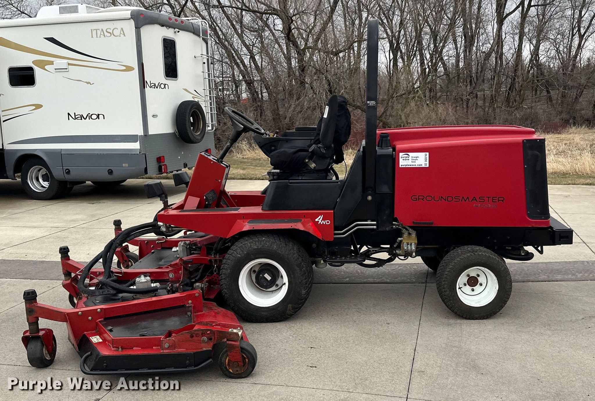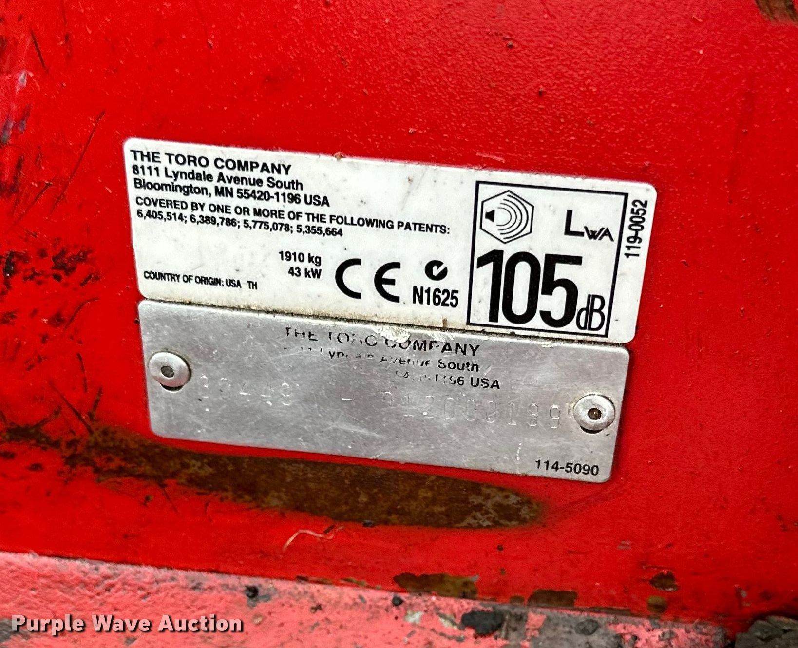 Purple Wave is selling a used Commercial Turf Mower in Minnesota. This item is a Toro 4100D lawn mower with the following: Hours: 1,002 on meter, Cutting width: 120"