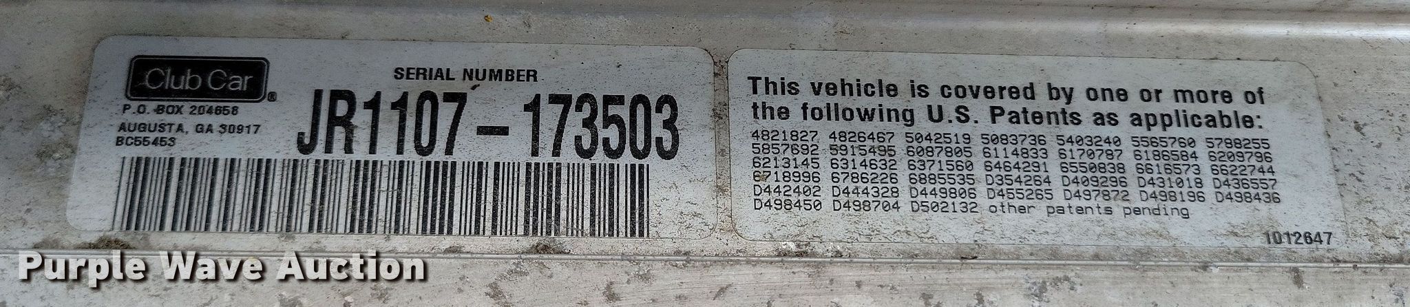 Purple Wave is selling a used Golf Cart in Missouri. This item is a 2011 Club Car Carryall 6 golf cart with the following: Serial: JR1107-173503
