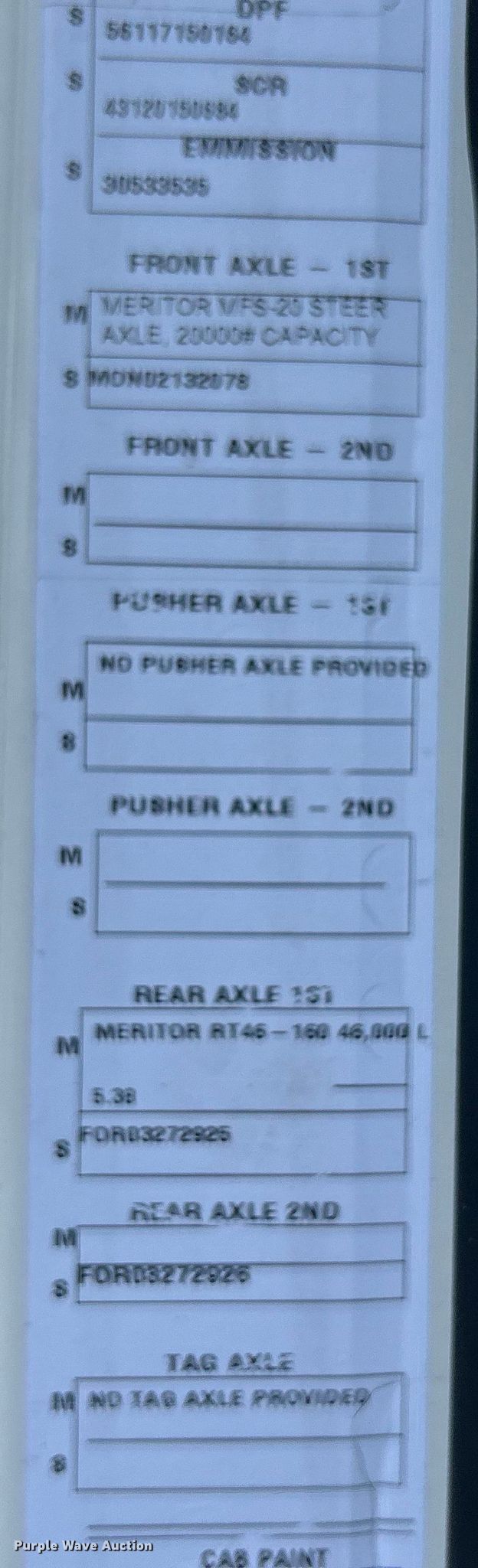 - Front: 315/80R22.5