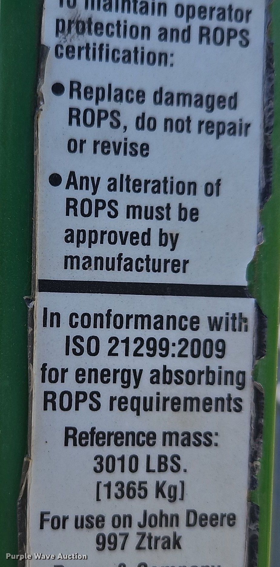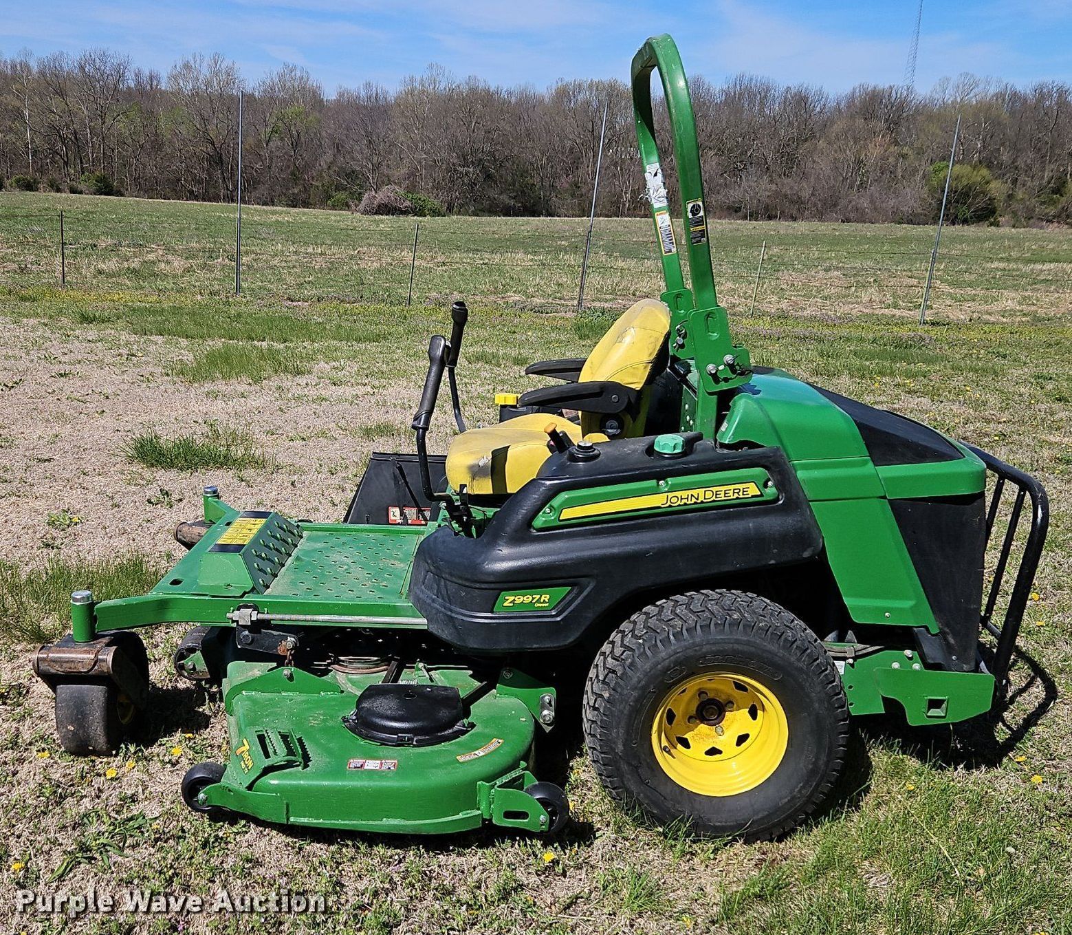 Purple Wave is selling a used Commercial Turf Mower in Missouri. This item is a John Deere Z997R ZTR lawn mower with the following: Hours: 2,349 on meter, Cutting width: 72", Serial: 1TCZ997RCGD031262